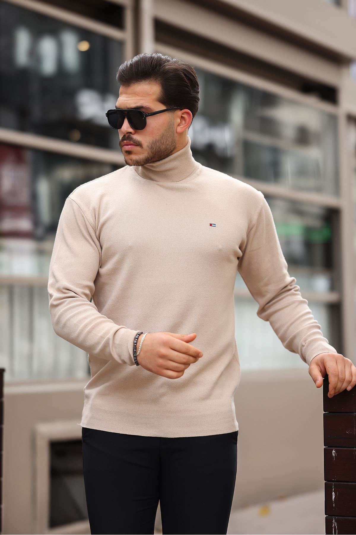 Erkek Tam Balıkçı Yaka Pamuklu Triko Kazak