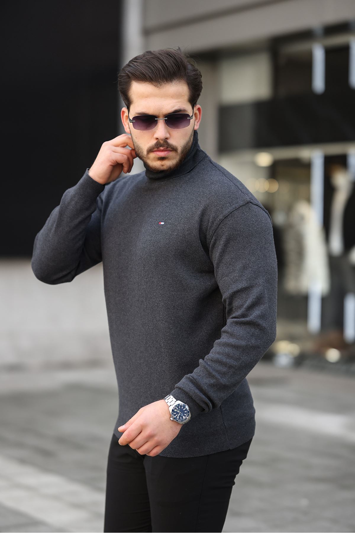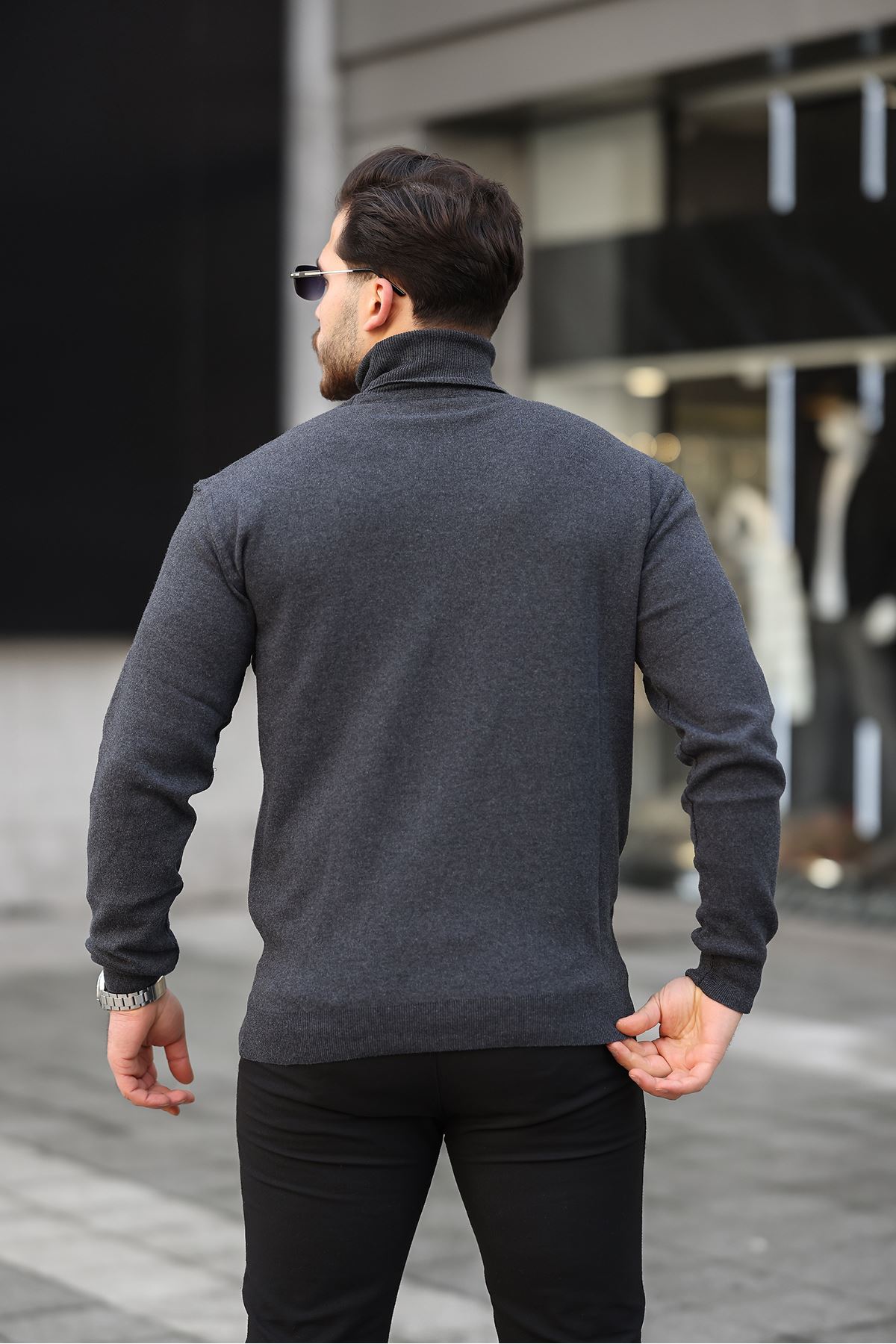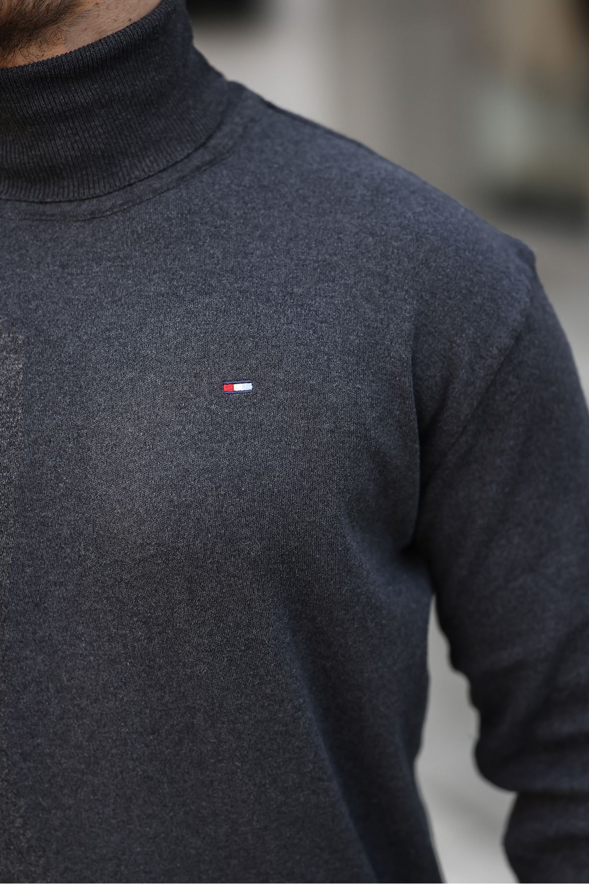 Erkek Tam Balıkçı Yaka Triko Kazak FÜME
