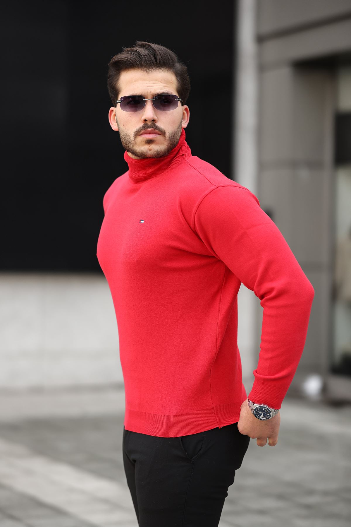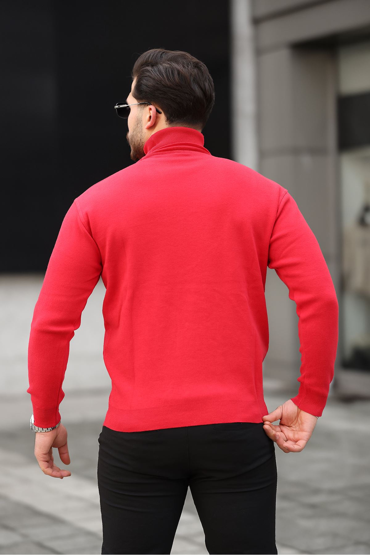Erkek Tam Balıkçı Yaka Triko Kazak KIRMIZI
