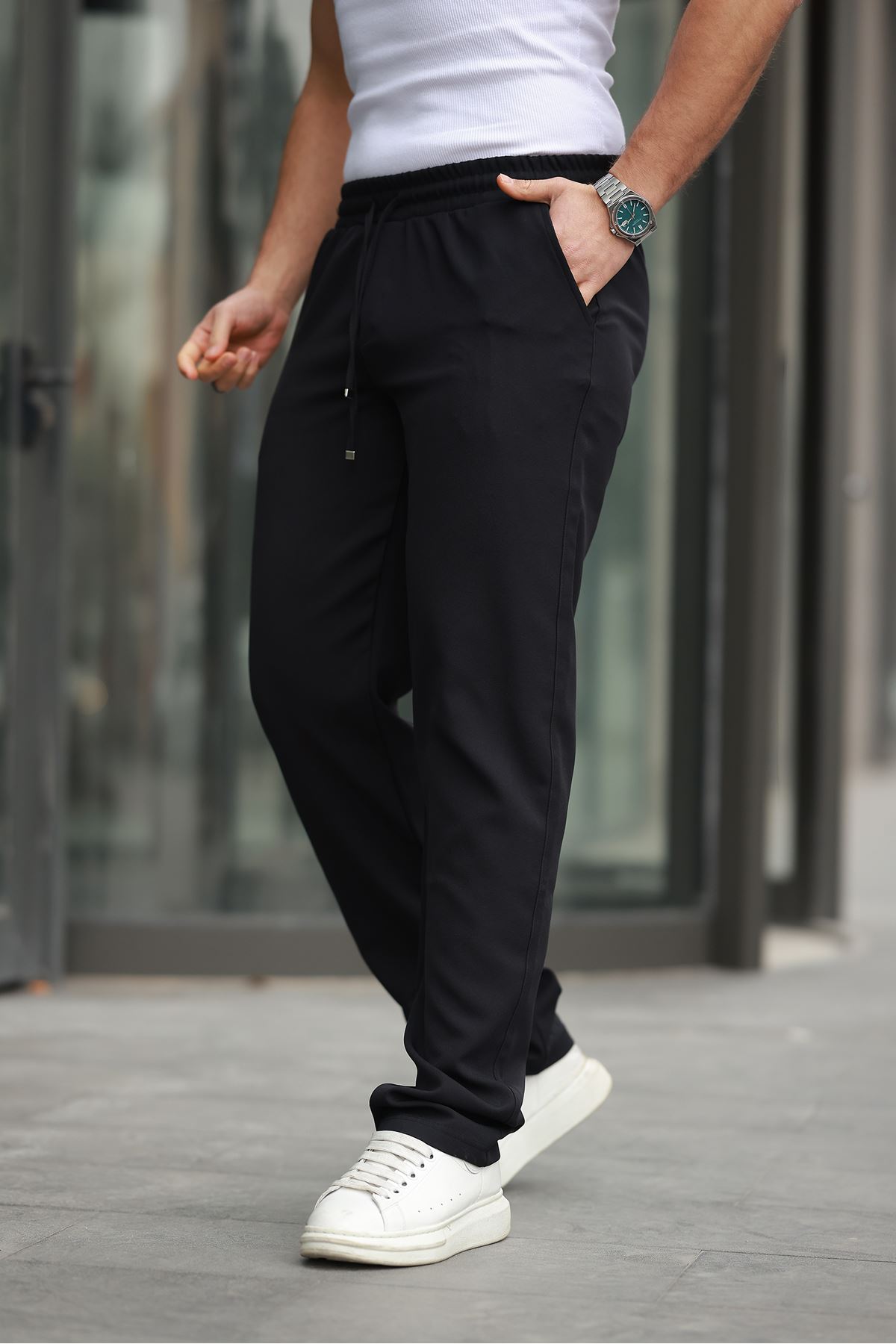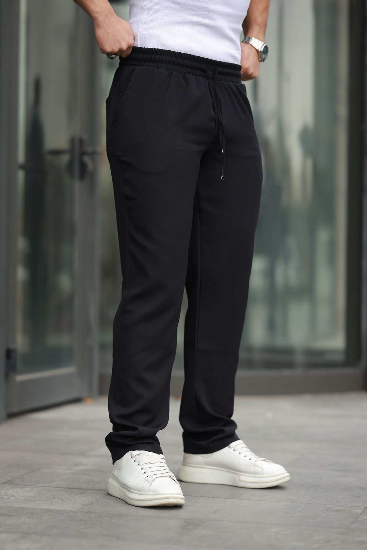 Erkek Trend Beli Lastikli Bol Paça Baggy Pantolon SİYAH