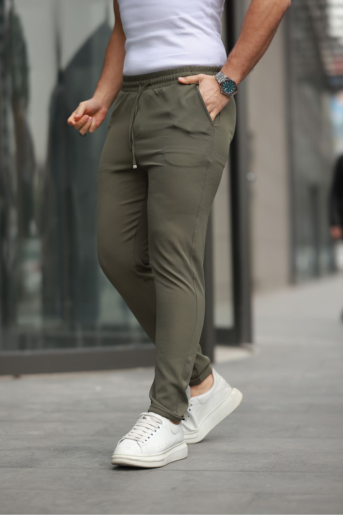 Erkek Trend Beli Lastikli Duble Paça Pantolon HAKİ