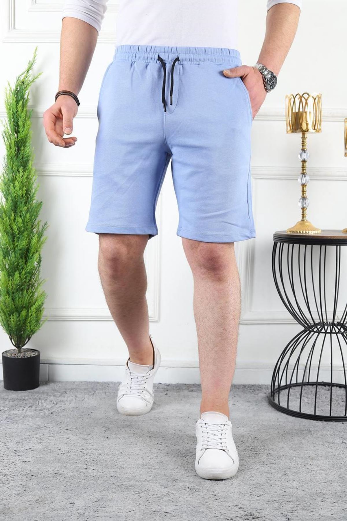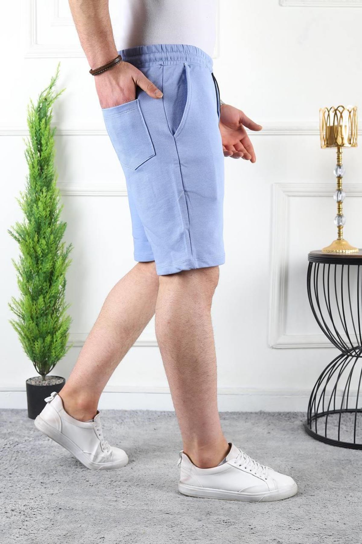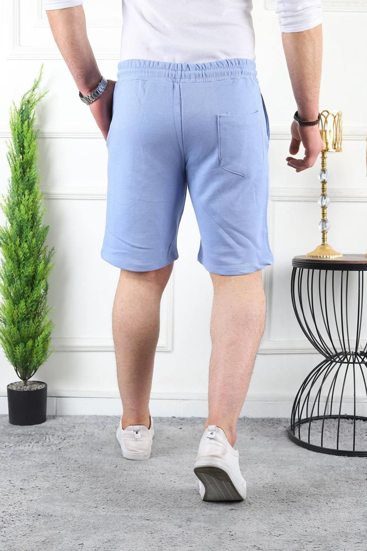Erkek Üç İplik Compack Penye Bel Lastikli Slim Fit Kapri BEBE MAVİ