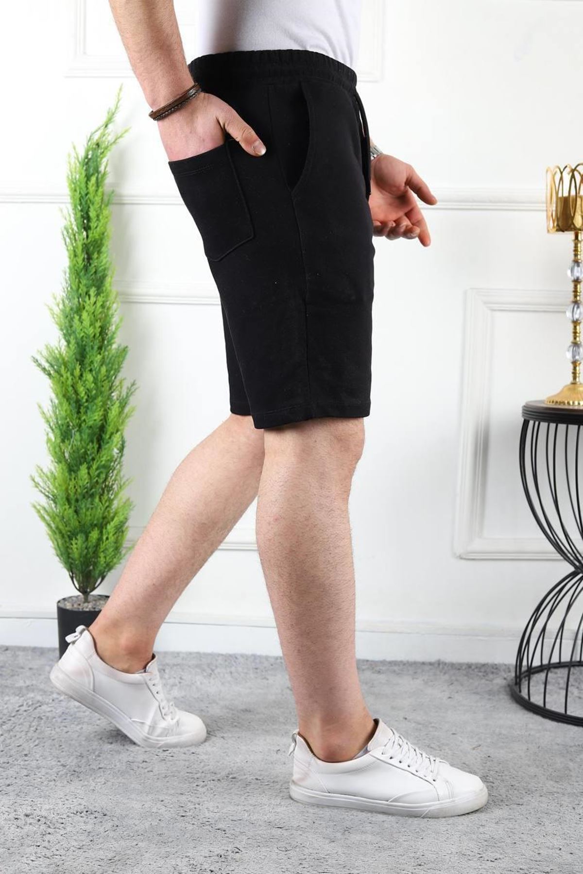 Erkek Üç İplik Compack Penye Bel Lastikli Slim Fit Kapri SİYAH