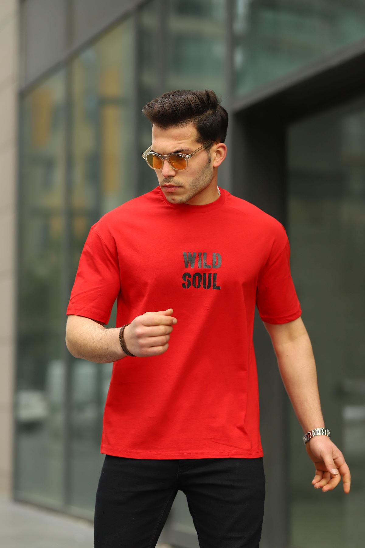 Erkek Wild Soul Baskılı Oversize Tshirt KIRMIZI