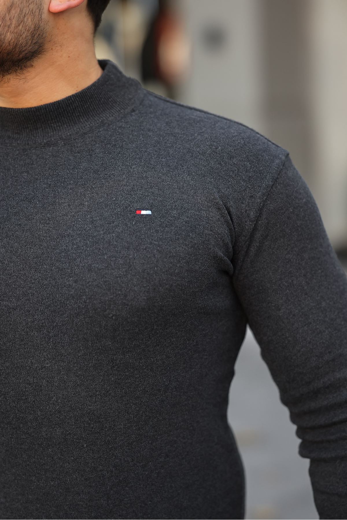 Erkek Yarım Balıkçı Yaka Triko Kazak FÜME