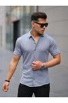 Erkek Kısa Kollu Slim Fit Yazlık Basic Şık Gömlek K.GRİ
