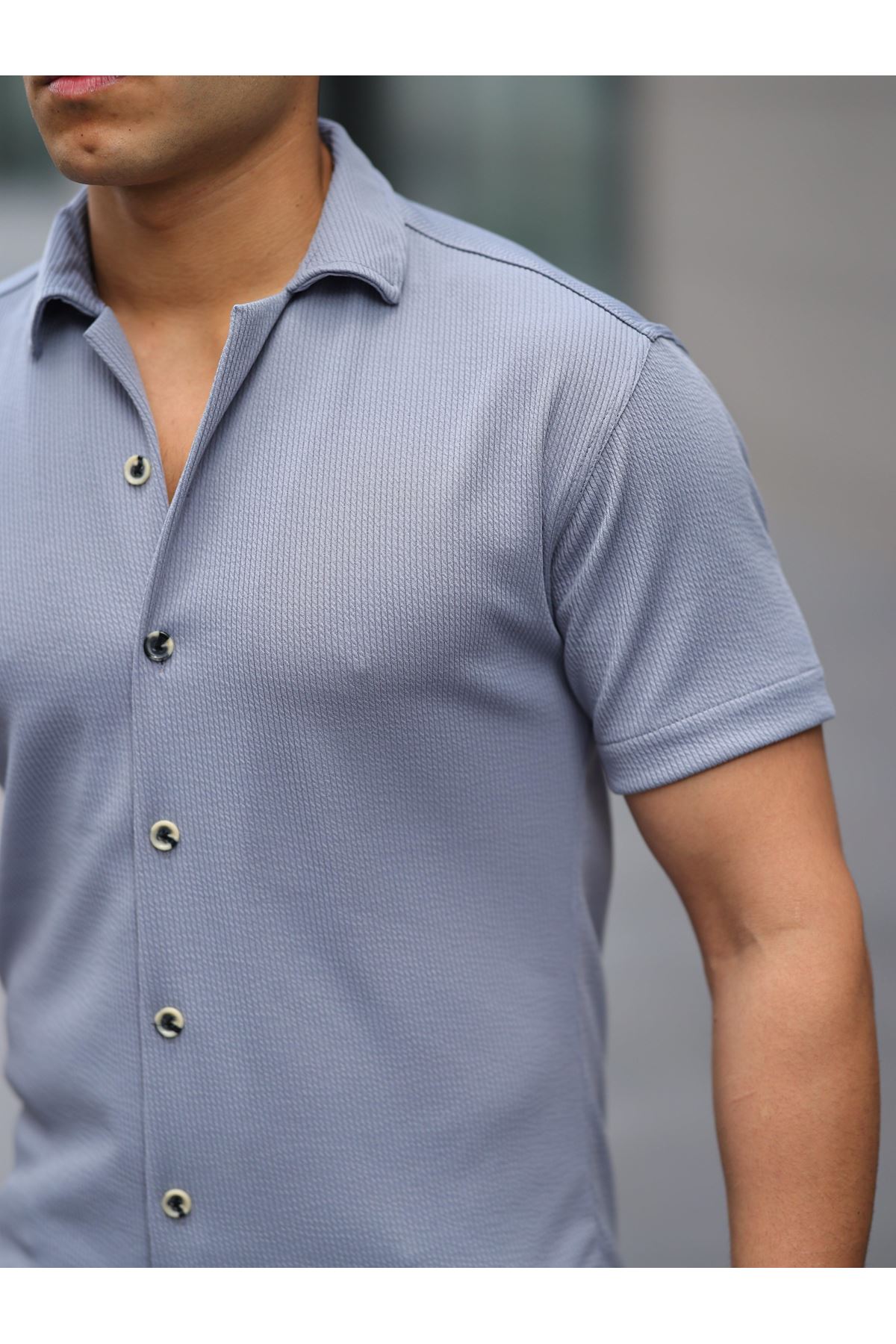 Erkek Yazlık Likralı Slim Fit Gömlek Yaka Kısa Kollu Gömlek İNDİGO