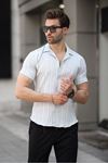 Erkek Kısa Kollu Slim Fit Yazlık Çizgili Gömlek K.GRİ