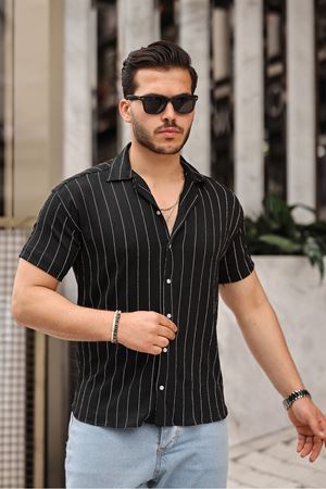 Erkek Kısa Kollu Slim Fit Yazlık Çift Çizgili Gömlek HAKİ