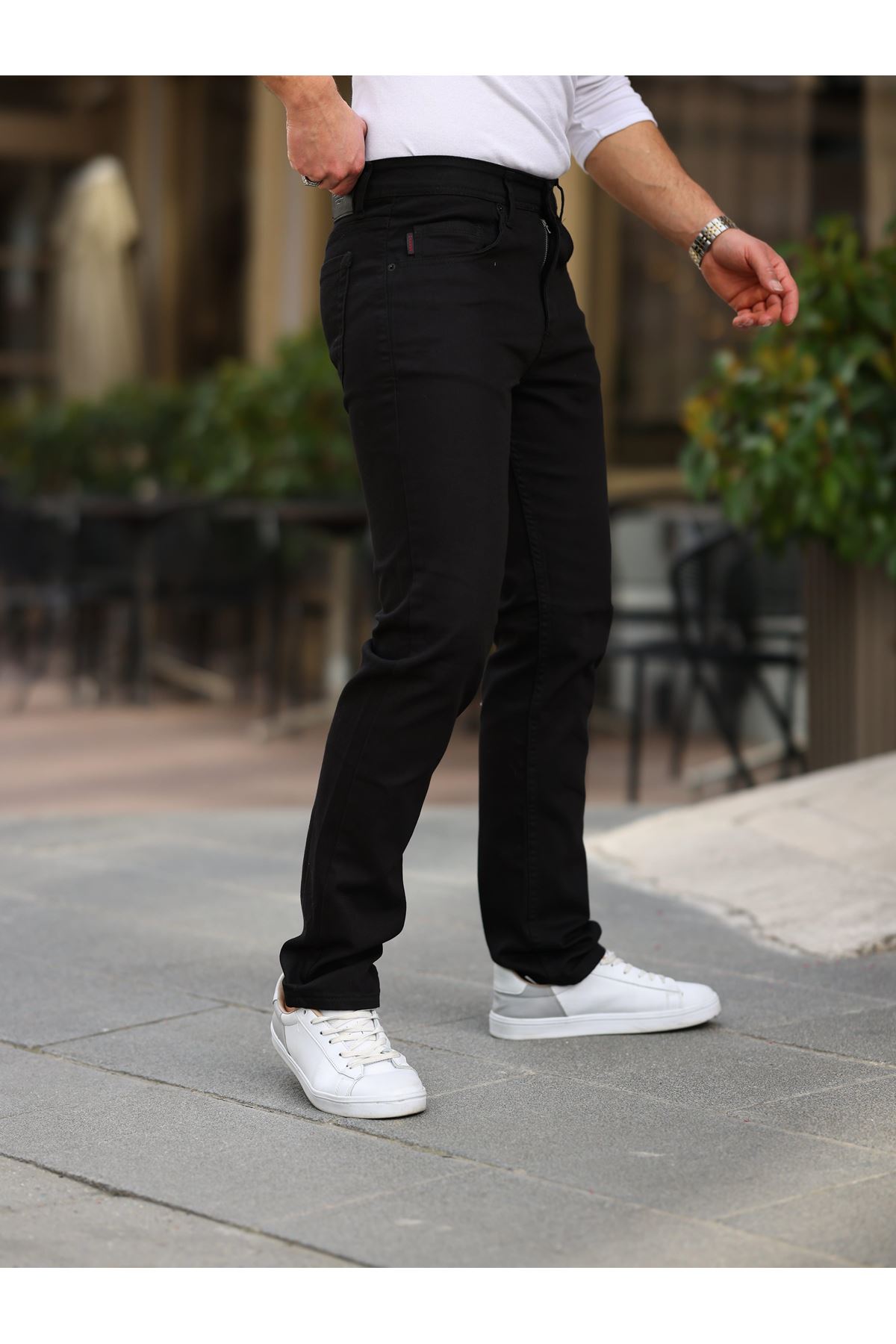 Erkek Yüksel Bel Bol Kesim Boru Paça Kot Pantolon Regular Fit Jean SİYAH