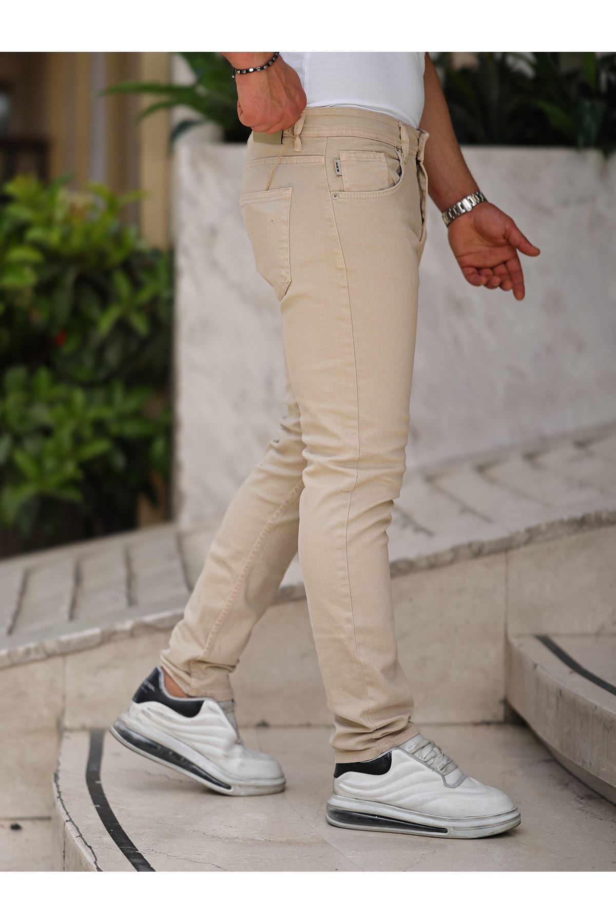 Erkek Slim Fit Likralı Denim Kot Pantolon Jean CAMEL