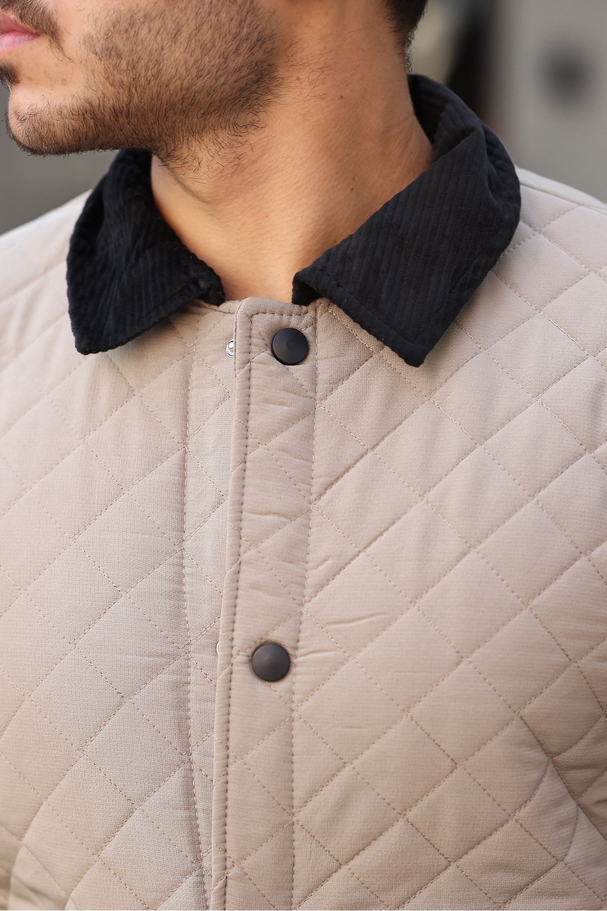 Kadife Yaka Kürklü Kapitone Mont BEJ