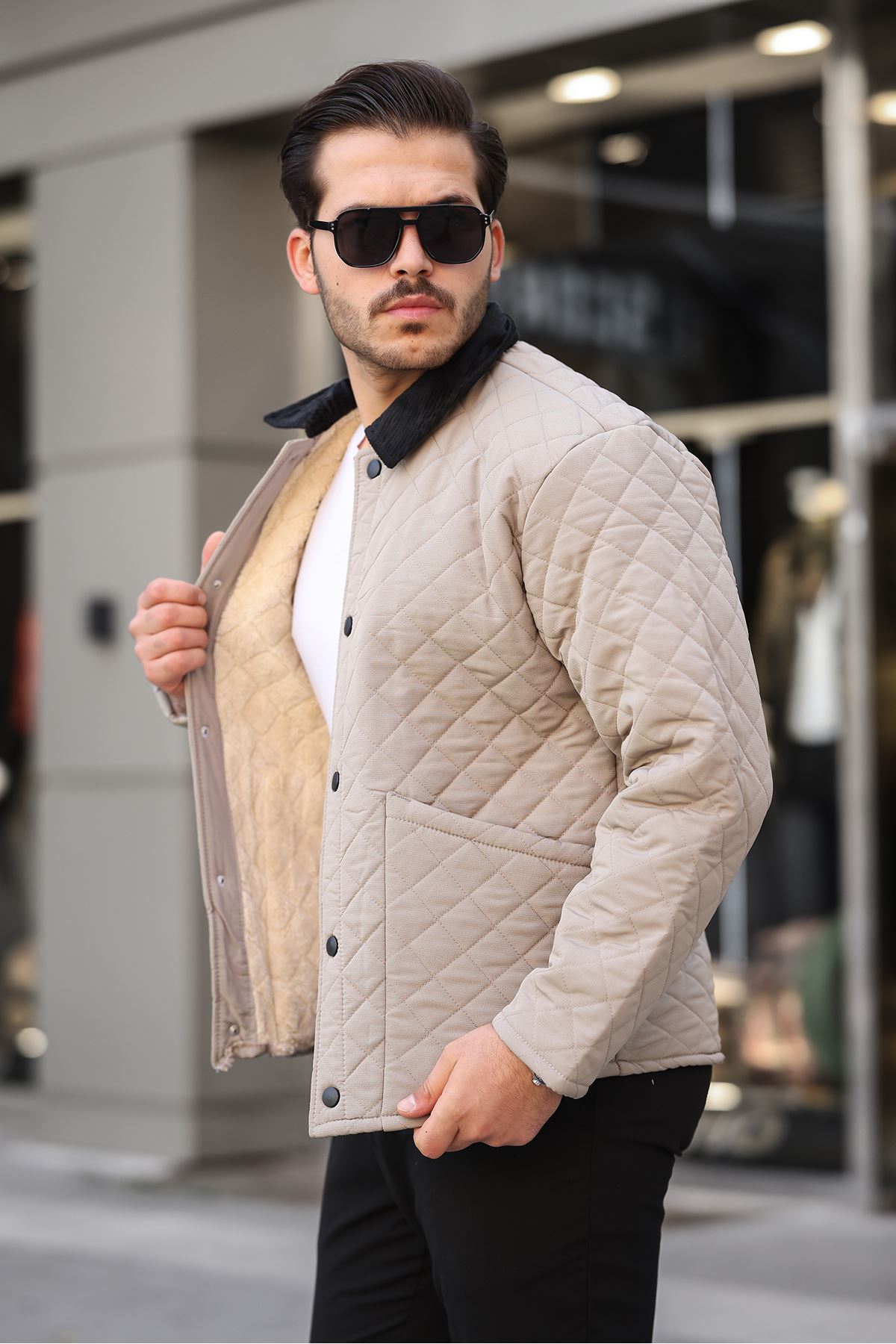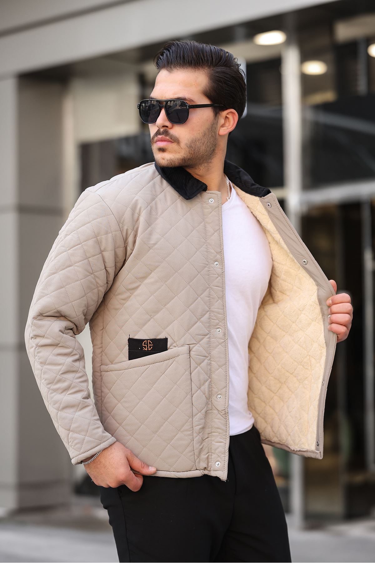 ERKEK İÇİ KÜRKLÜ KOT CEKET BEJ