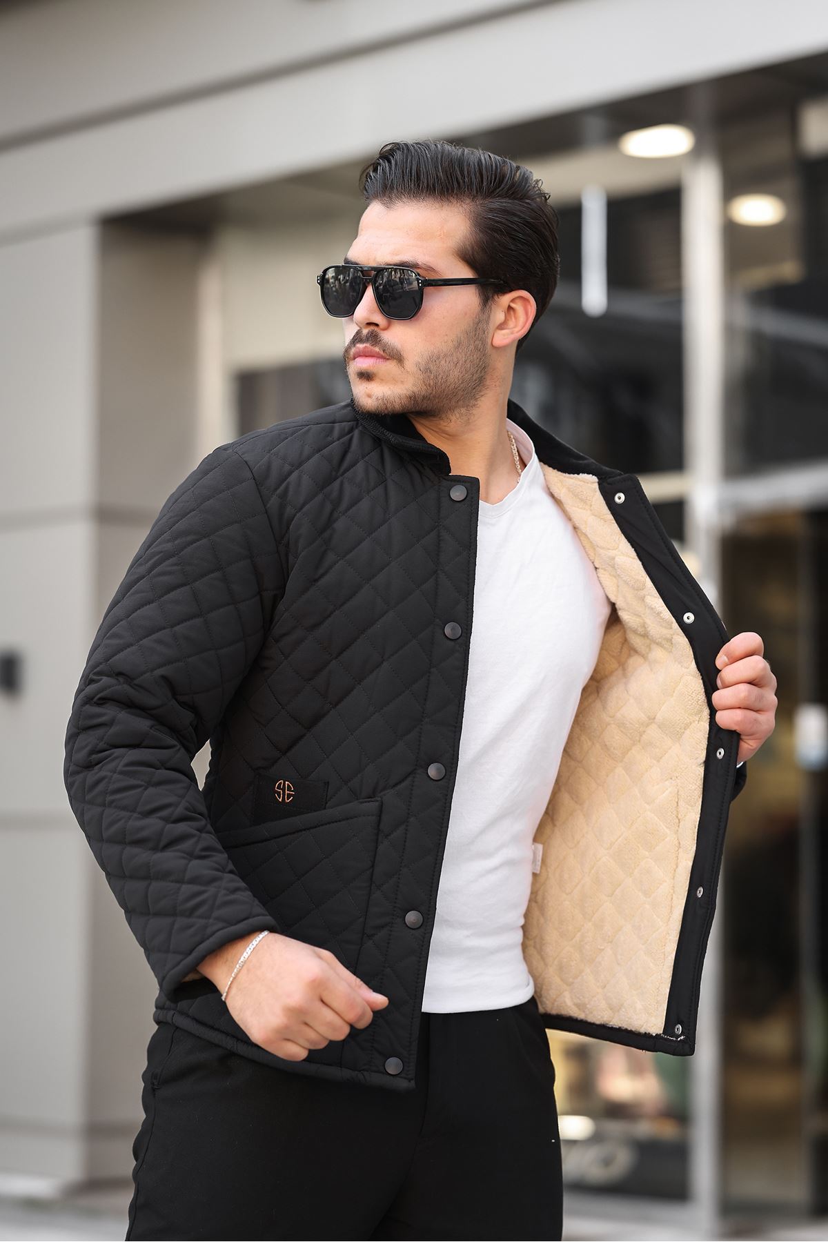 Erkek Kışlık Trend Günlük S.Siyah İçi Kürklü Peluş Ceket