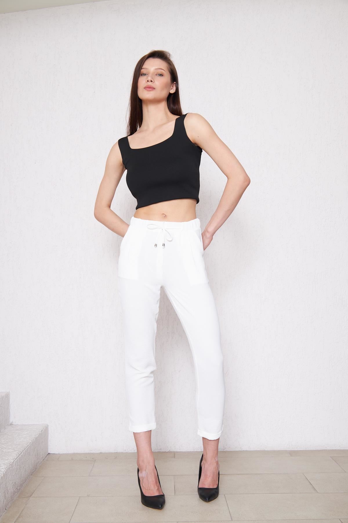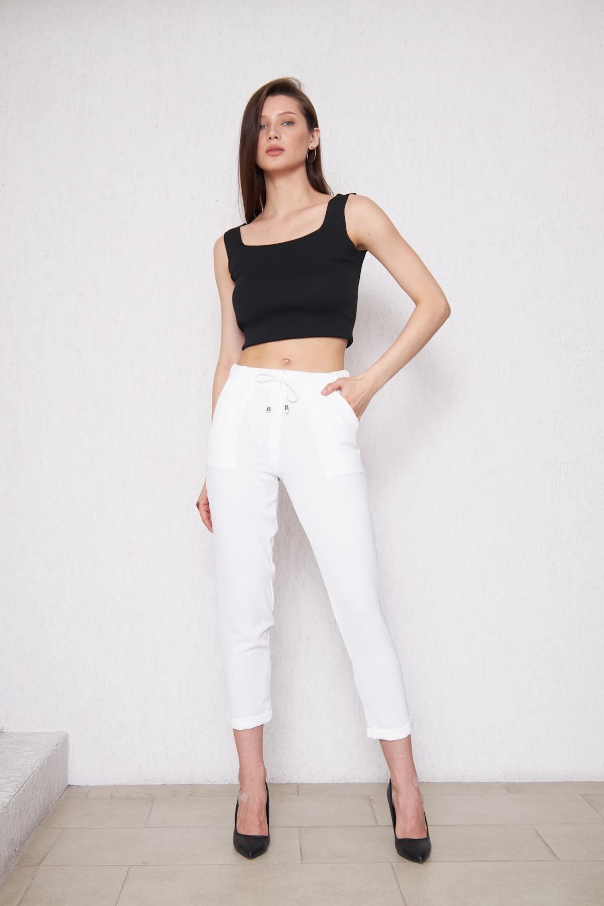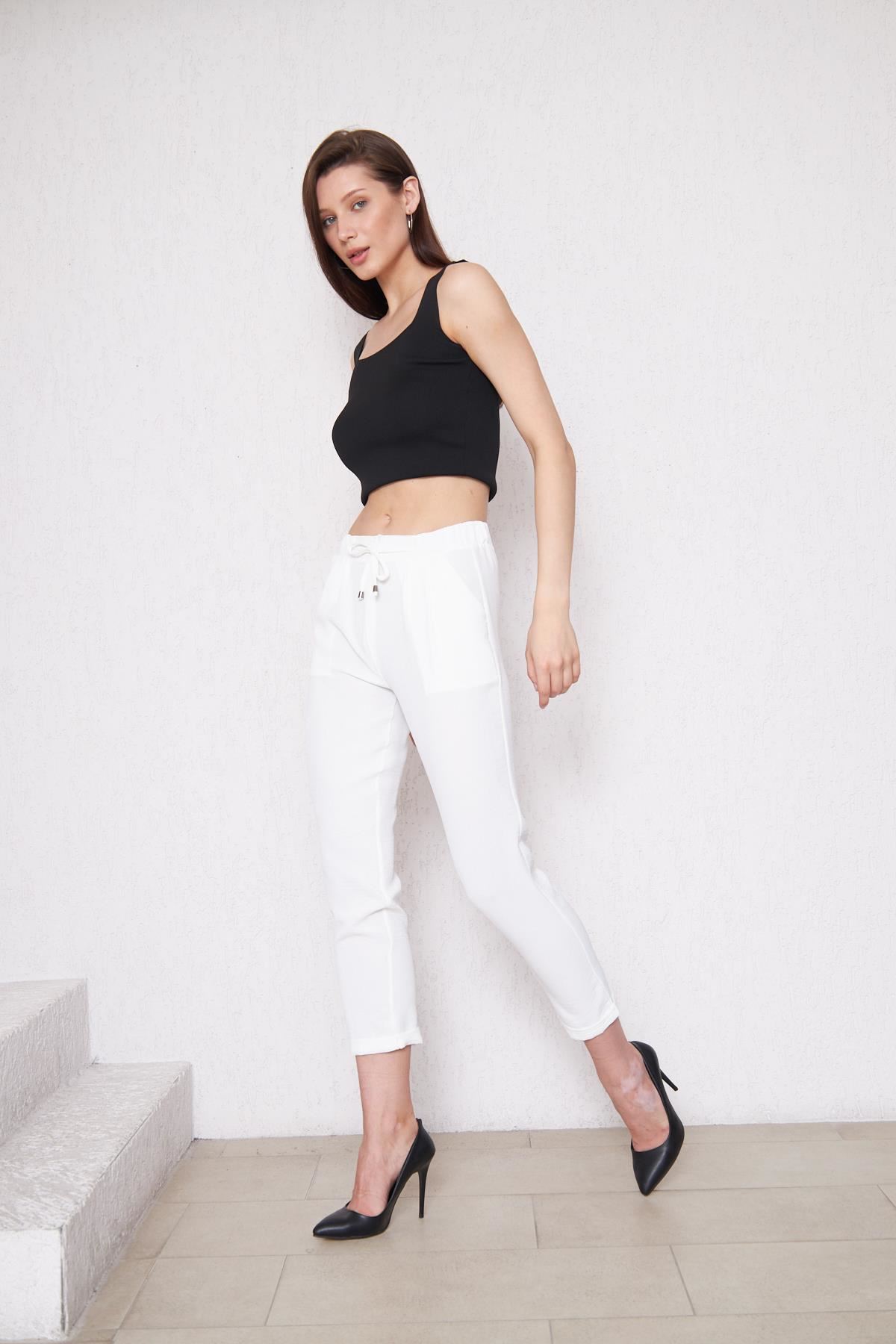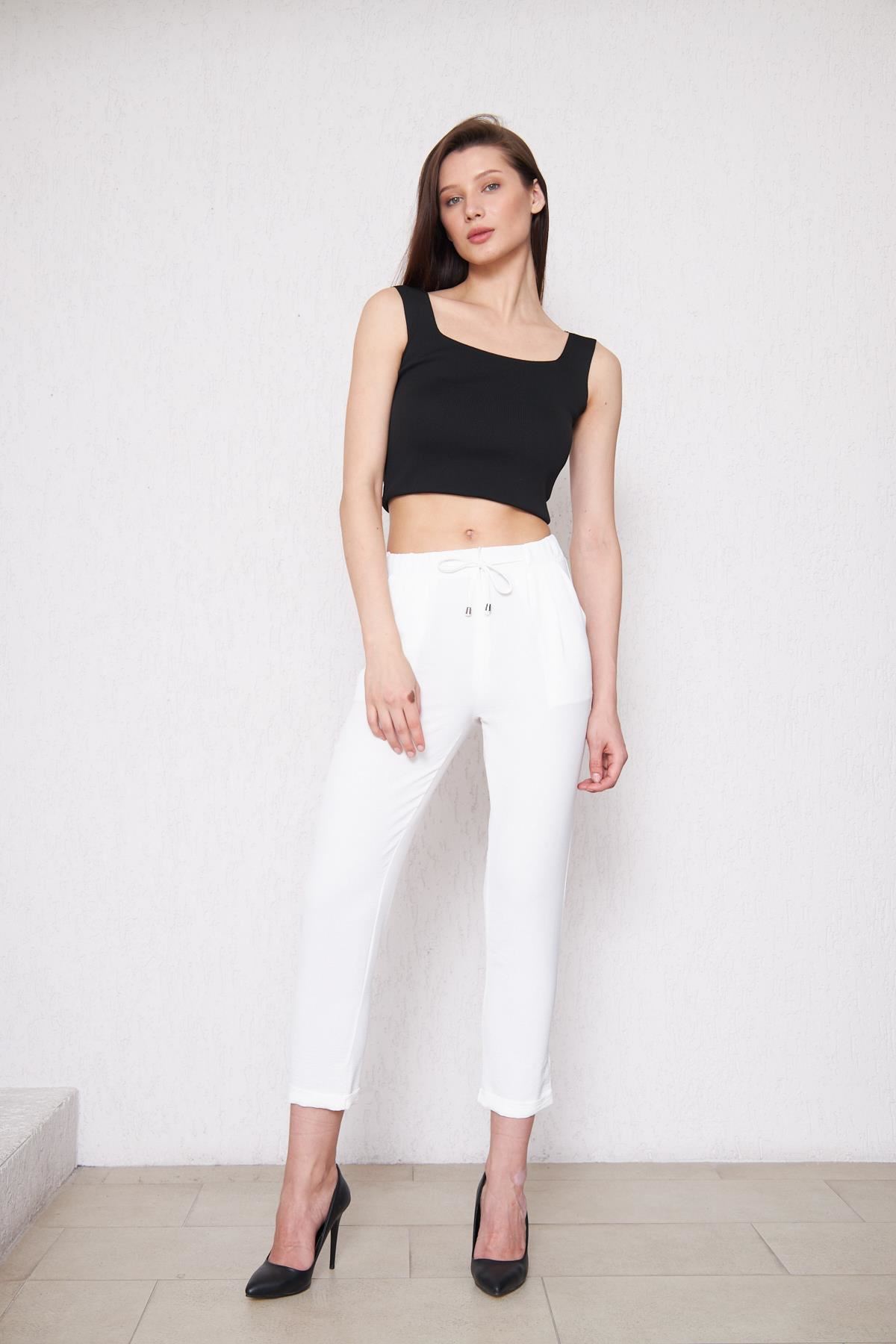 Kadın Aerobin Duble Paça Bel Lastikli Pantolon BEYAZ