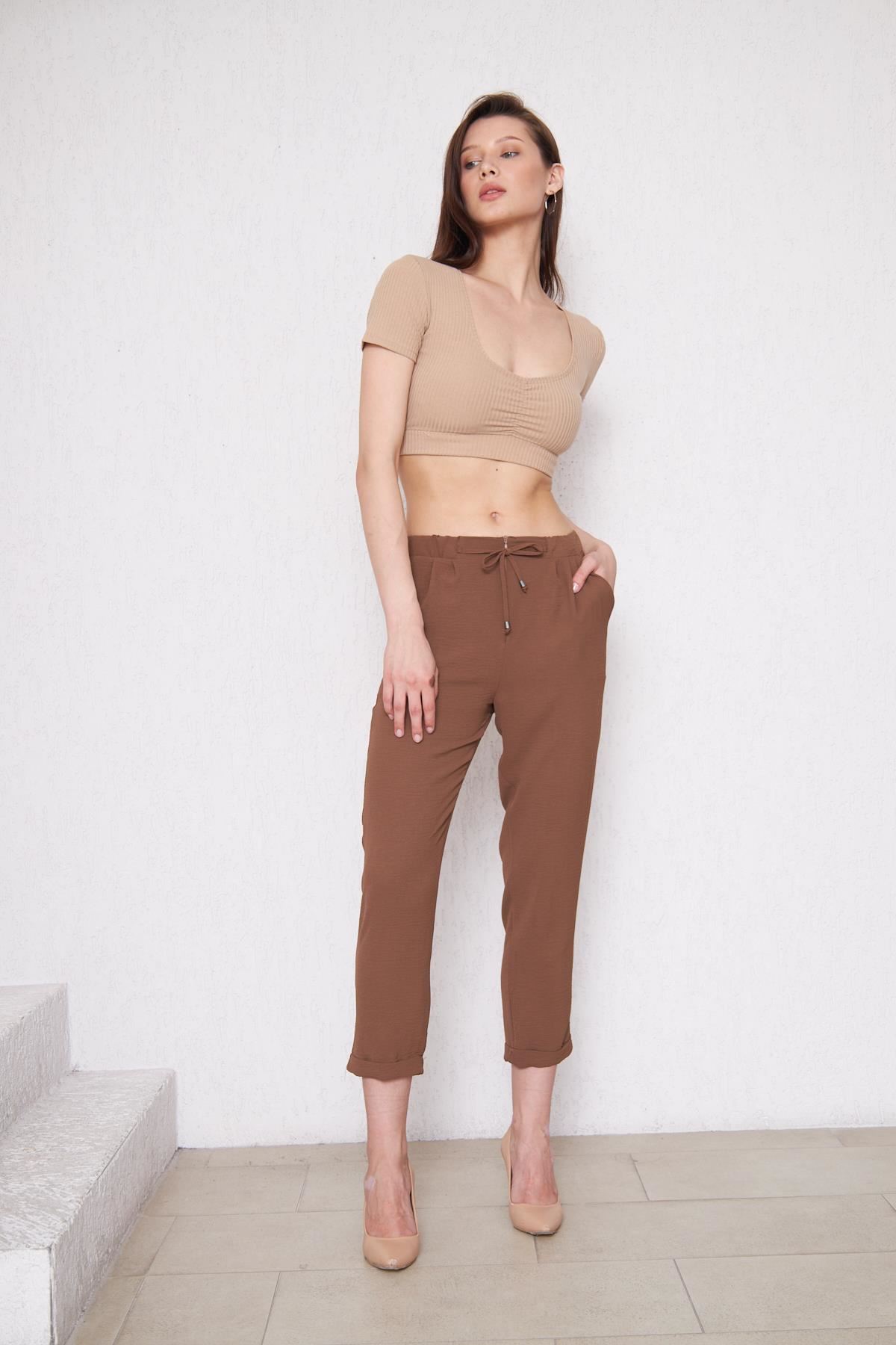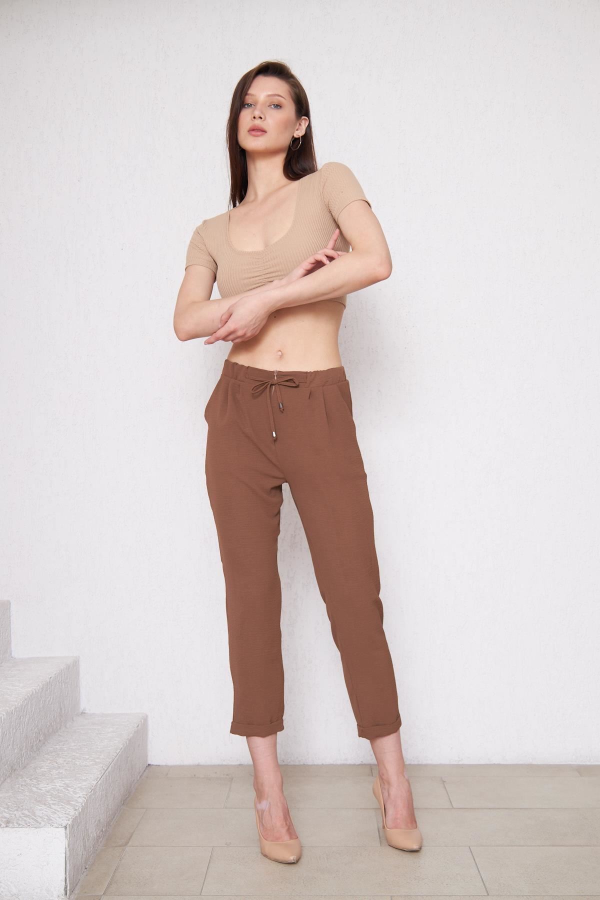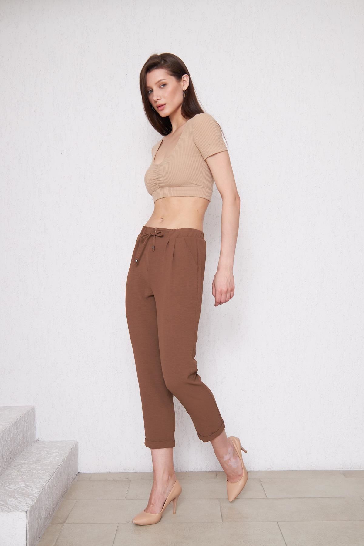 Kadın Aerobin Duble Paça Bel Lastikli Pantolon KAHVE