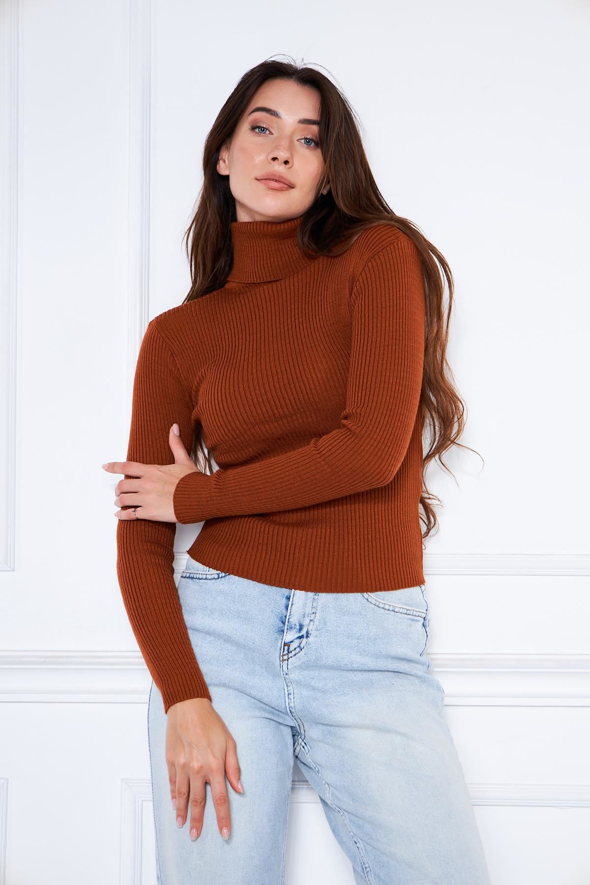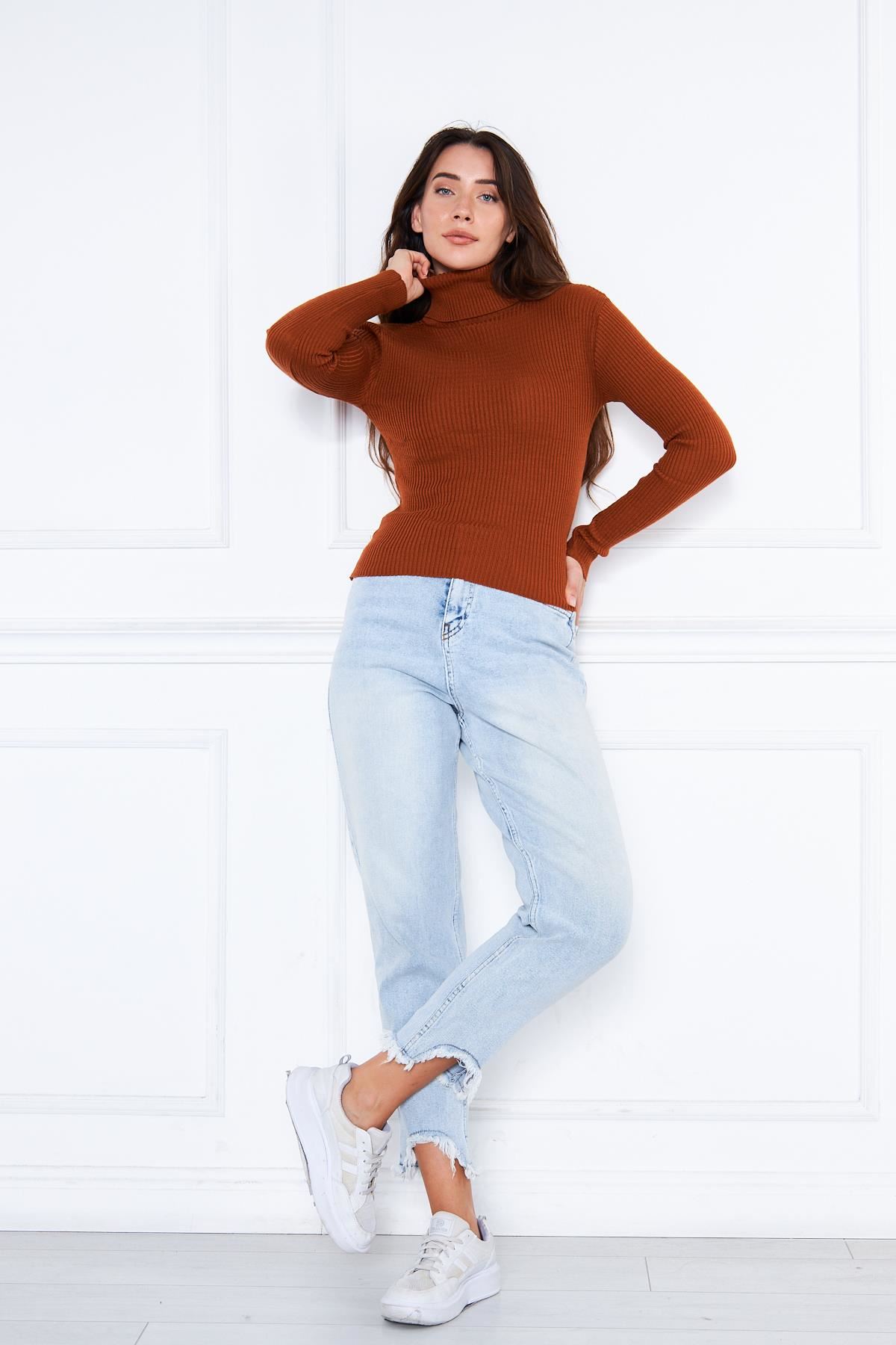 Kadın Balıkçı Yaka Fitilli Kazak KİREMİT