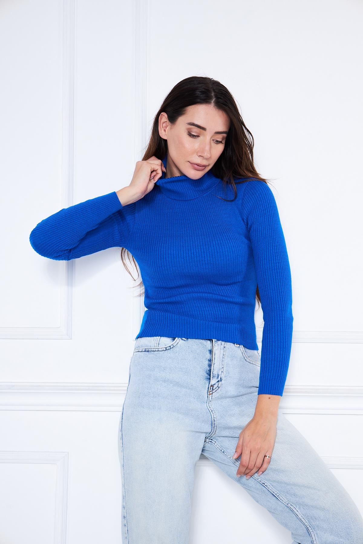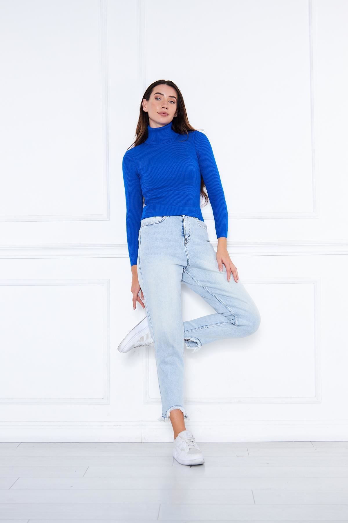 Kadın Balıkçı Yaka Fitilli Kazak SAKS MAVİ