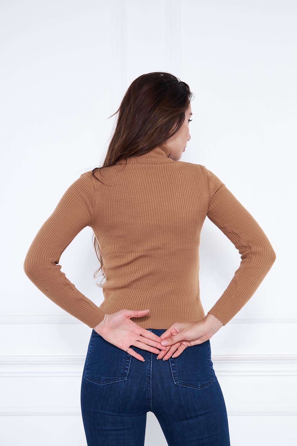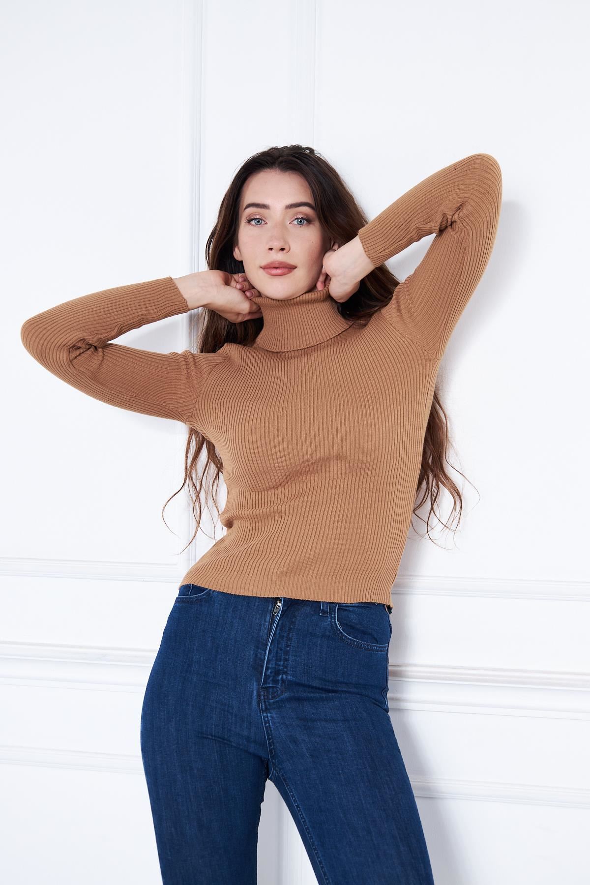 Kadın Balıkçı Yaka Fitilli Kazak SÜTLÜ KAHVE