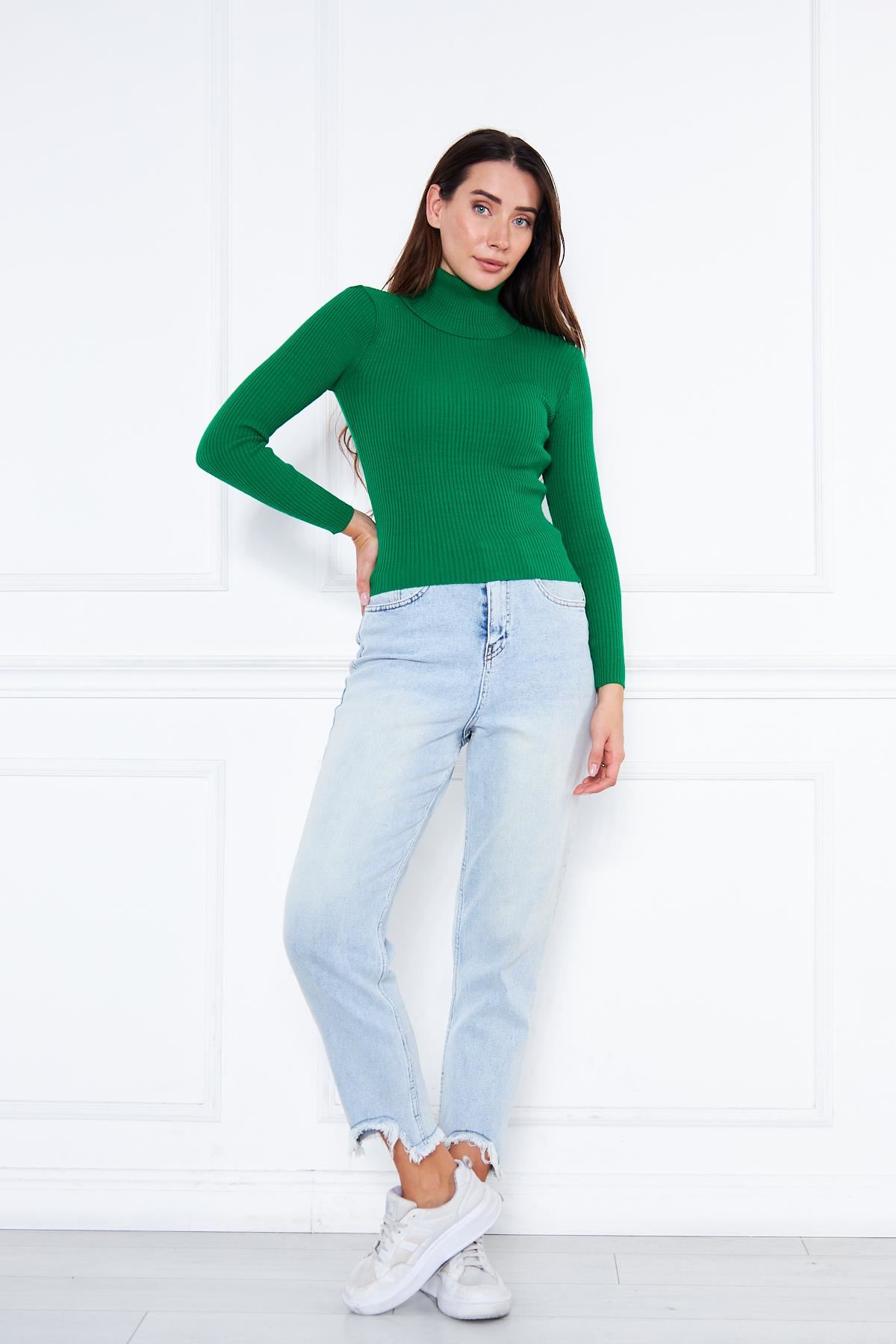 Kadın Balıkçı Yaka Fitilli Kazak YEŞİL