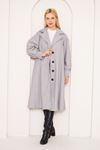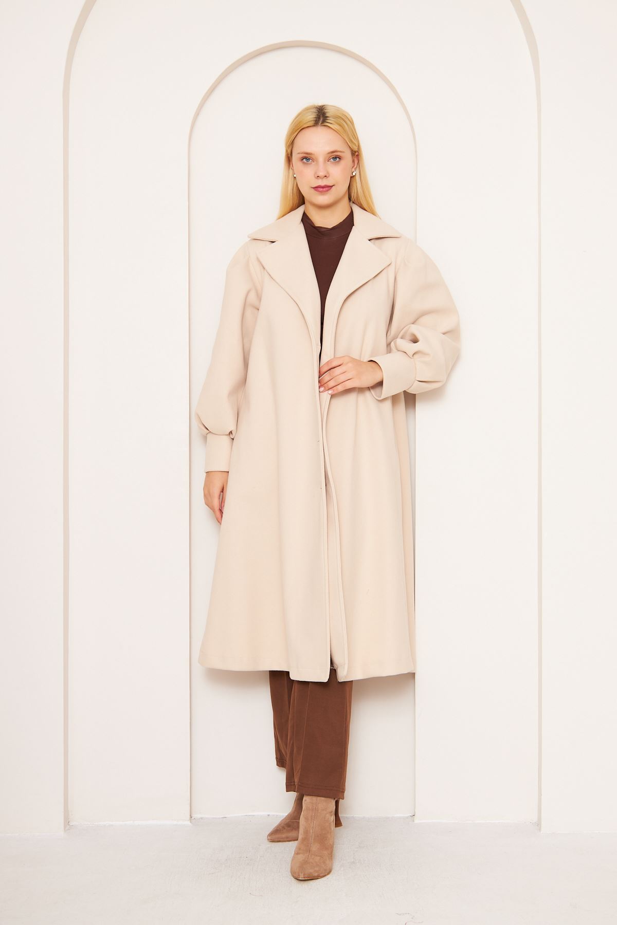 Kadın Balon Kol Oversize Manşetli Kaşe Kaban TAŞ