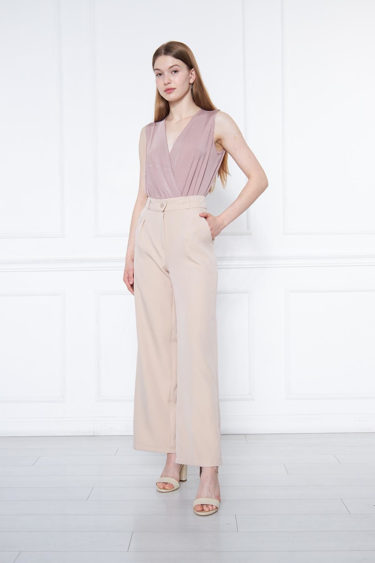 Kadın Bej Yüksek Bel Palazzo Pantolon BEJ