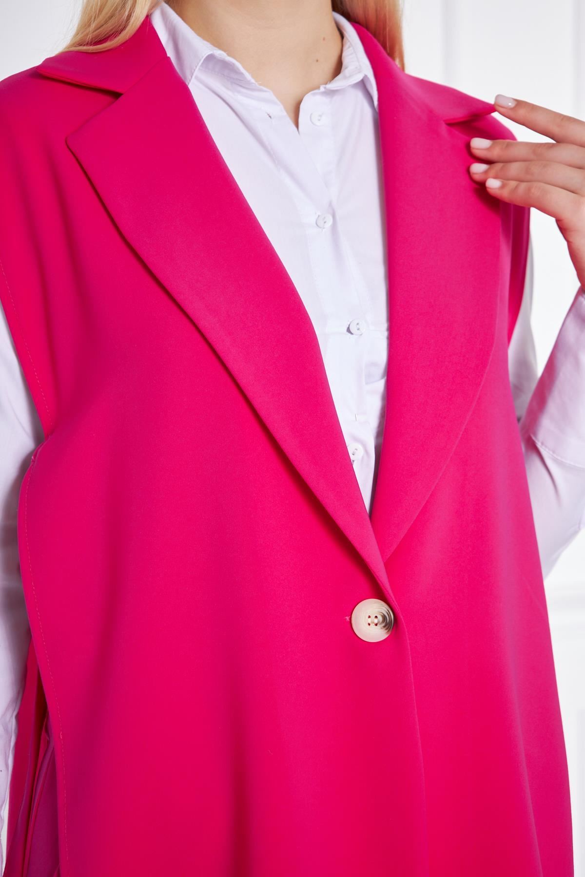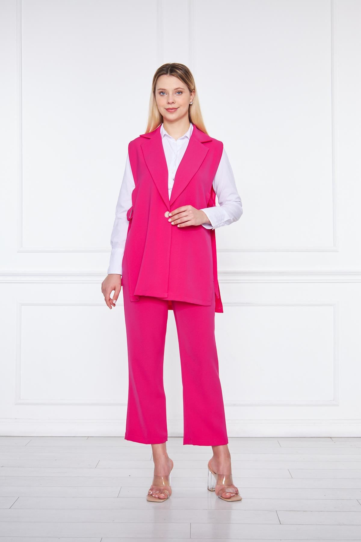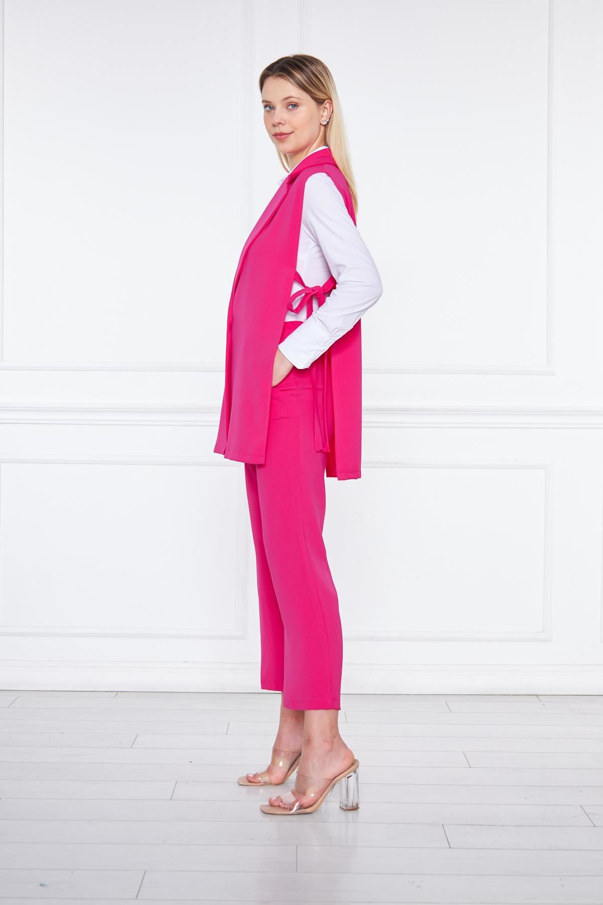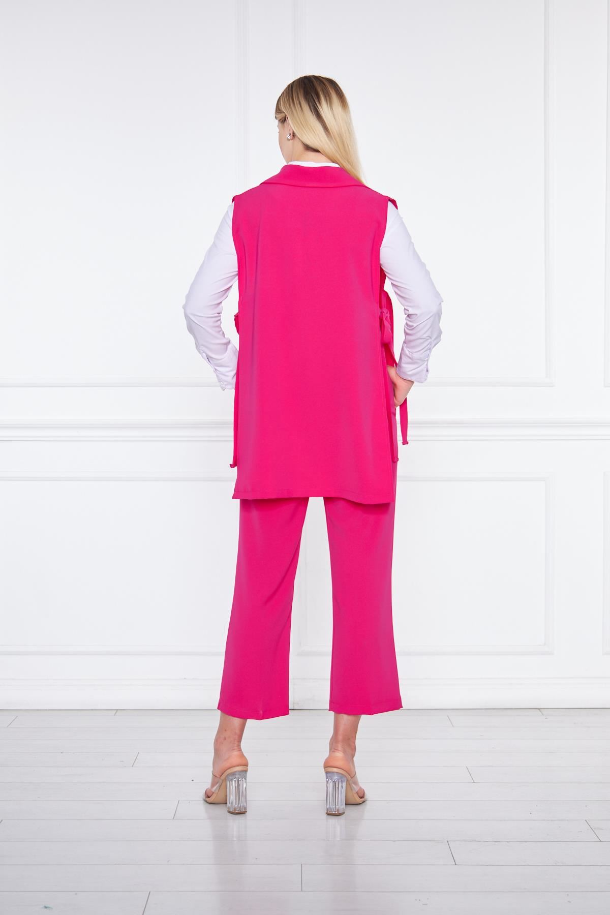 Kadın Bel Bağlama Yelek Takım Fuşya