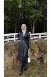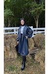 Kadın Premium Fermuarlı Çizgili Siyah Kısa Trençkot