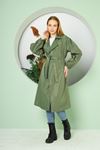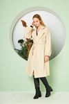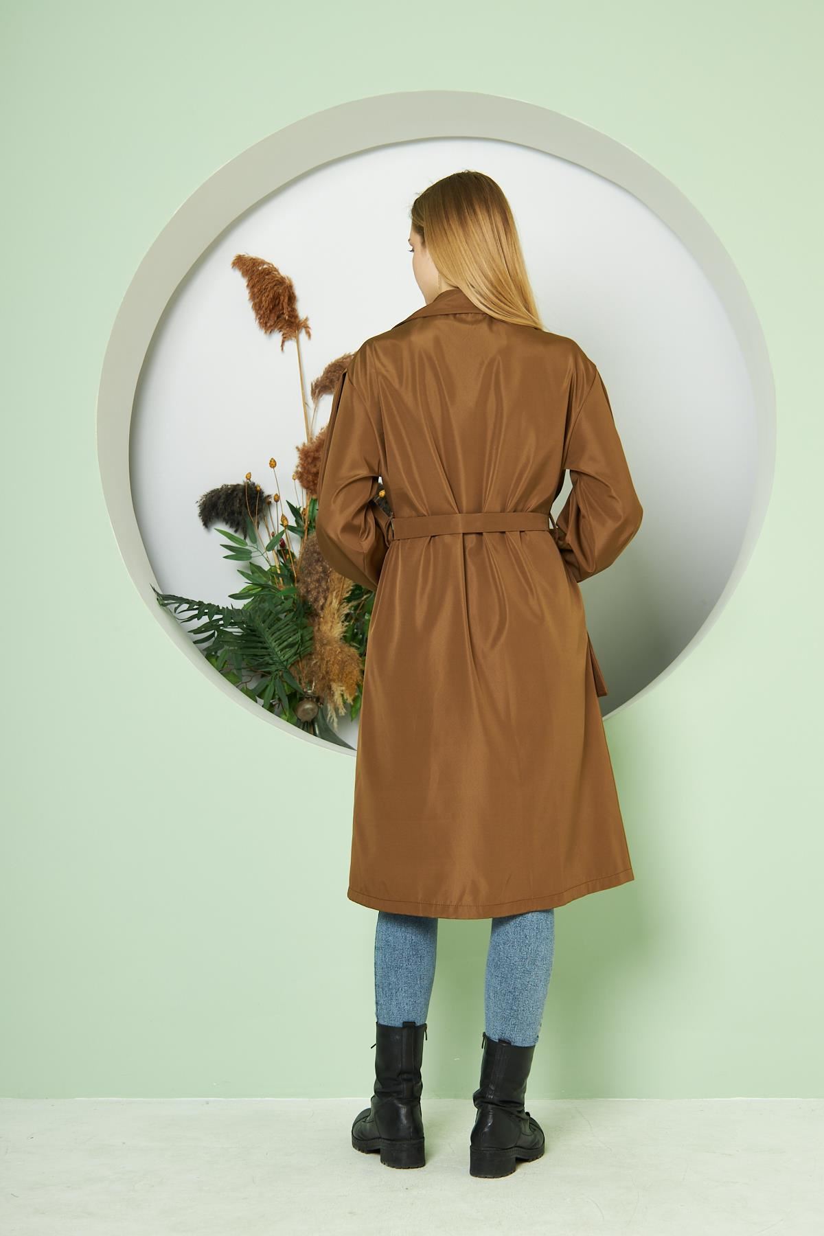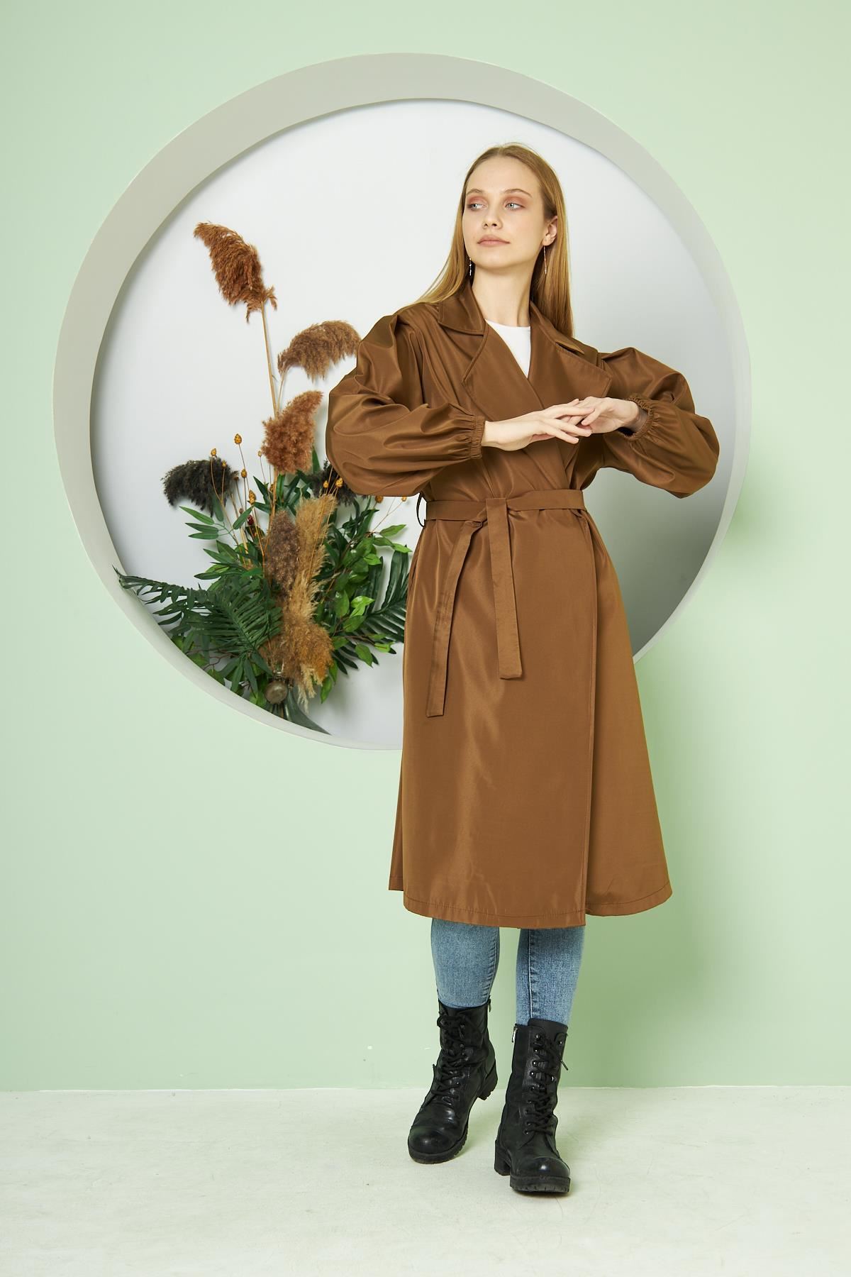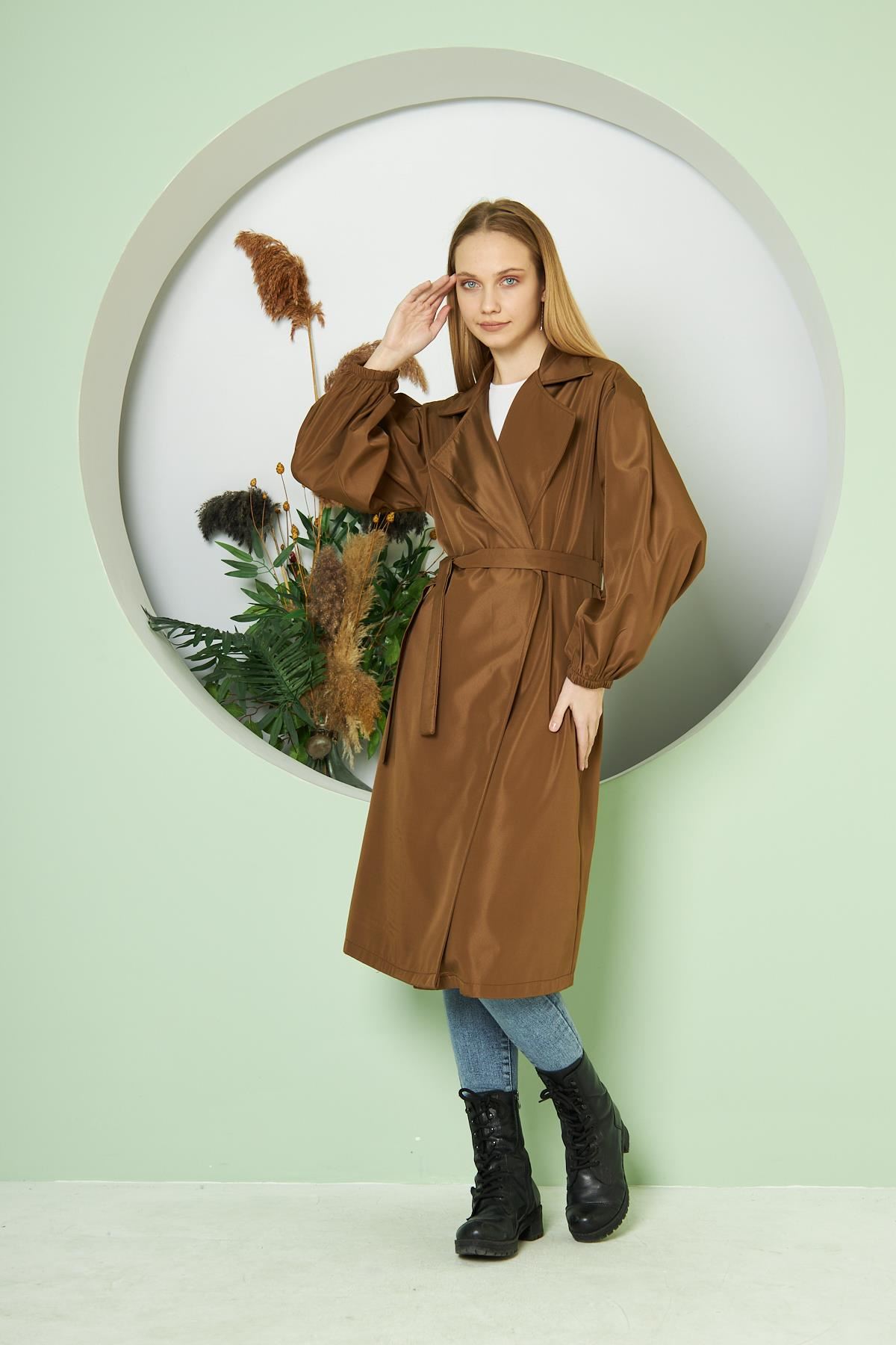 Kadın Belden Bağlamalı Balon Kol Trenç KAHVE