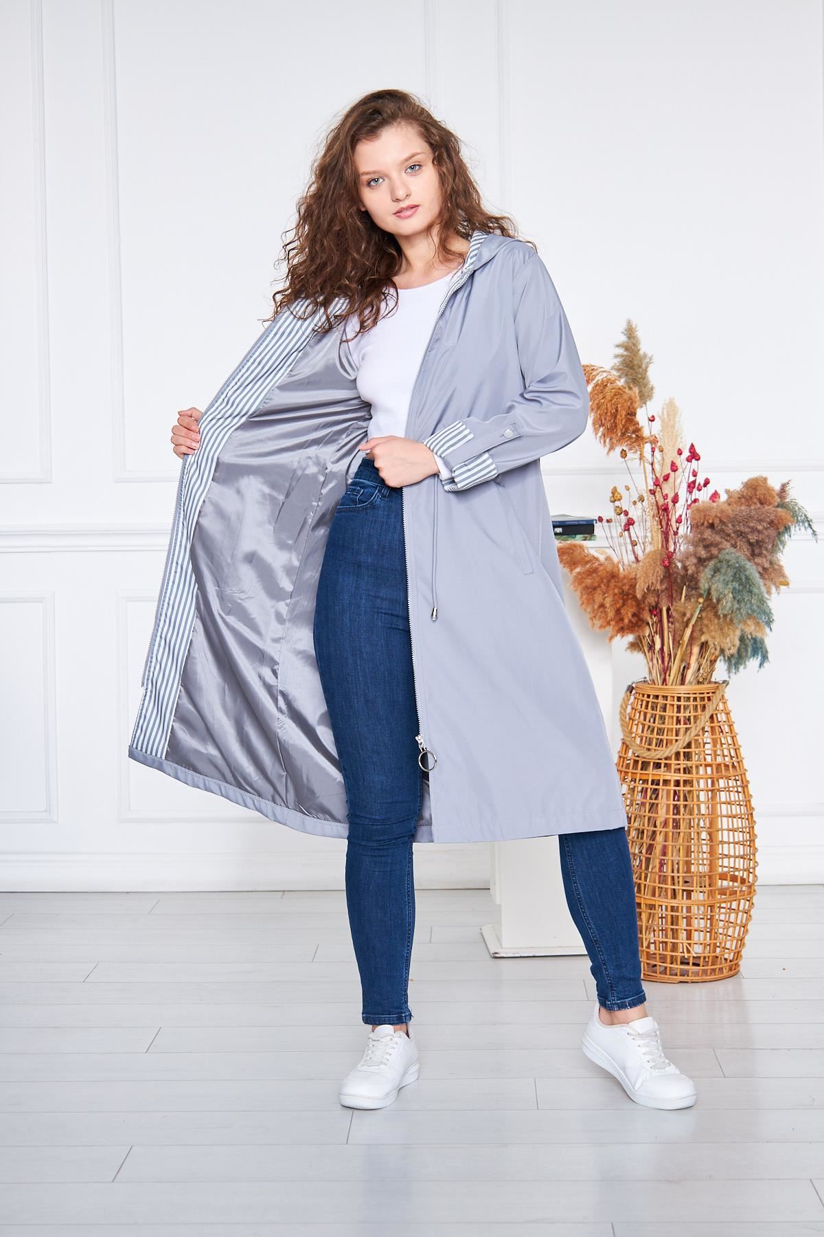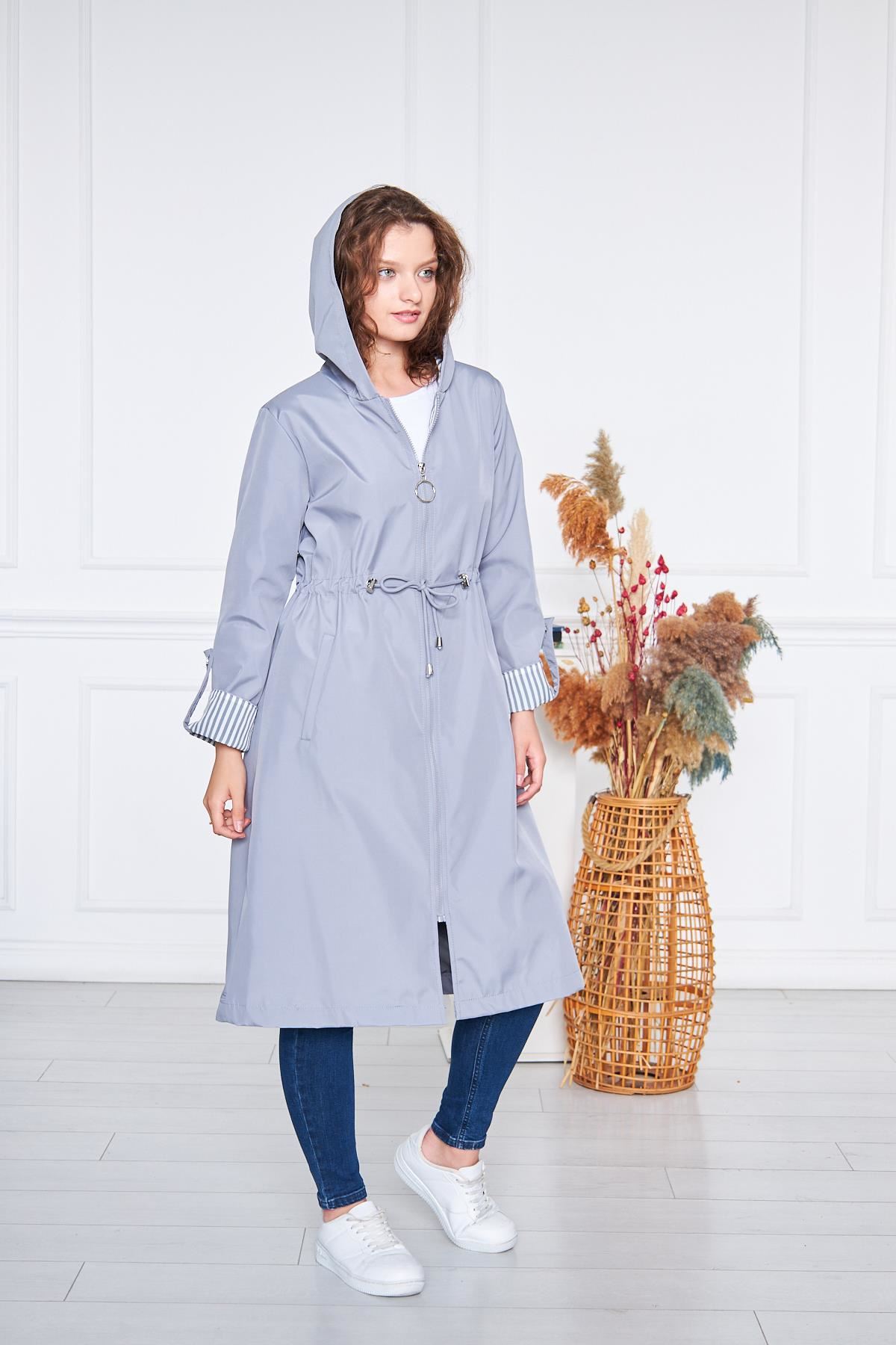 Kadın Beli Büzgülü Su İtici Kapüşonlu Trençkot GRİ