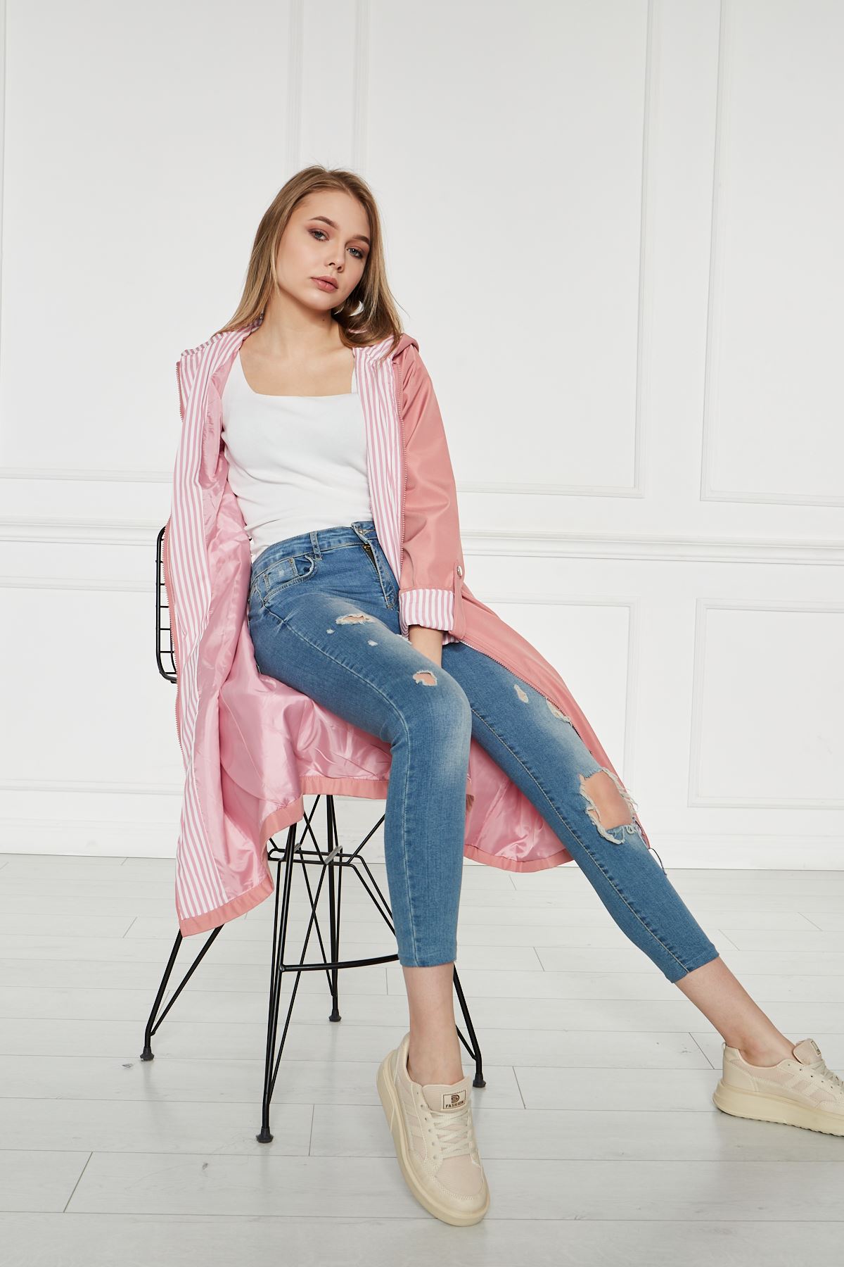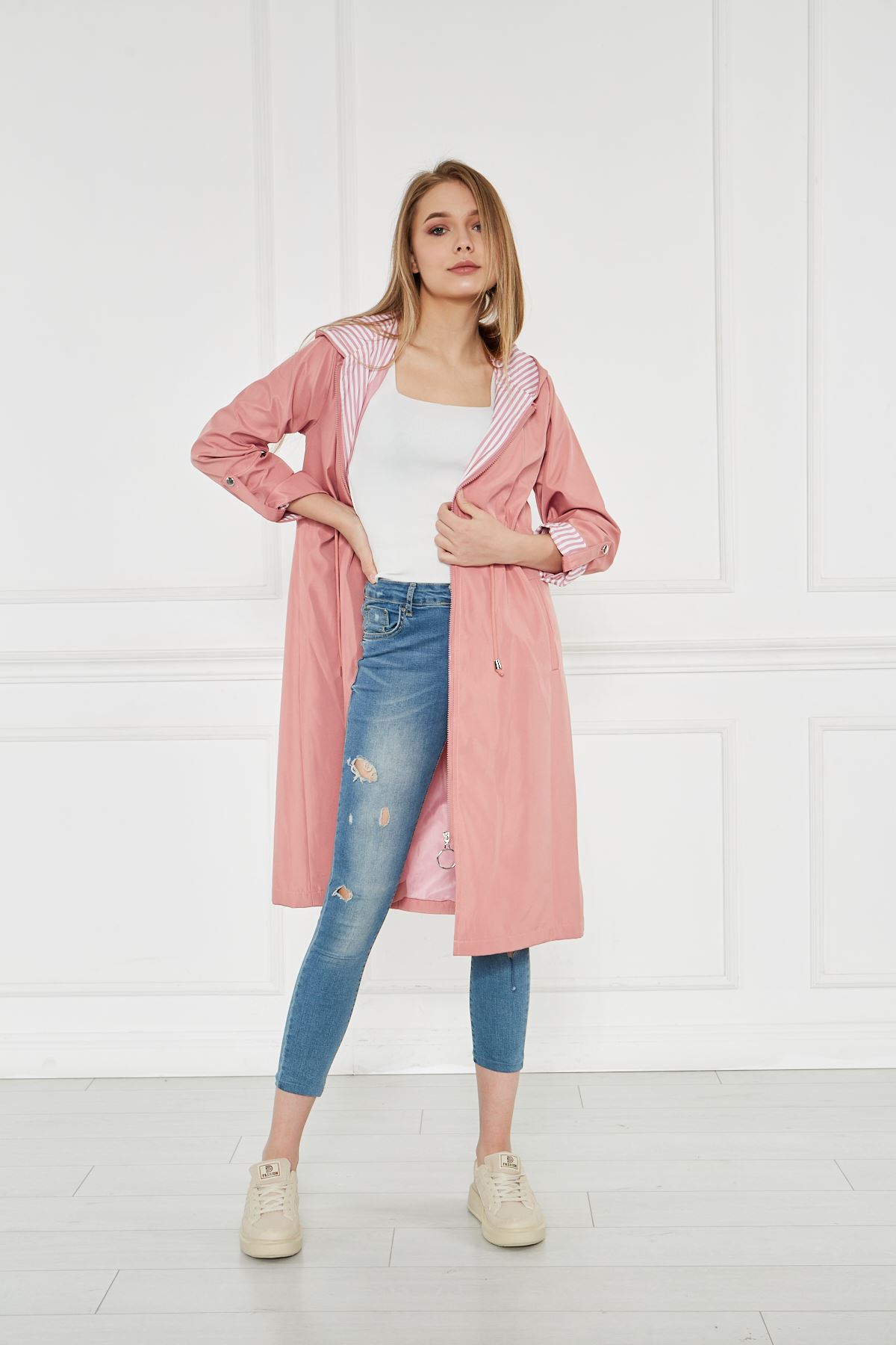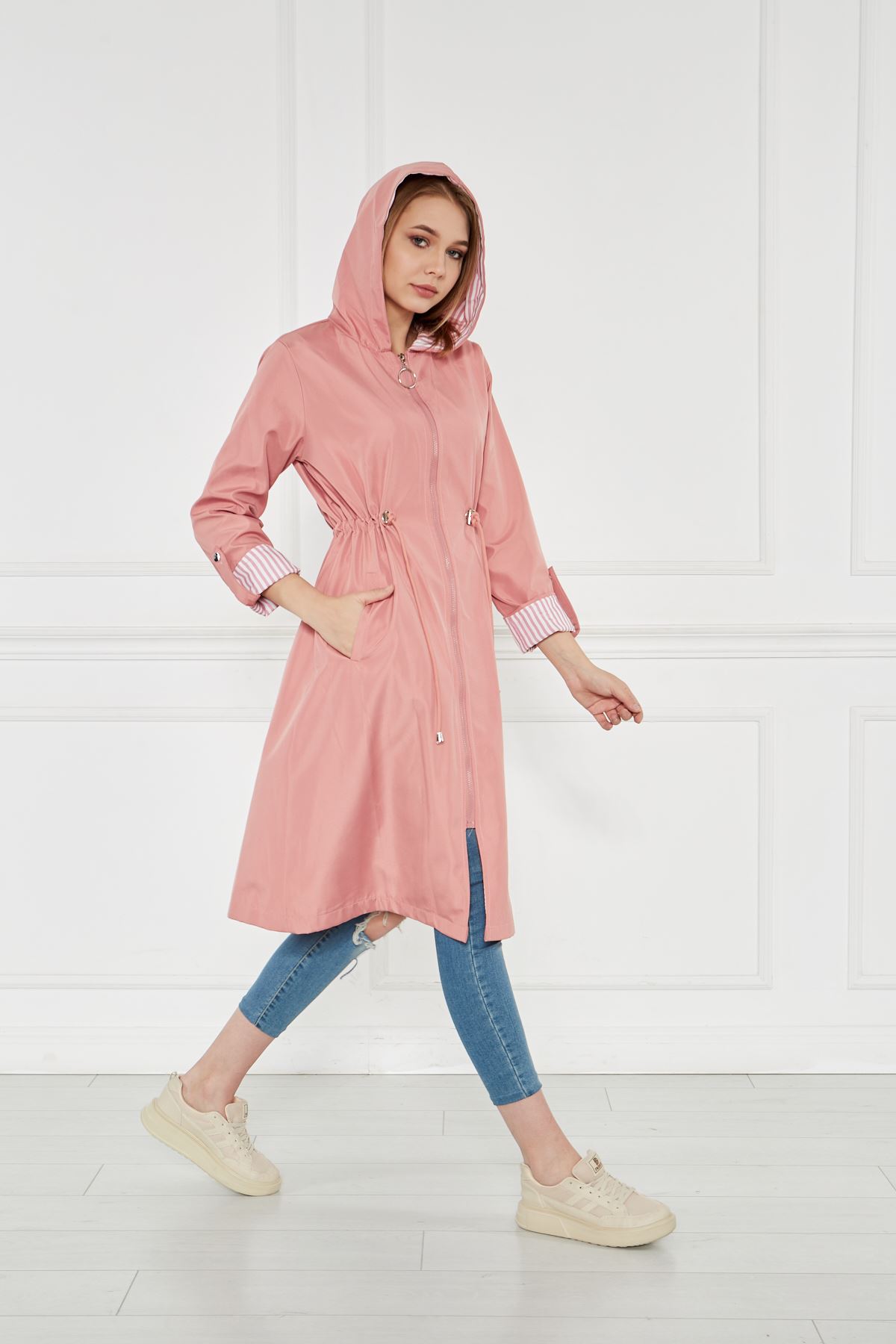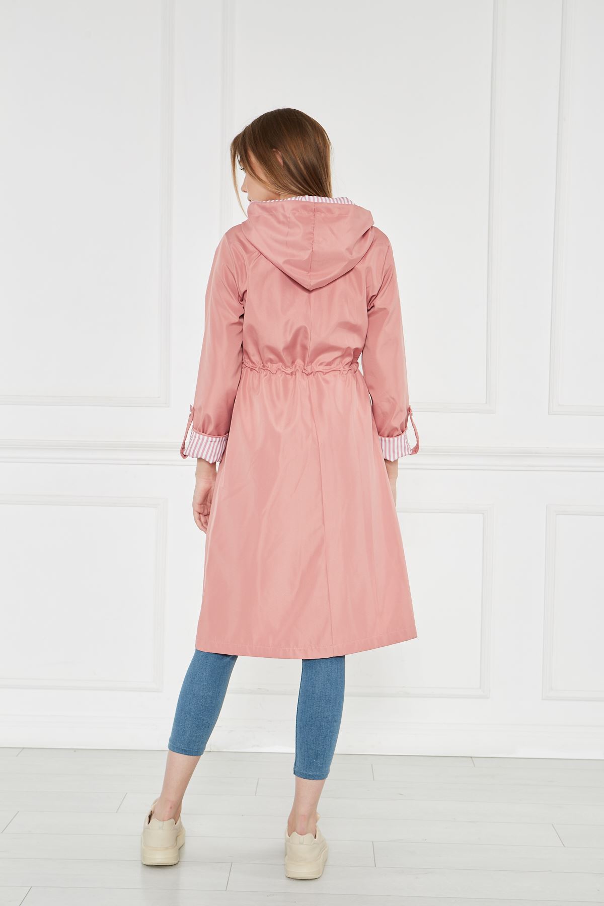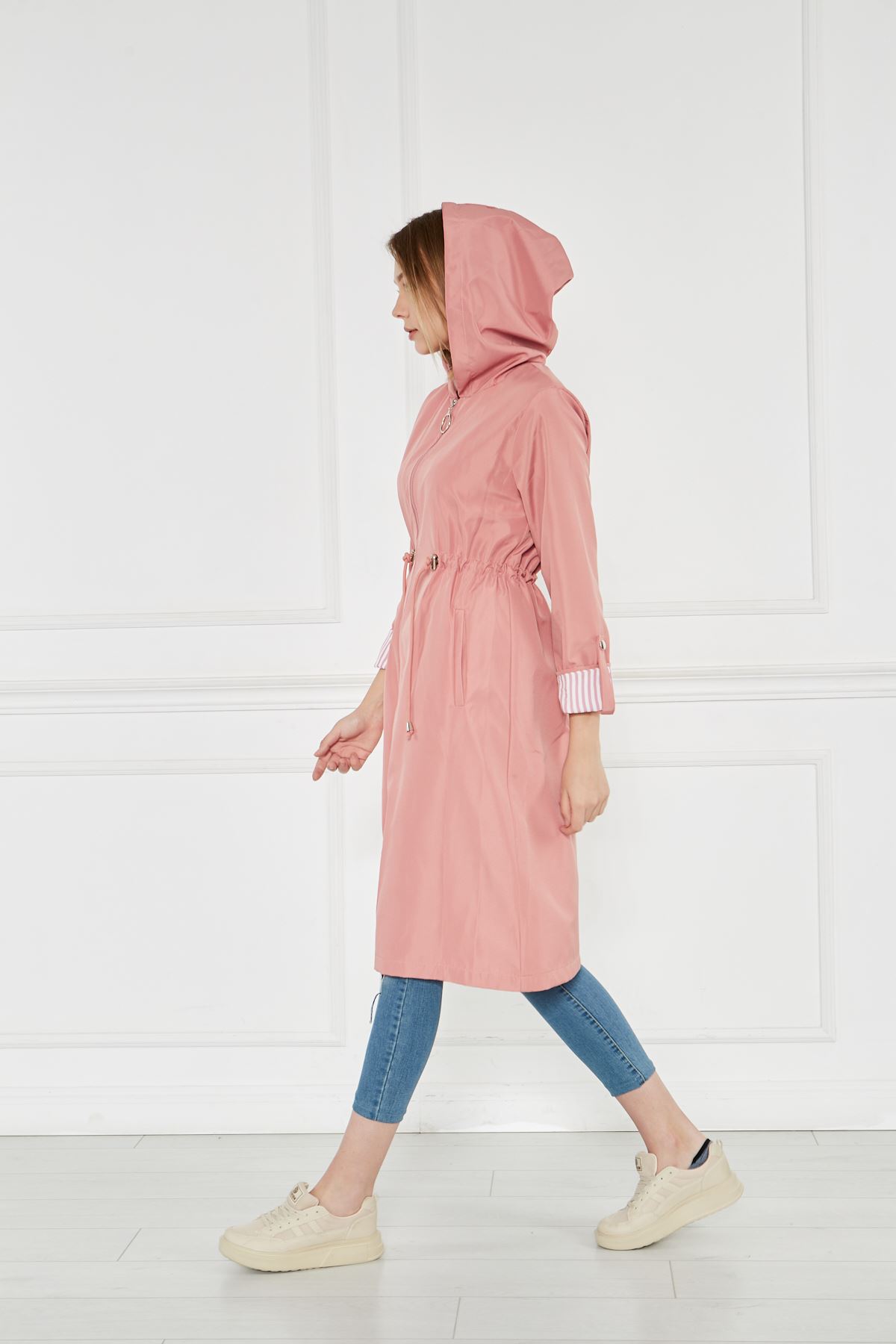 Kadın Beli Büzgülü Su İtici Kapüşonlu Trençkot PEMBE