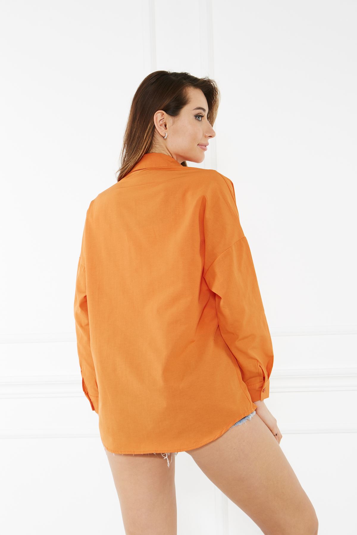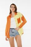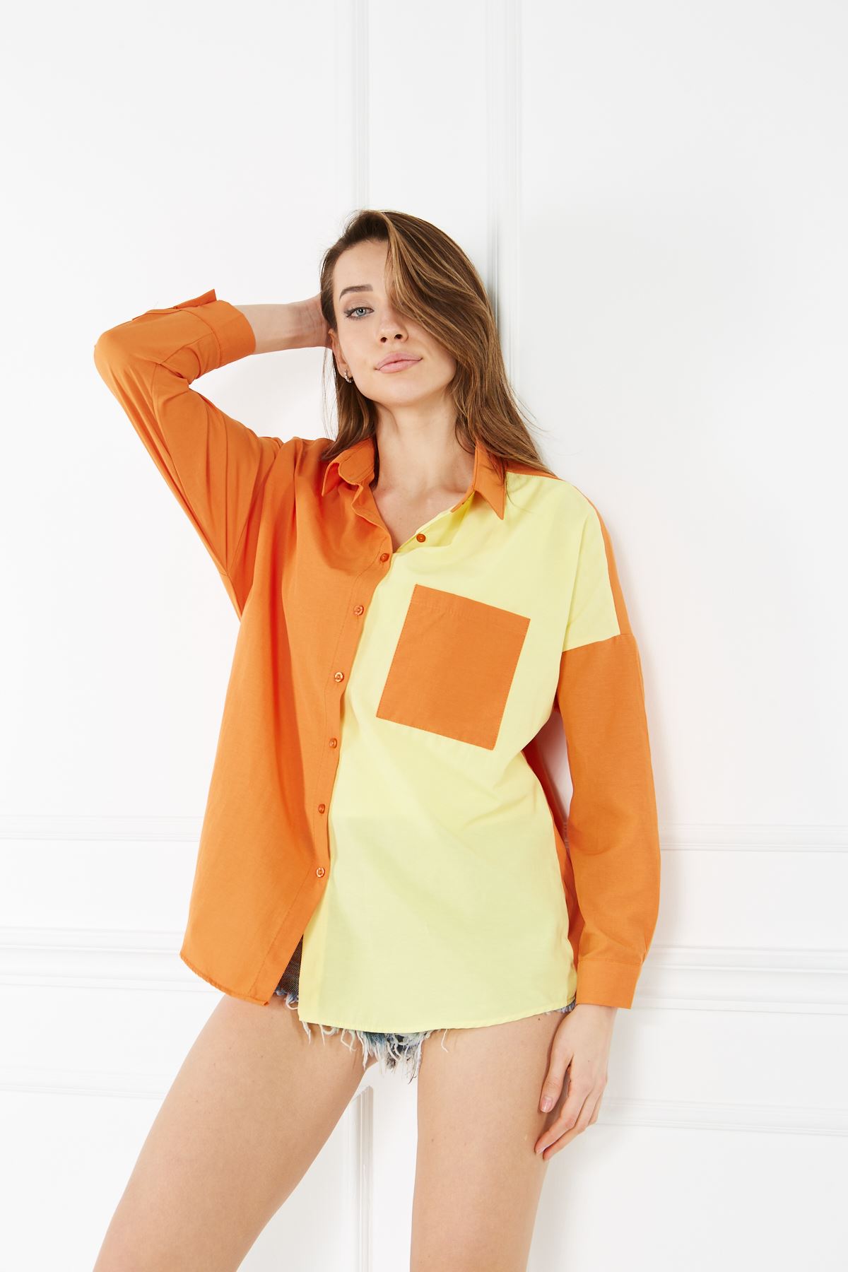Kadın Blok Renkli Oversize Çift Renk Poplin Gömlek Turuncu