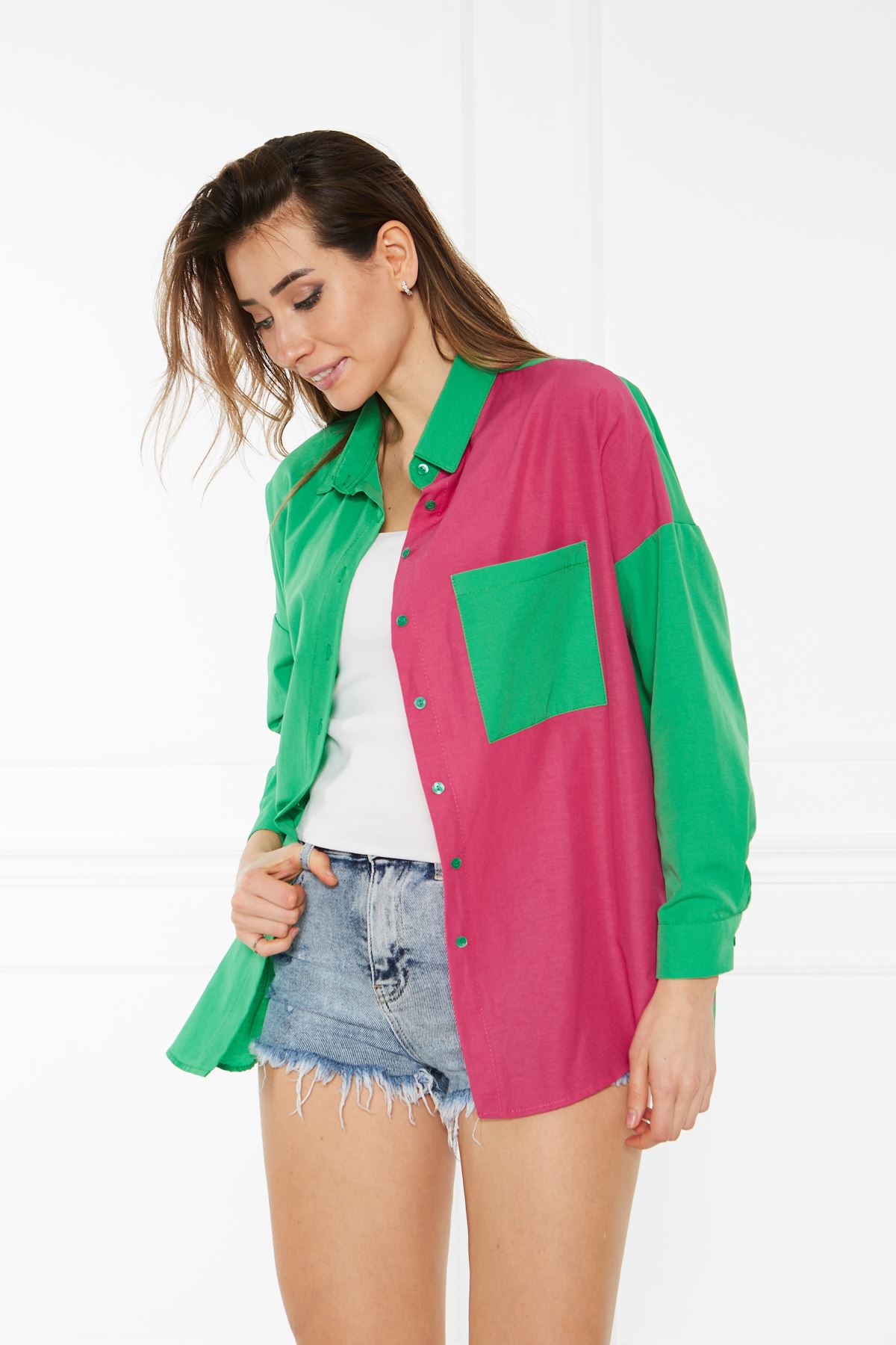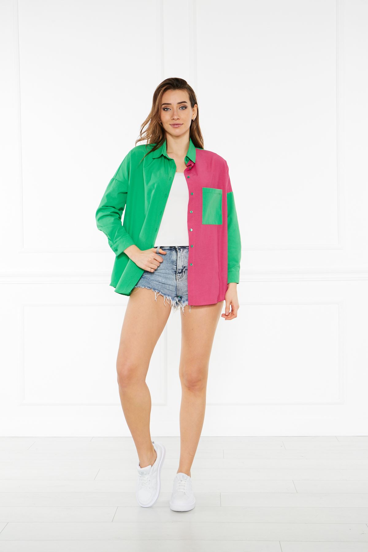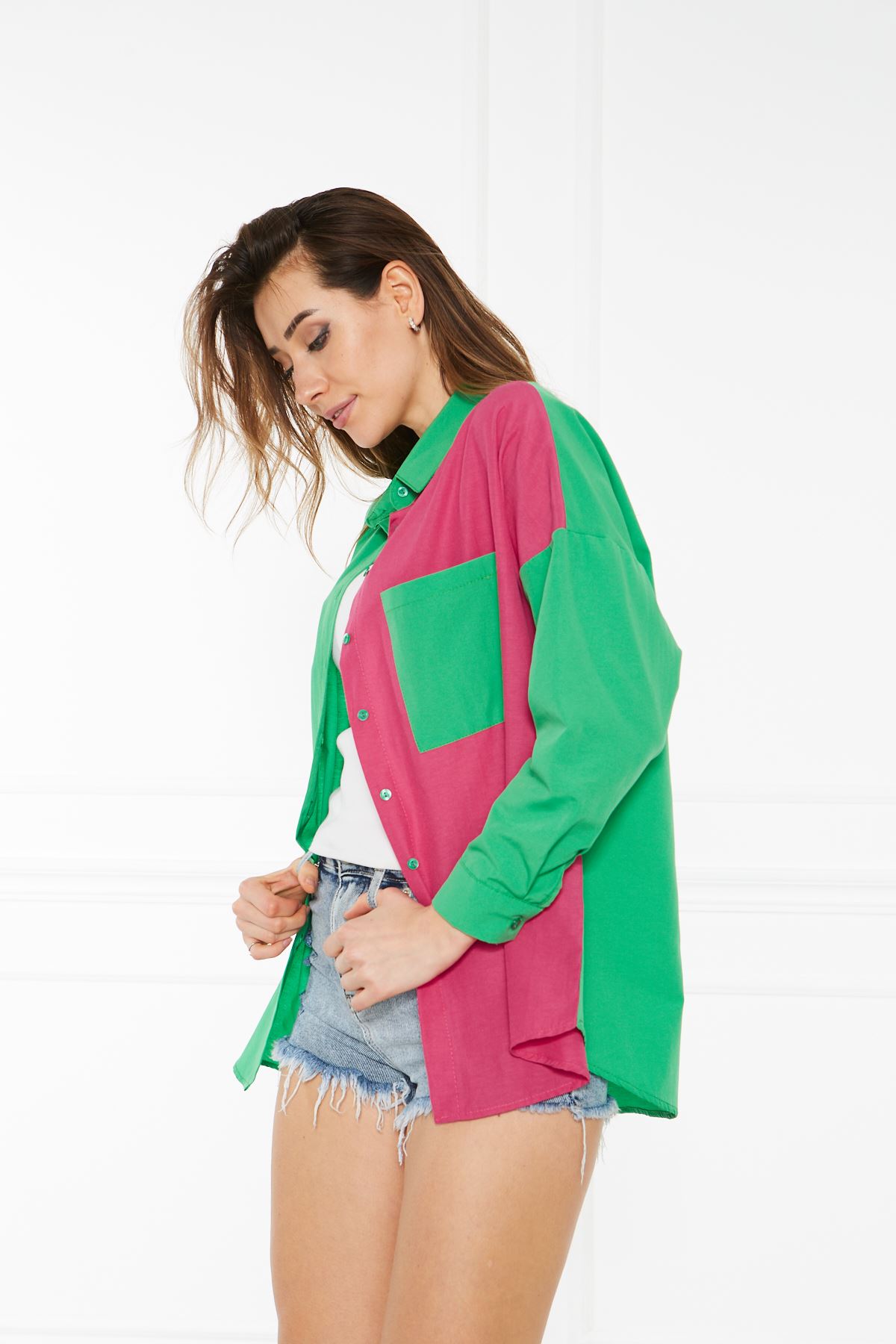 Kadın Oversize Çift Renk Gömlek