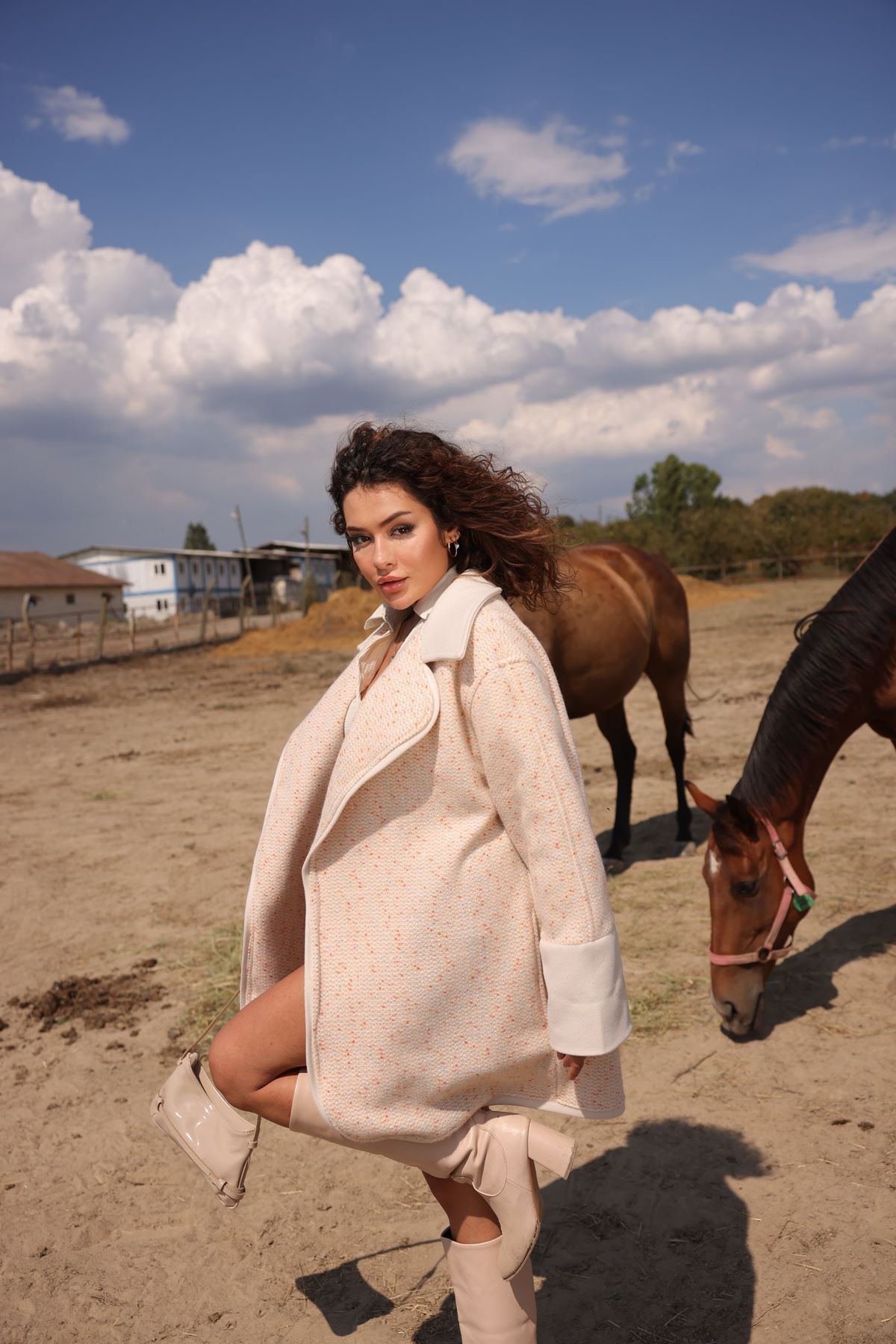 Kadın Yün Karışımlı Astarsız Buklet Kaban KAHVE