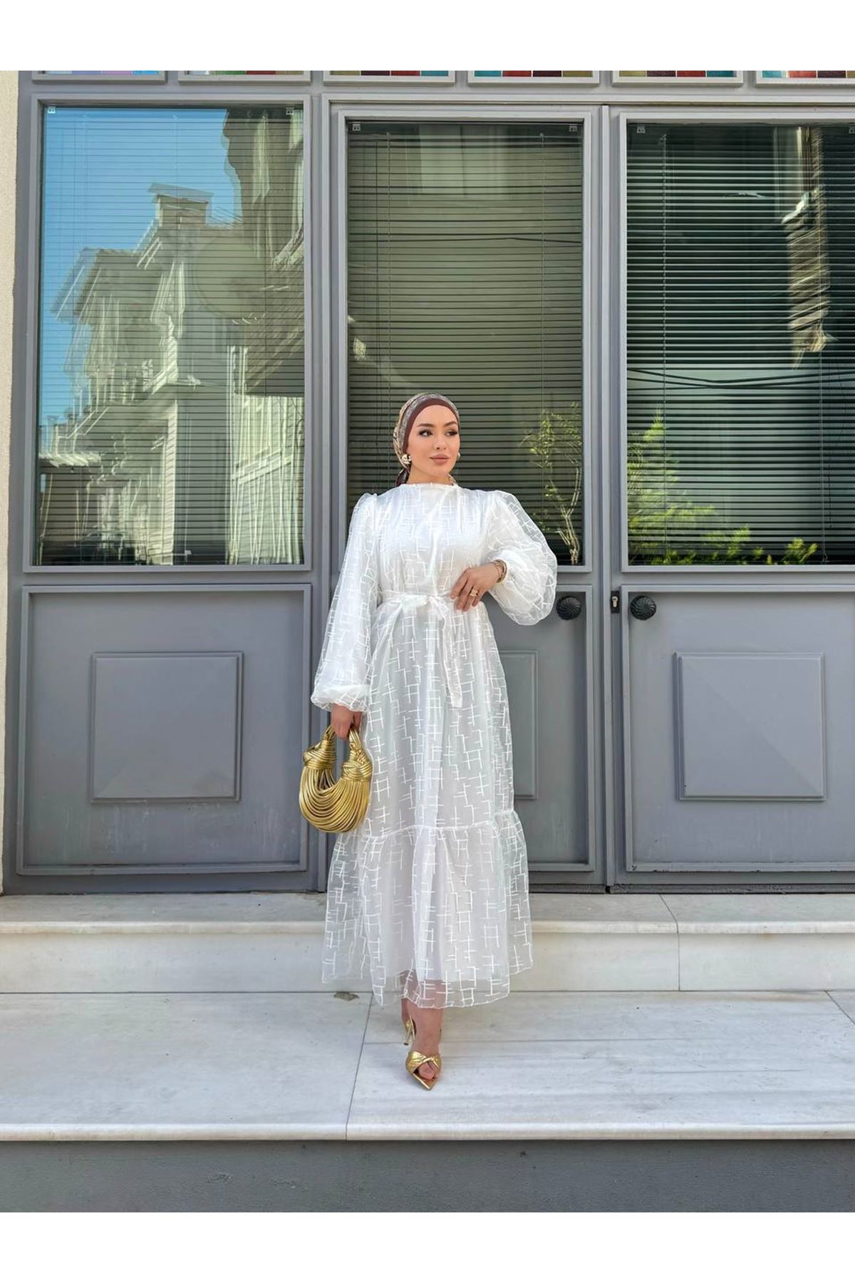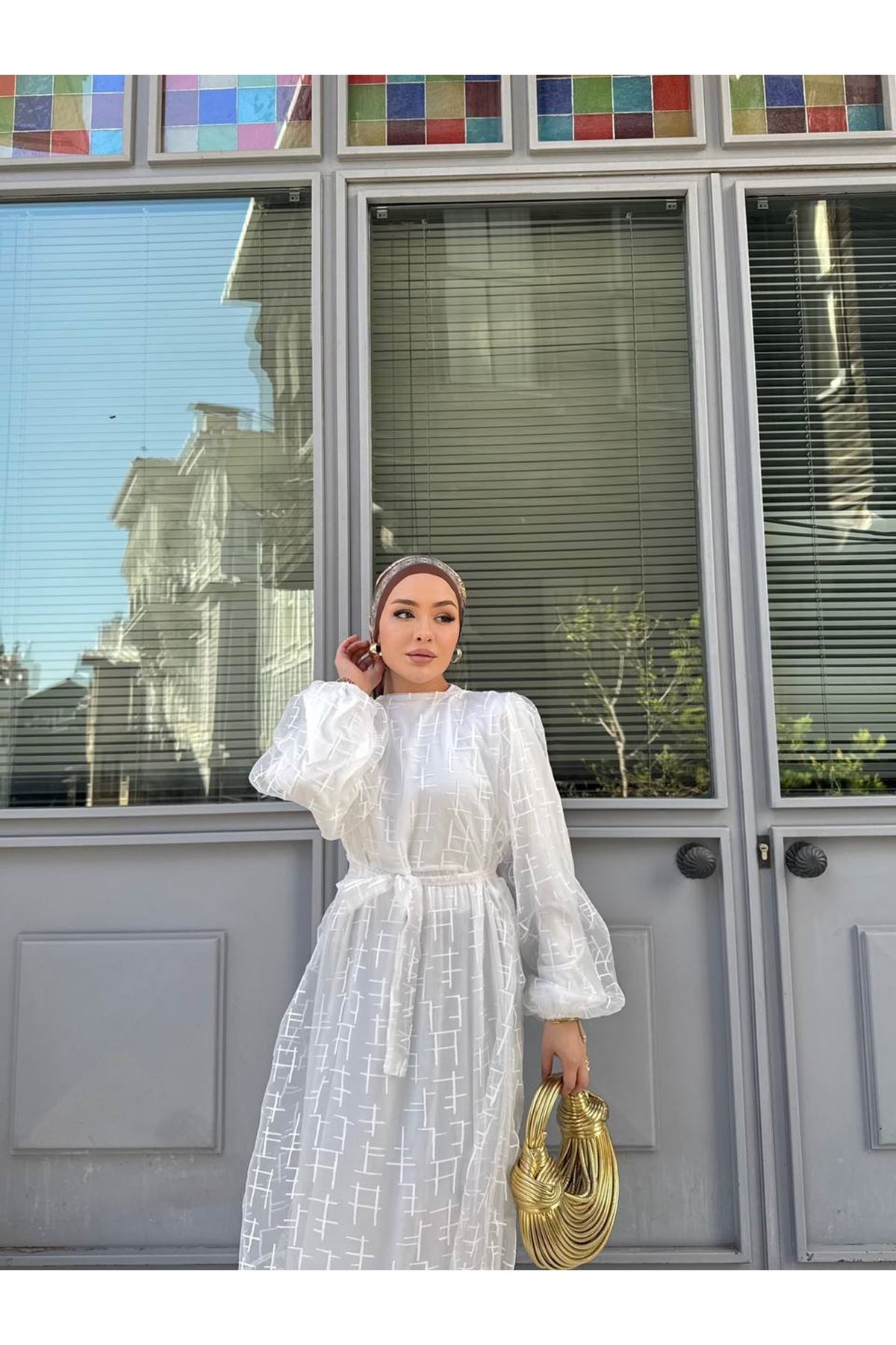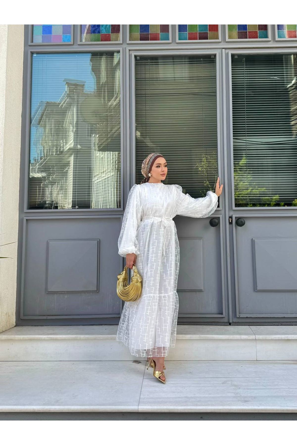 Kadın Güpür Desenli Gömlek Yaka Elbise BEYAZ