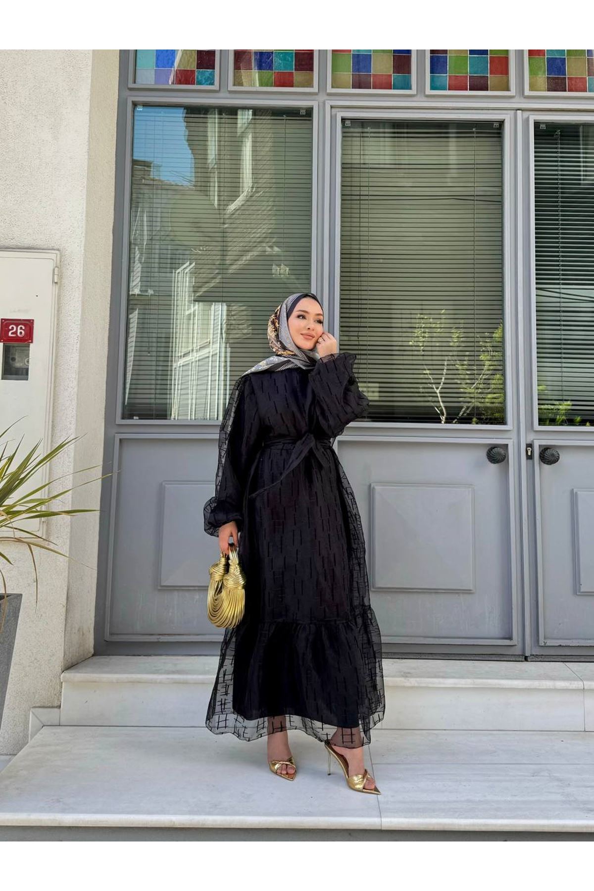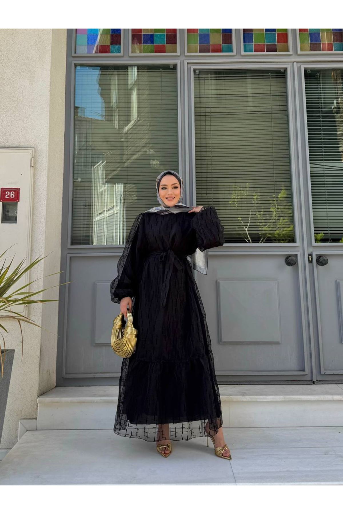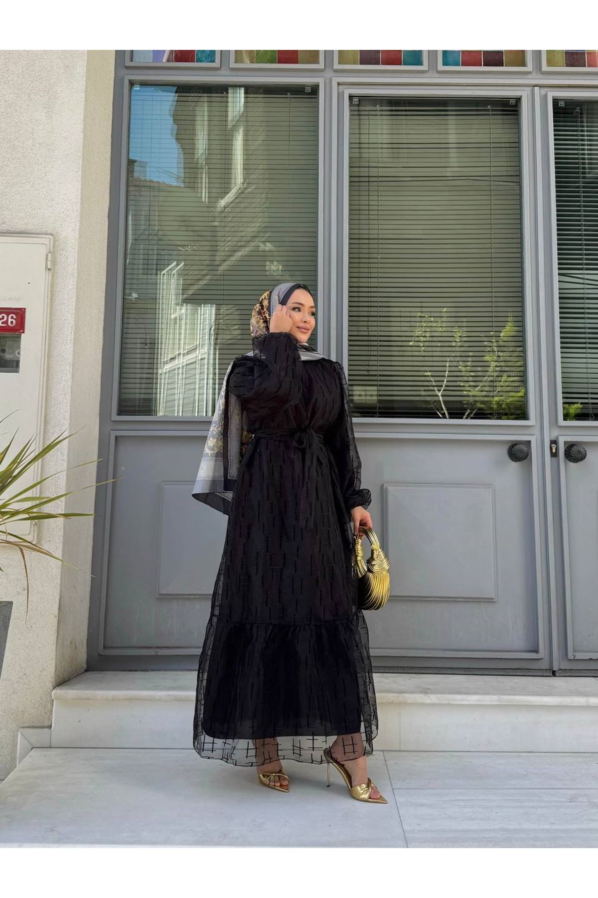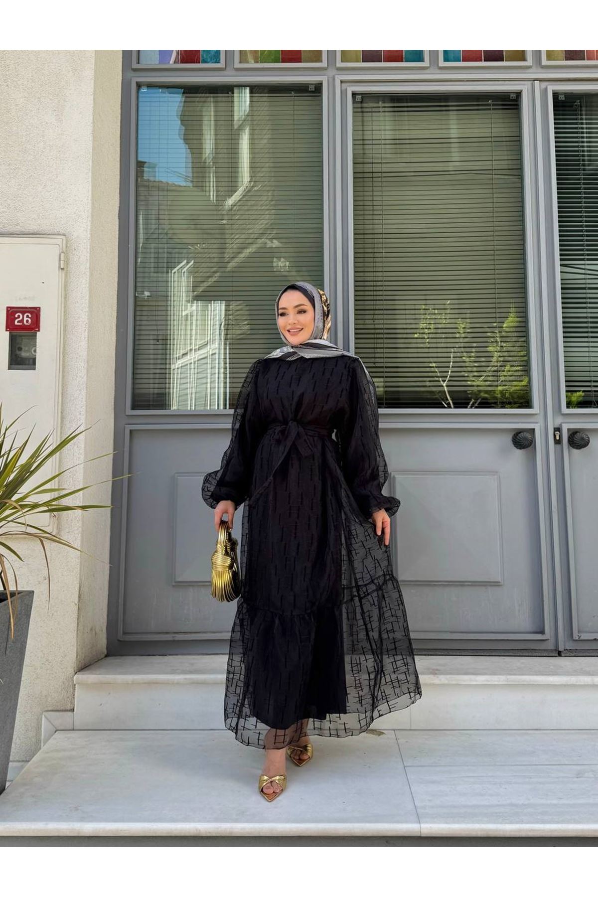 Maya Kumaş Beli Büzgülü Elbise SİYAH