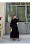 Kadın Güpür Desenli Gömlek Yaka Elbise SİYAH