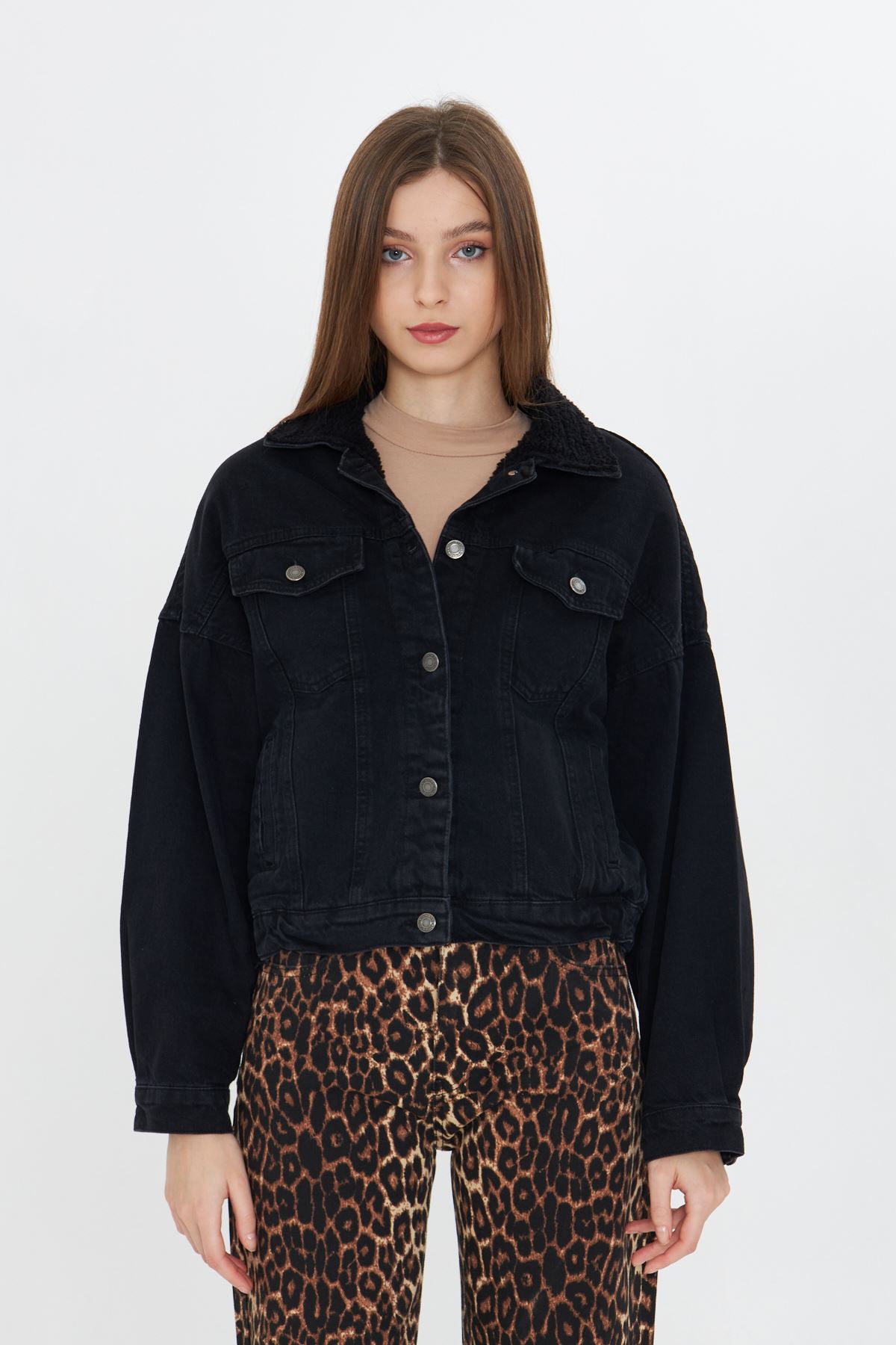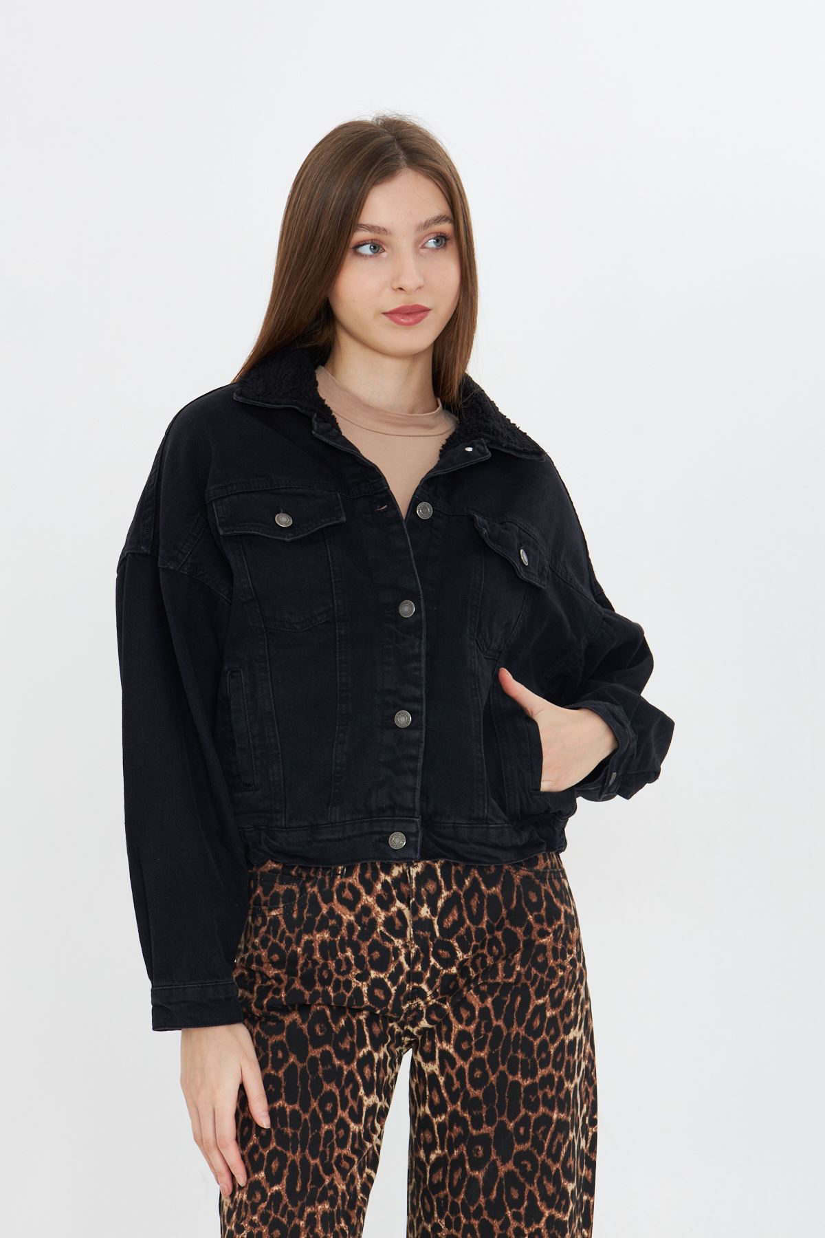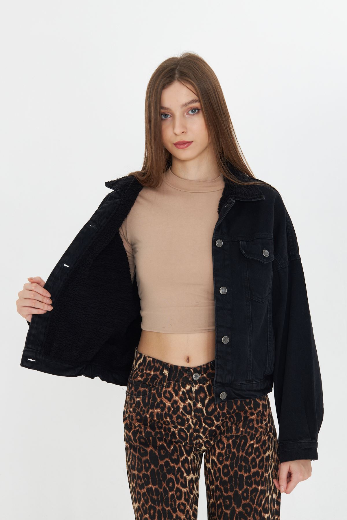 Kadın İçi Kürklü Kot Ceket A.SİYAH