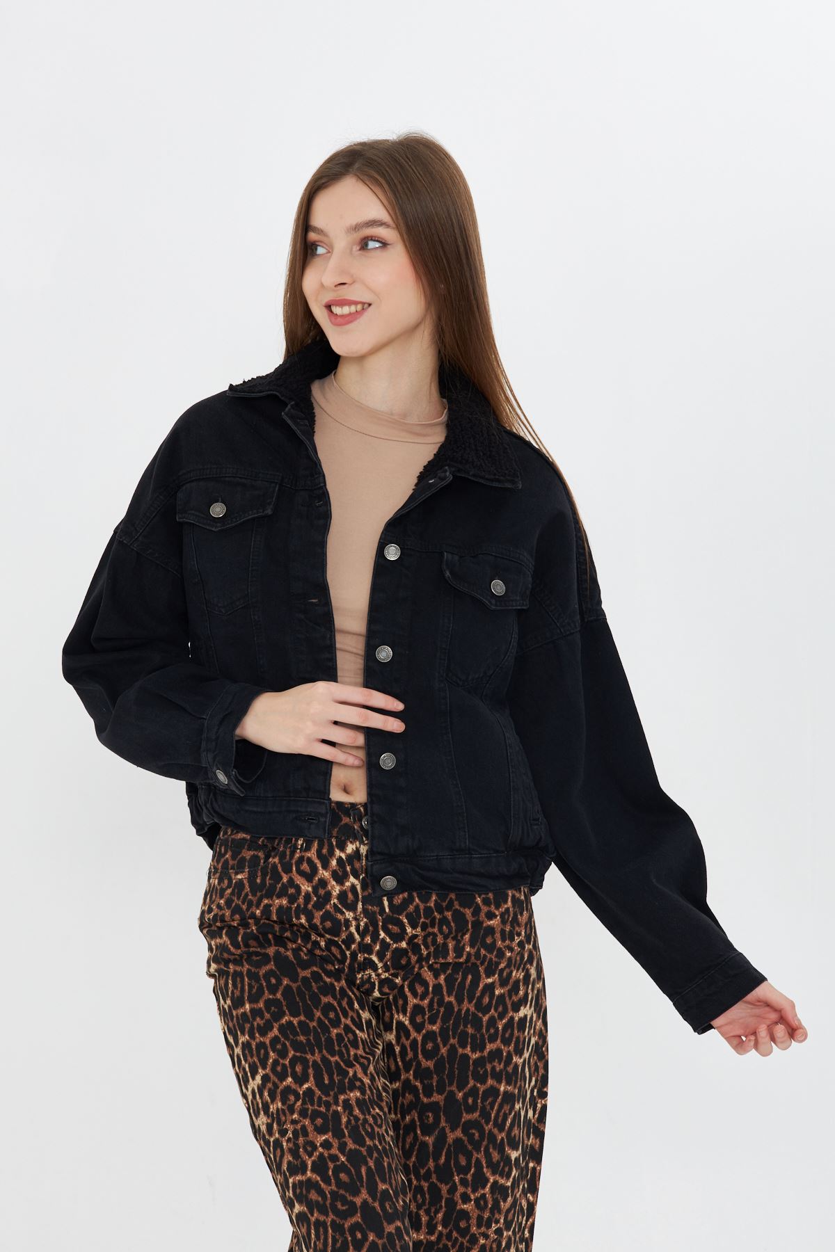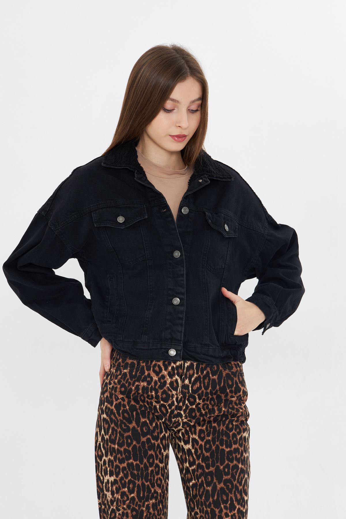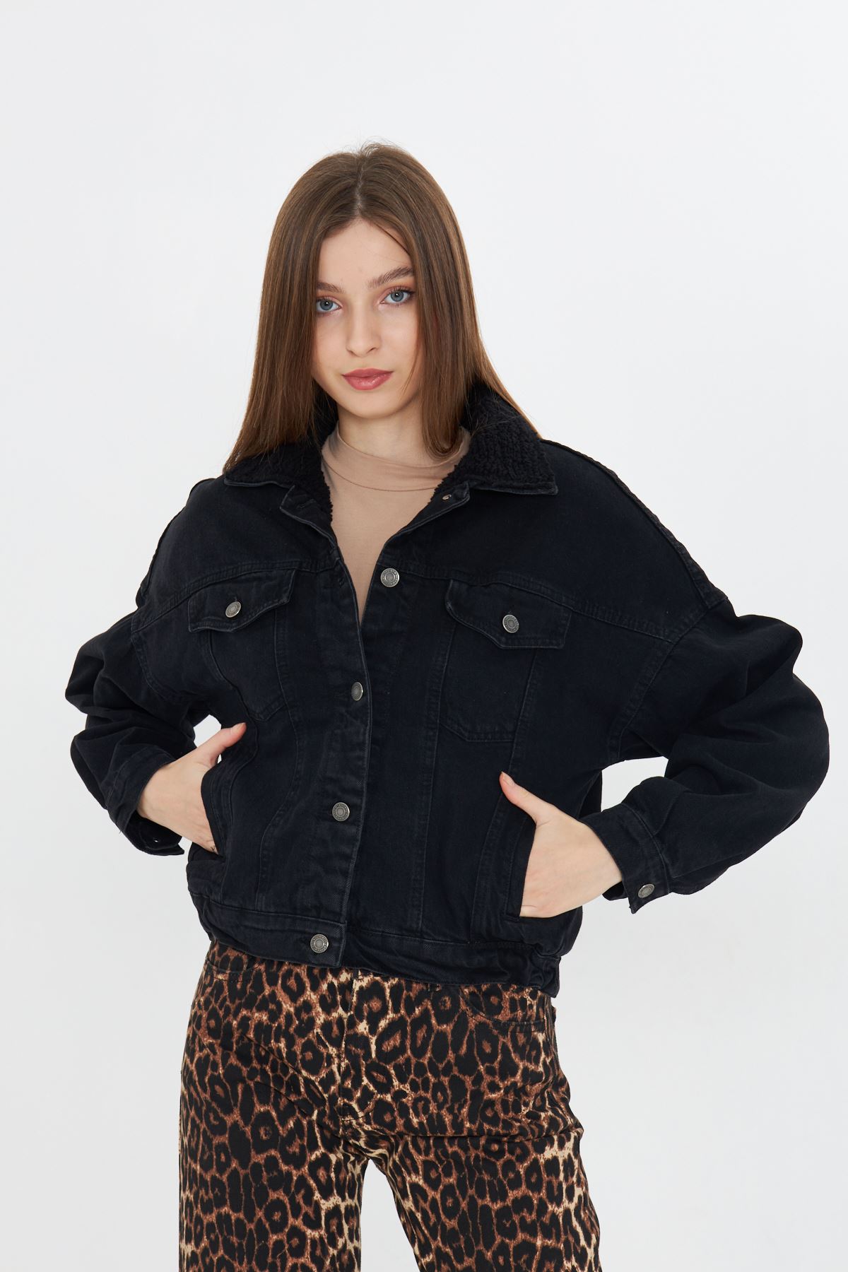 Kadın İçi Kürklü Kot Ceket A.SİYAH