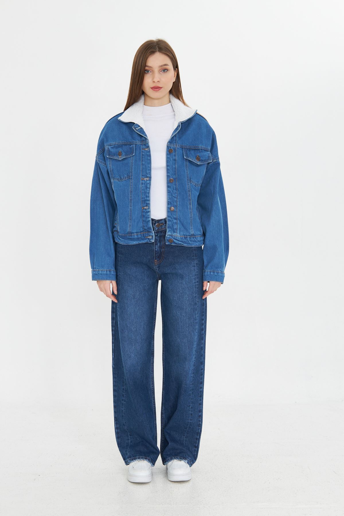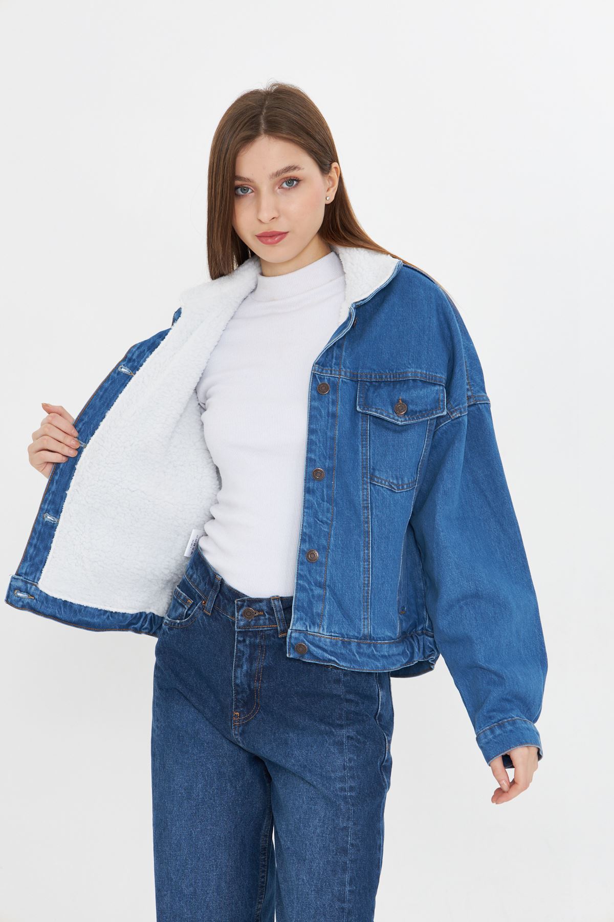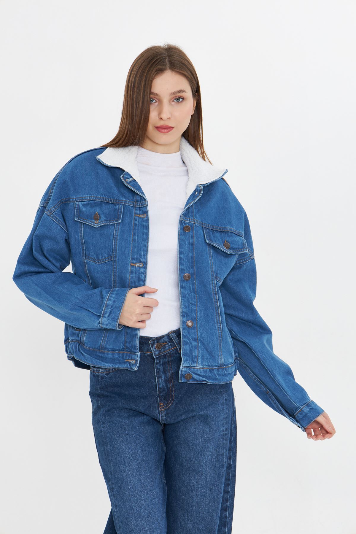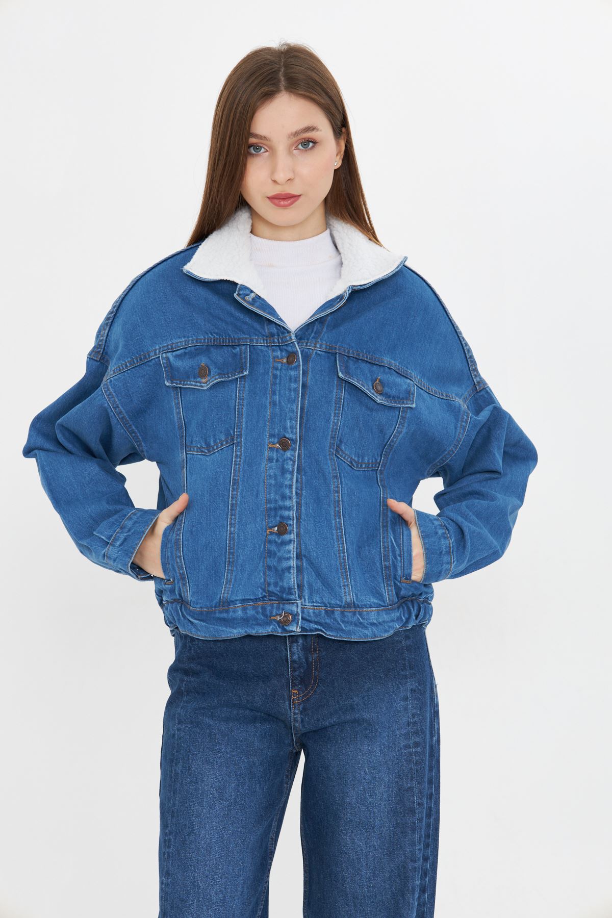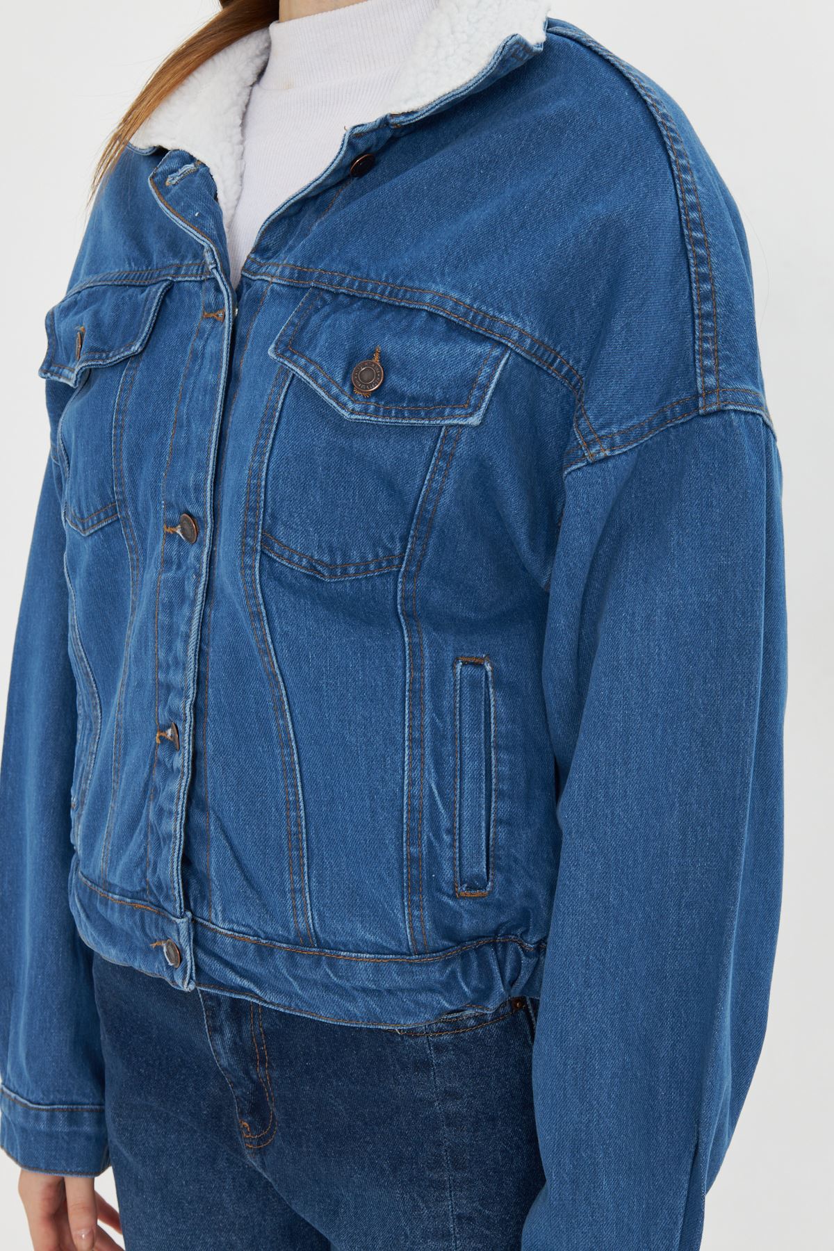Kadın İçi Kürklü Kot Ceket MAVİ