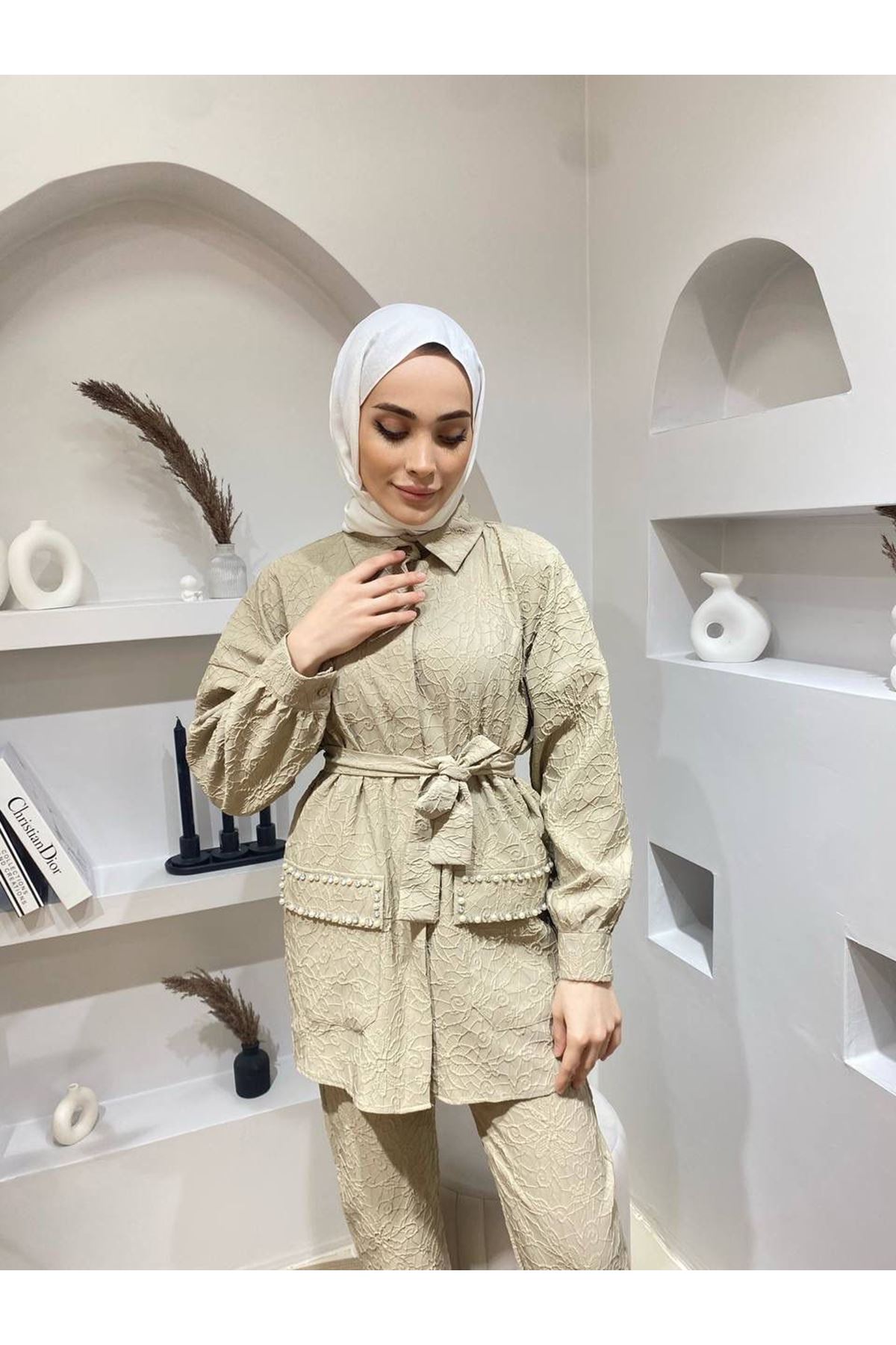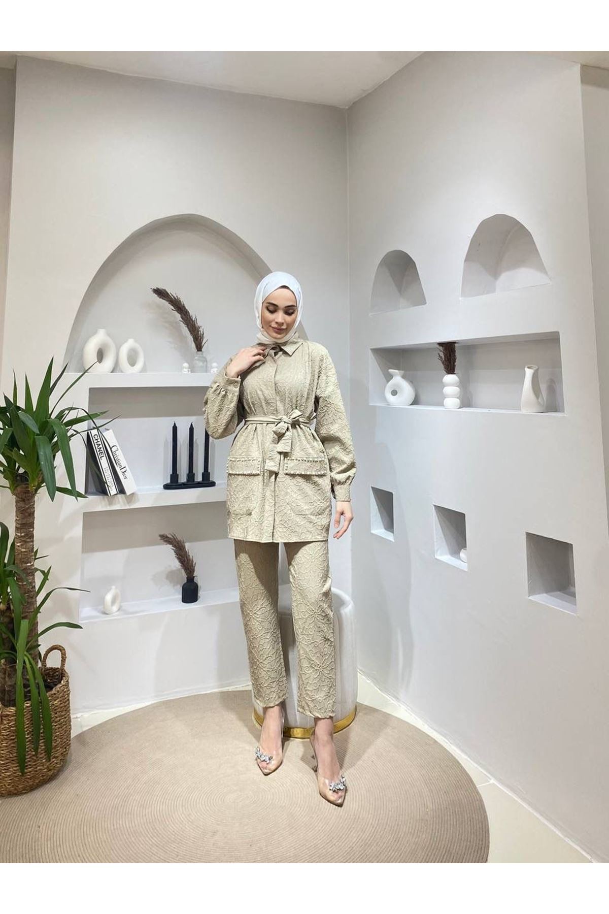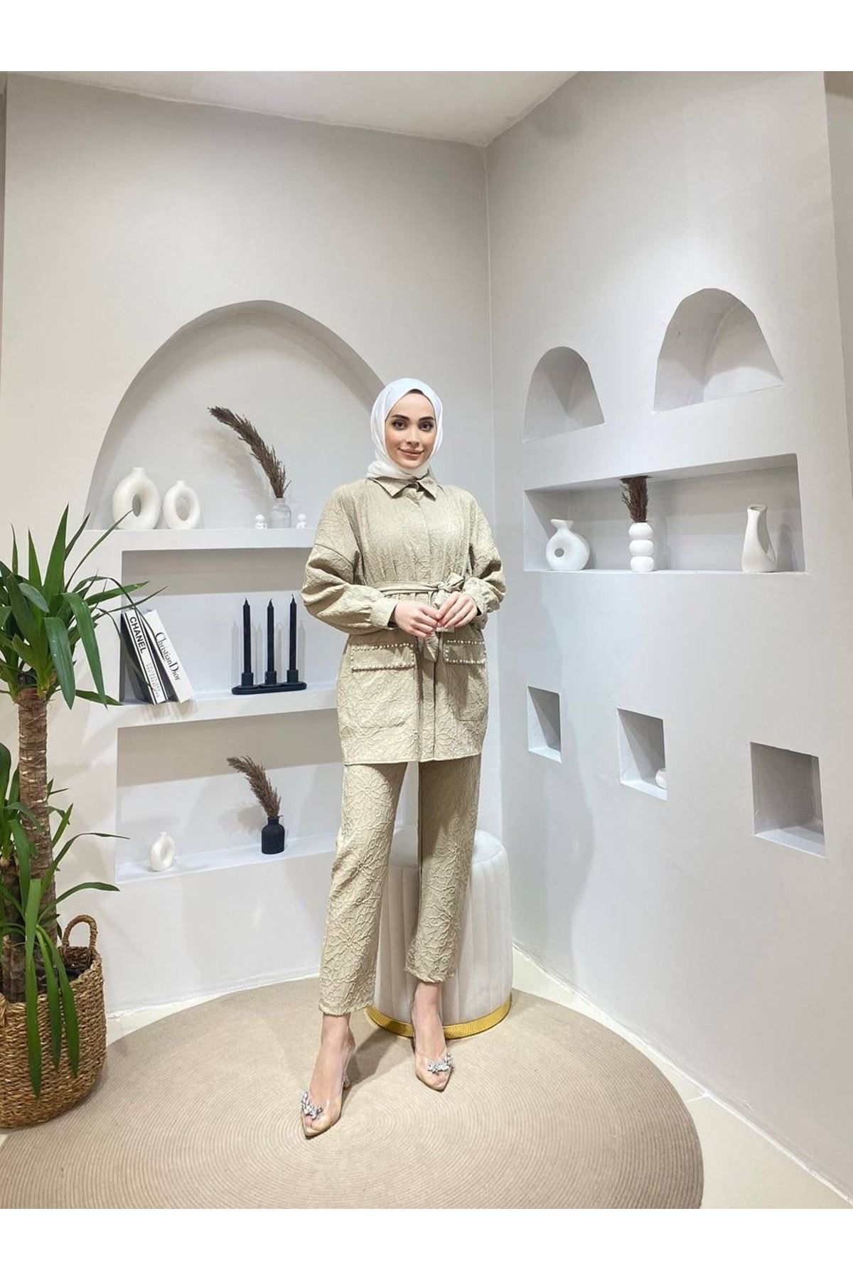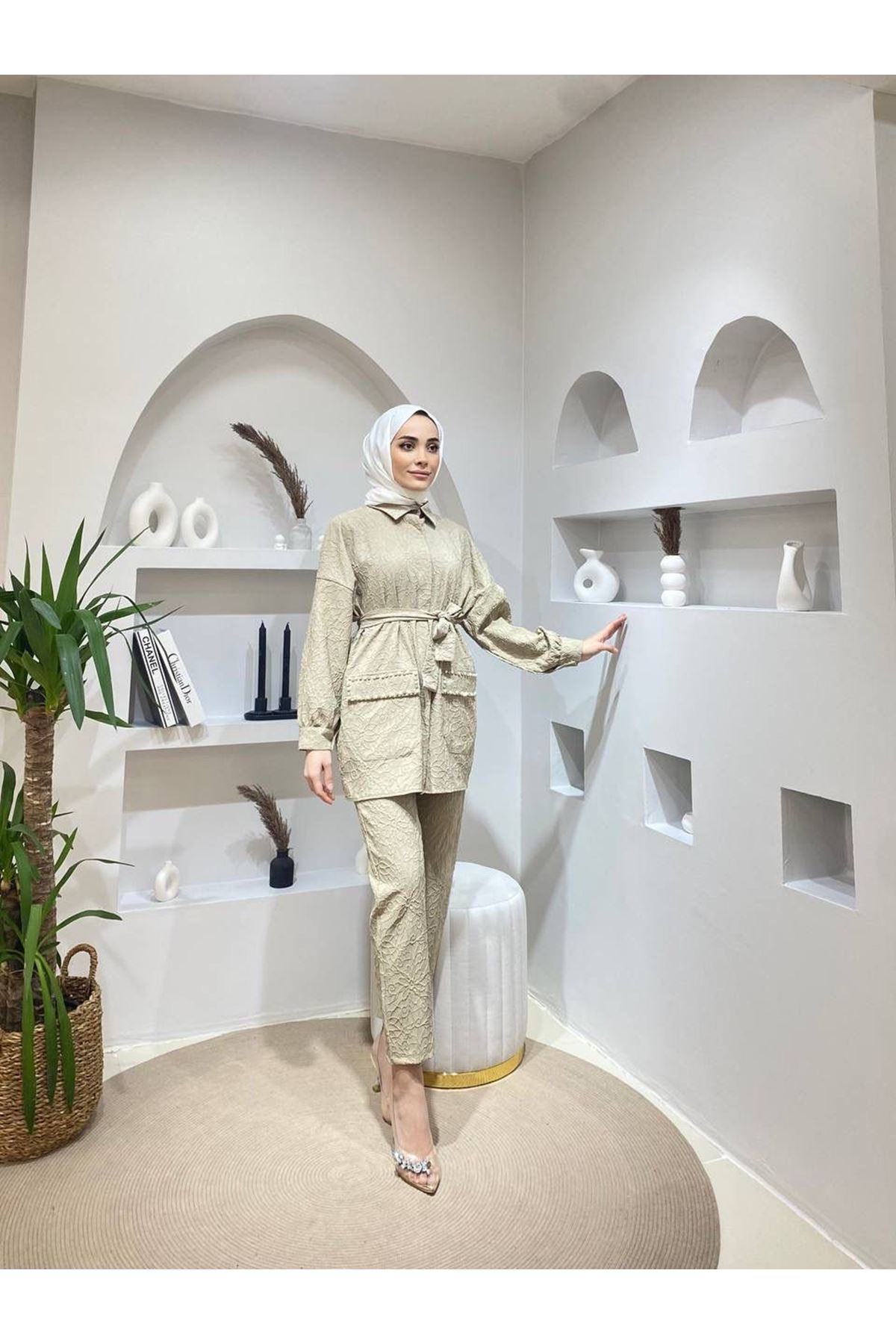 Kadın Jakarlı Bel Kuşaklı Cep Taşlı Alt Üst Takım TAŞ