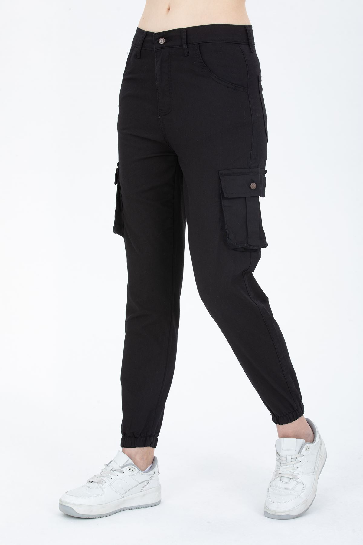 Kadın Jogger Paça Lastikli Kargo Cepli Gabardin Kadın Pantolon