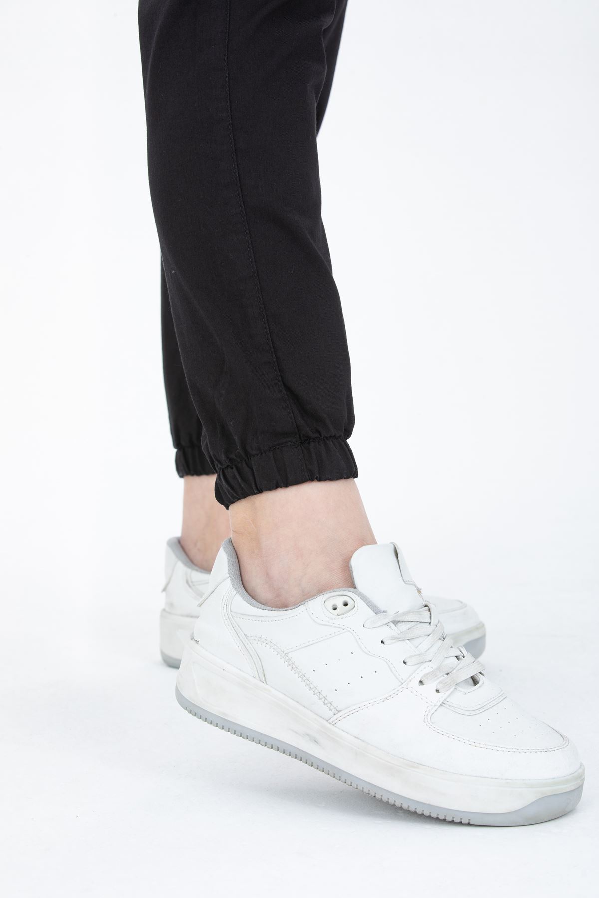 Kadın Jogger Rahat Kalıp Paça Lastikli Gabardin Pantolon SİYAH