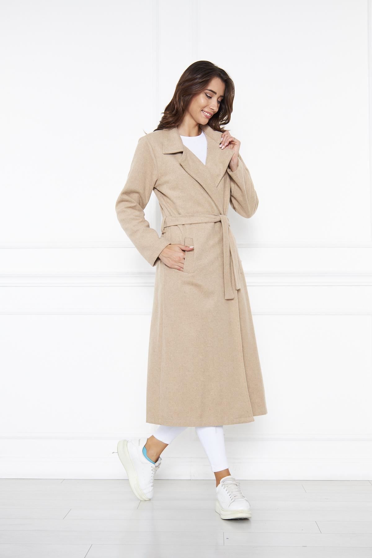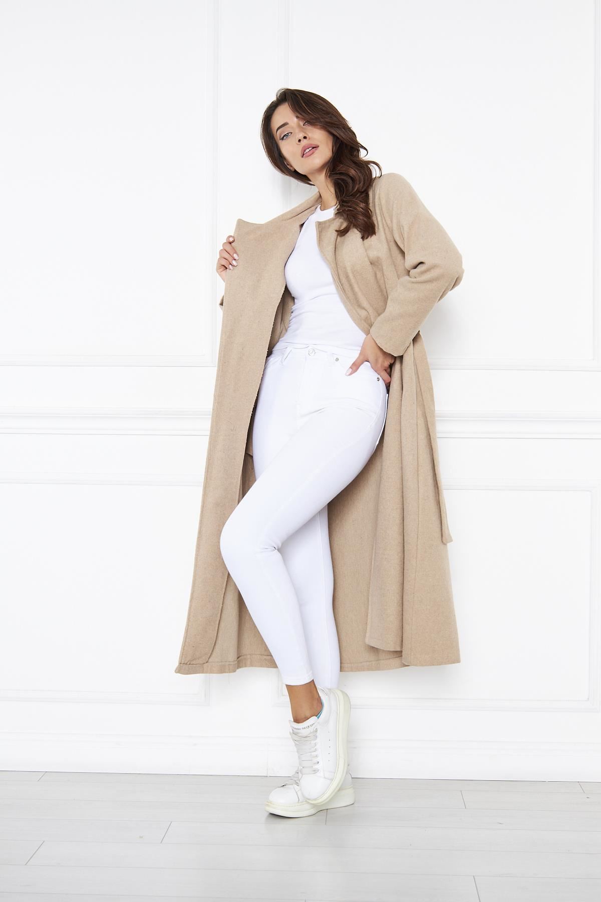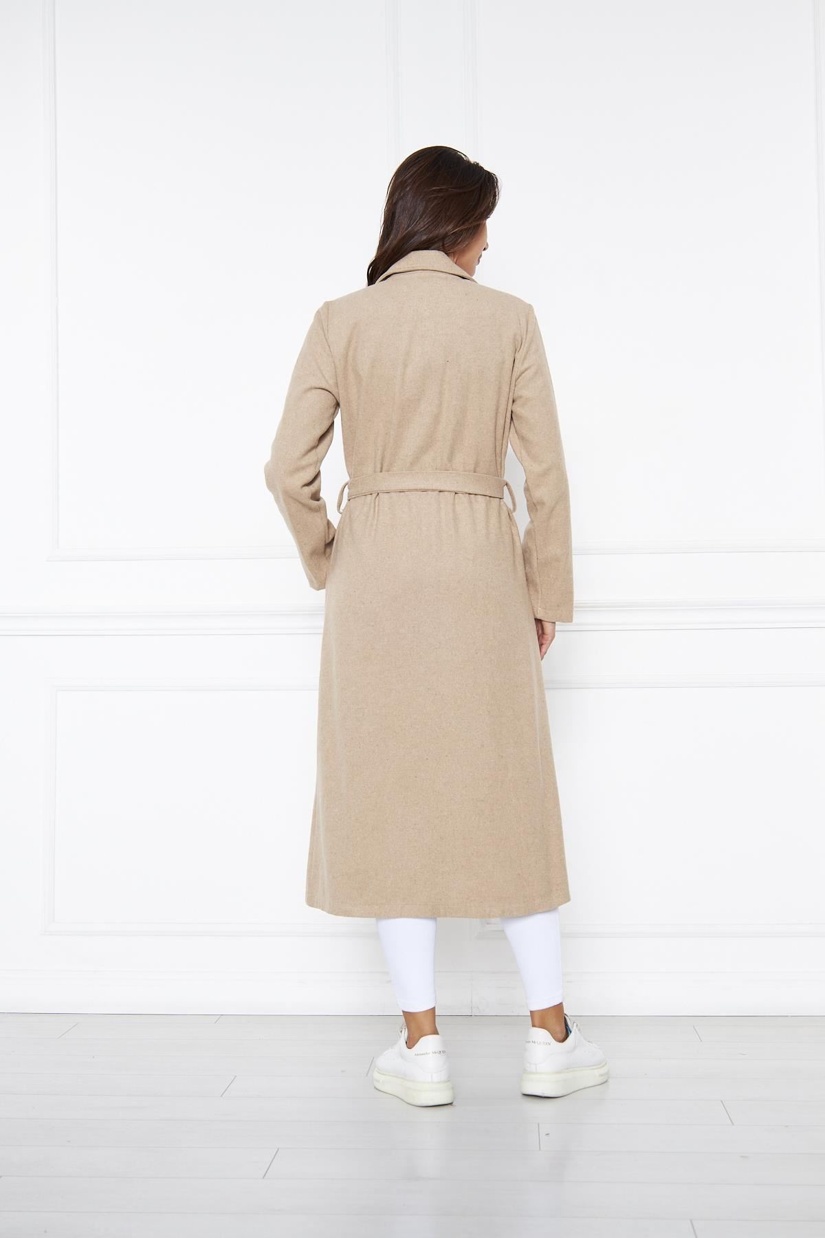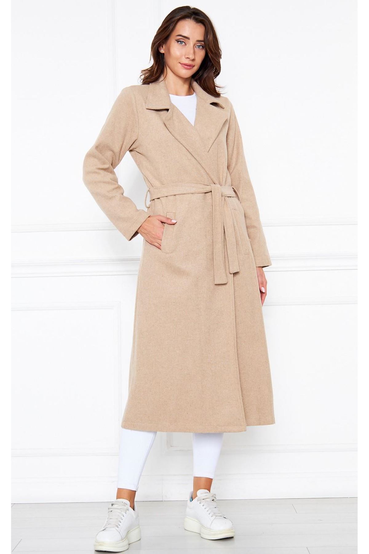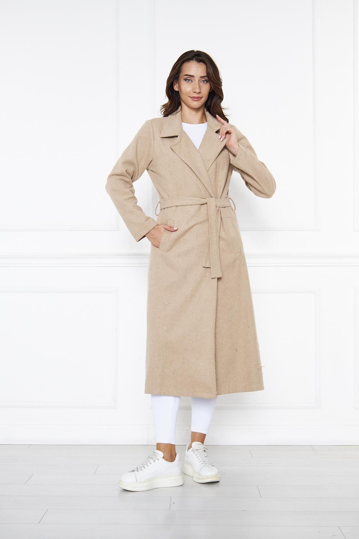 KADIN KAŞE ASTARSIZ KUŞAKLI KABAN BEJ