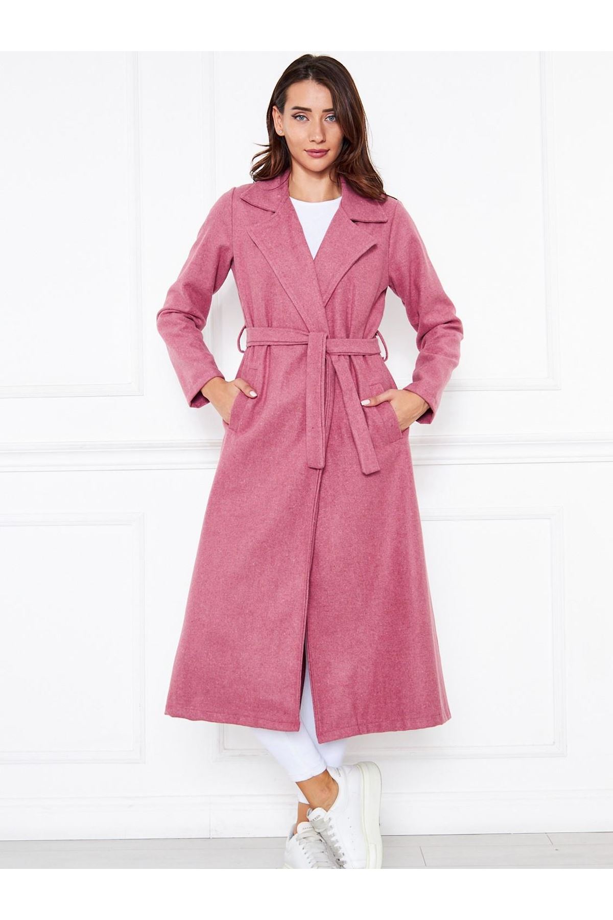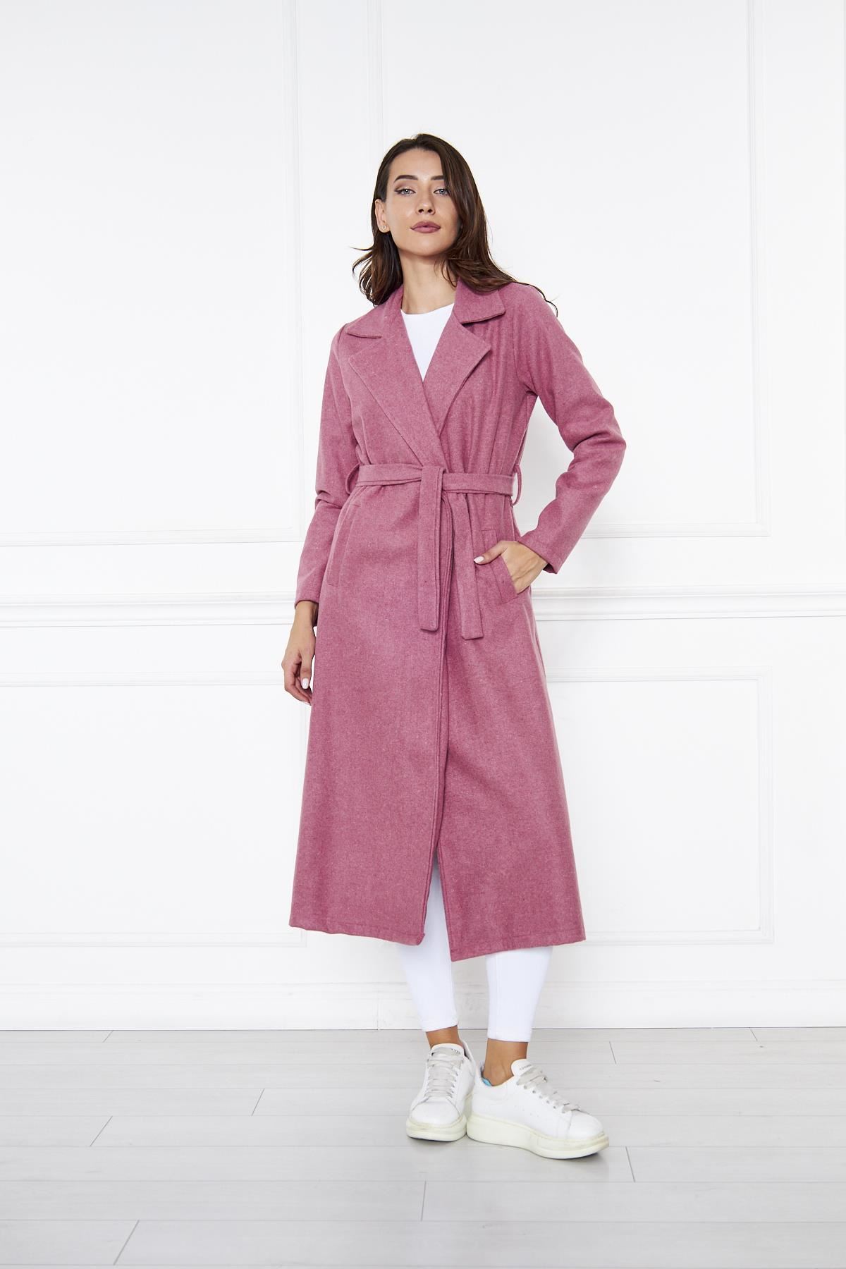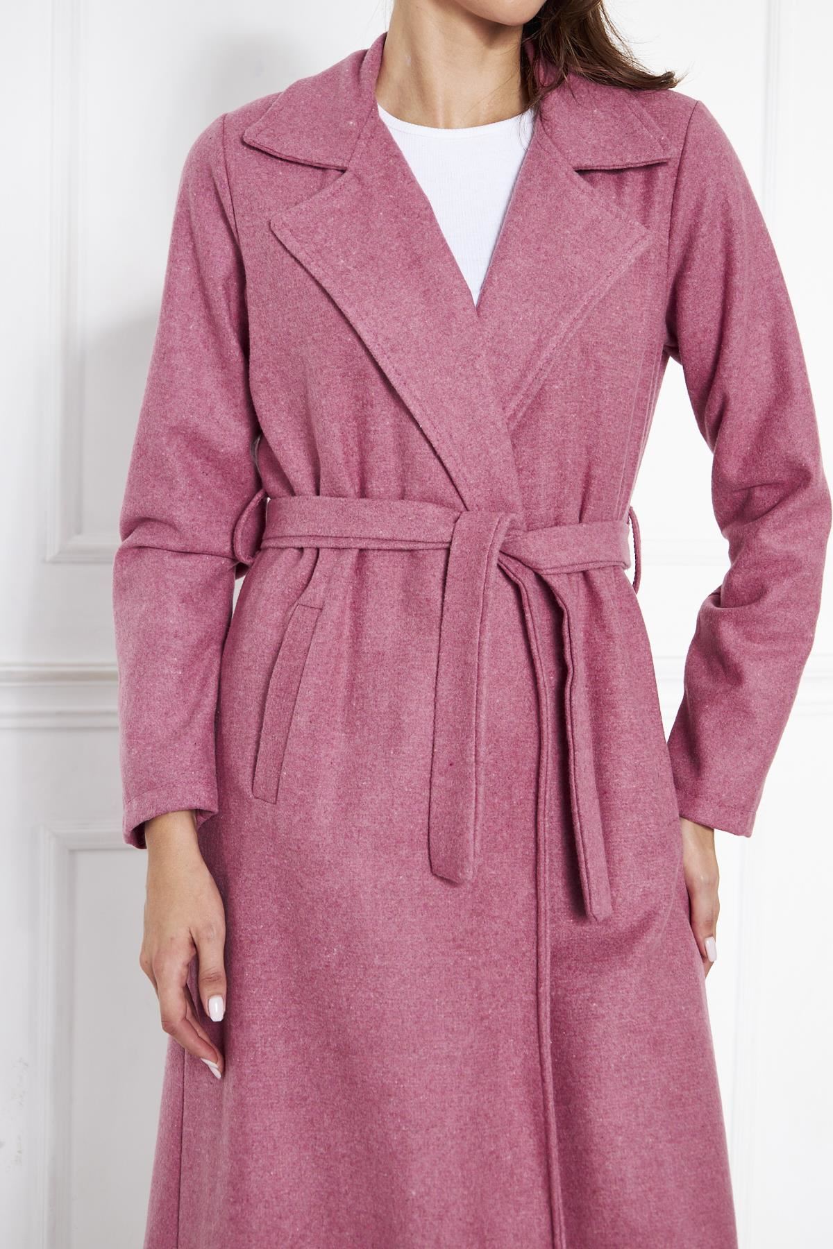 KADIN KAŞE ASTARSIZ KUŞAKLI KABAN Fuşya