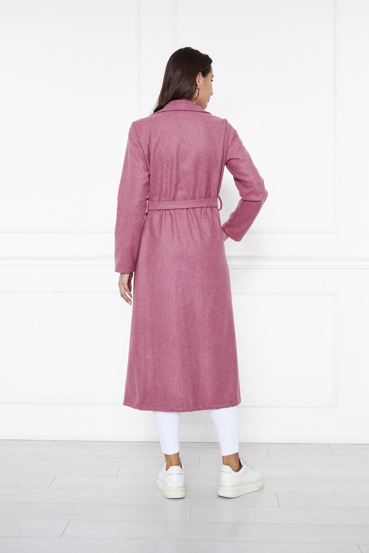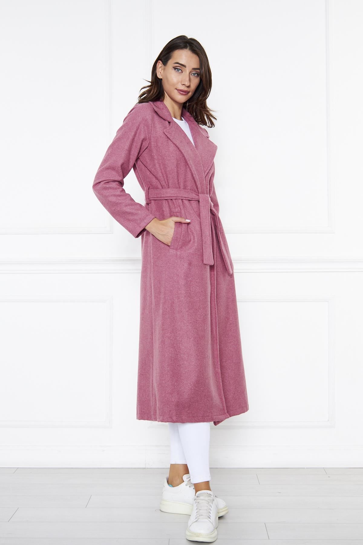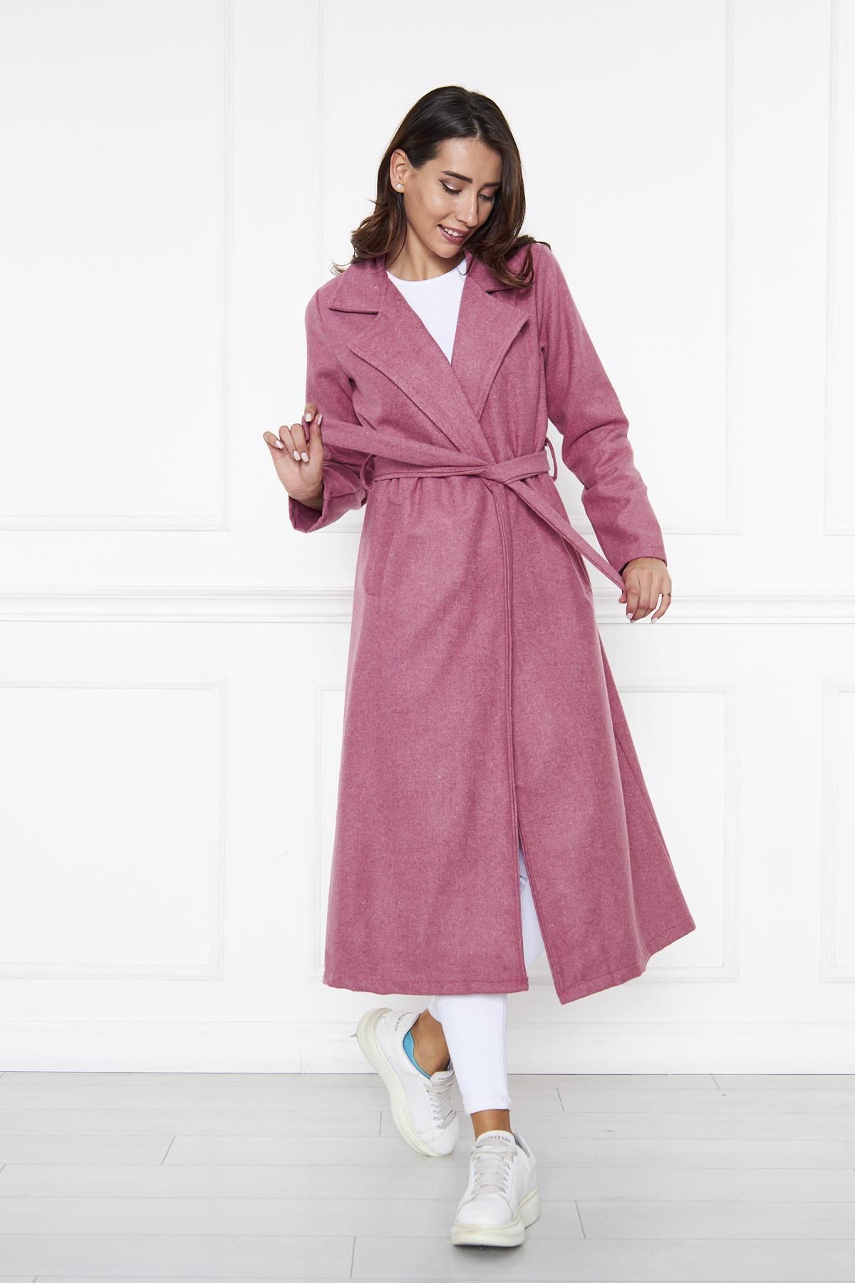 KADIN KAŞE ASTARSIZ KUŞAKLI KABAN Fuşya