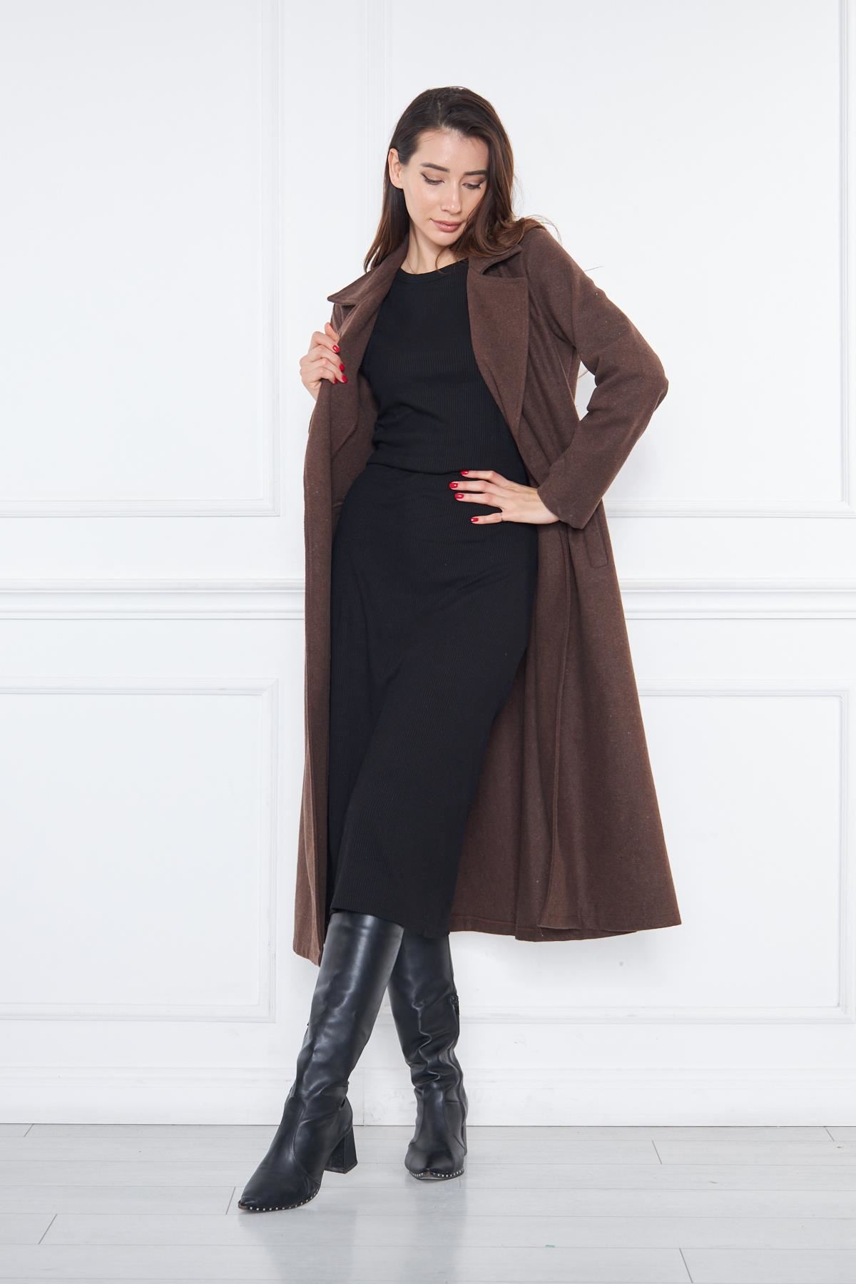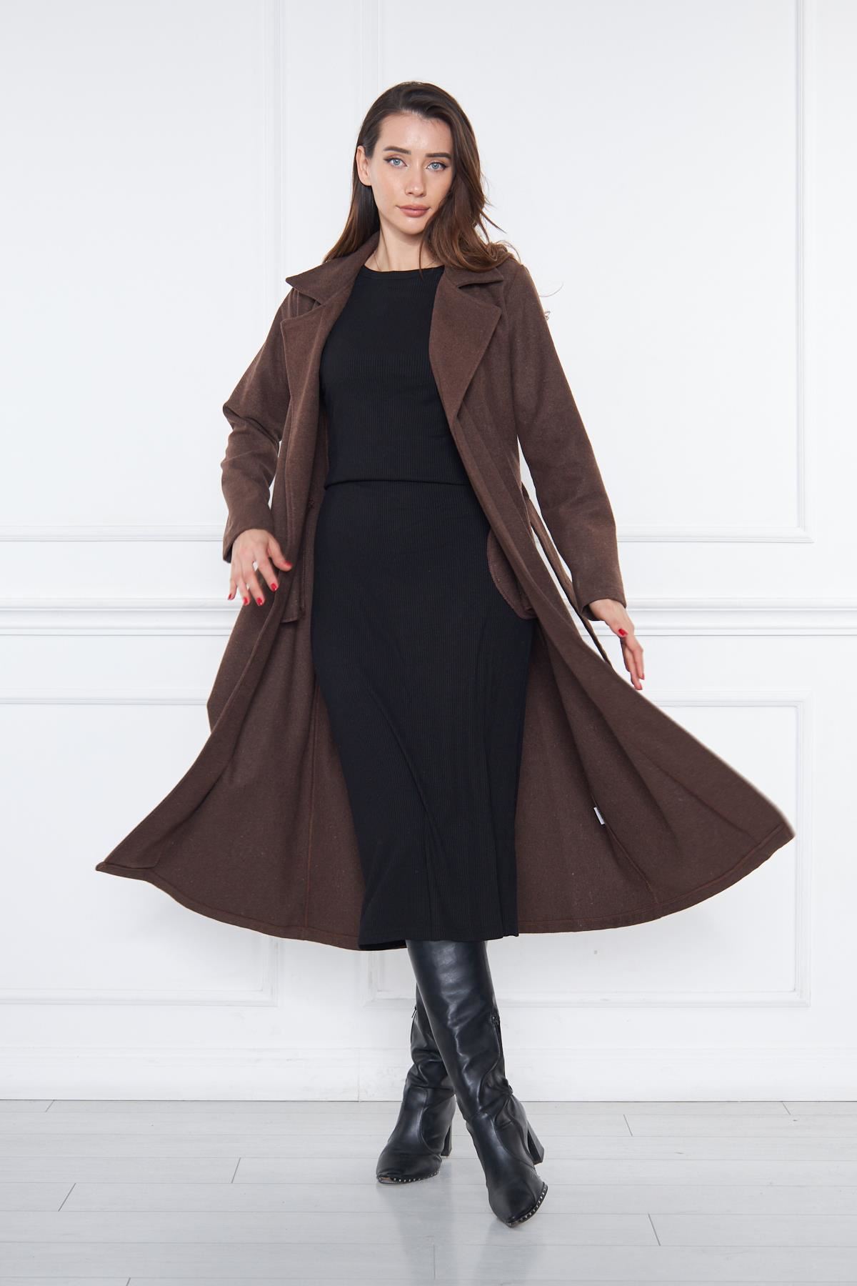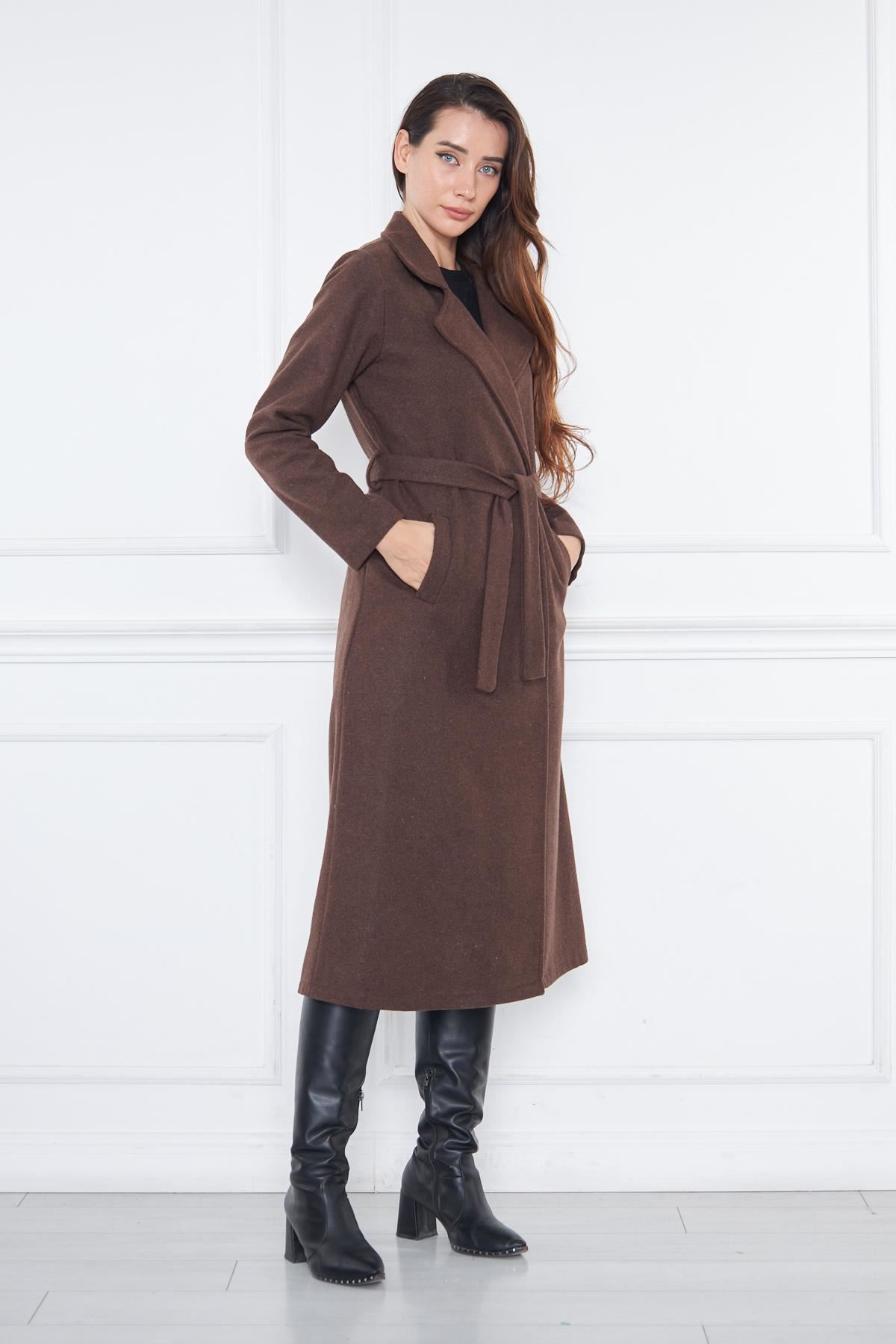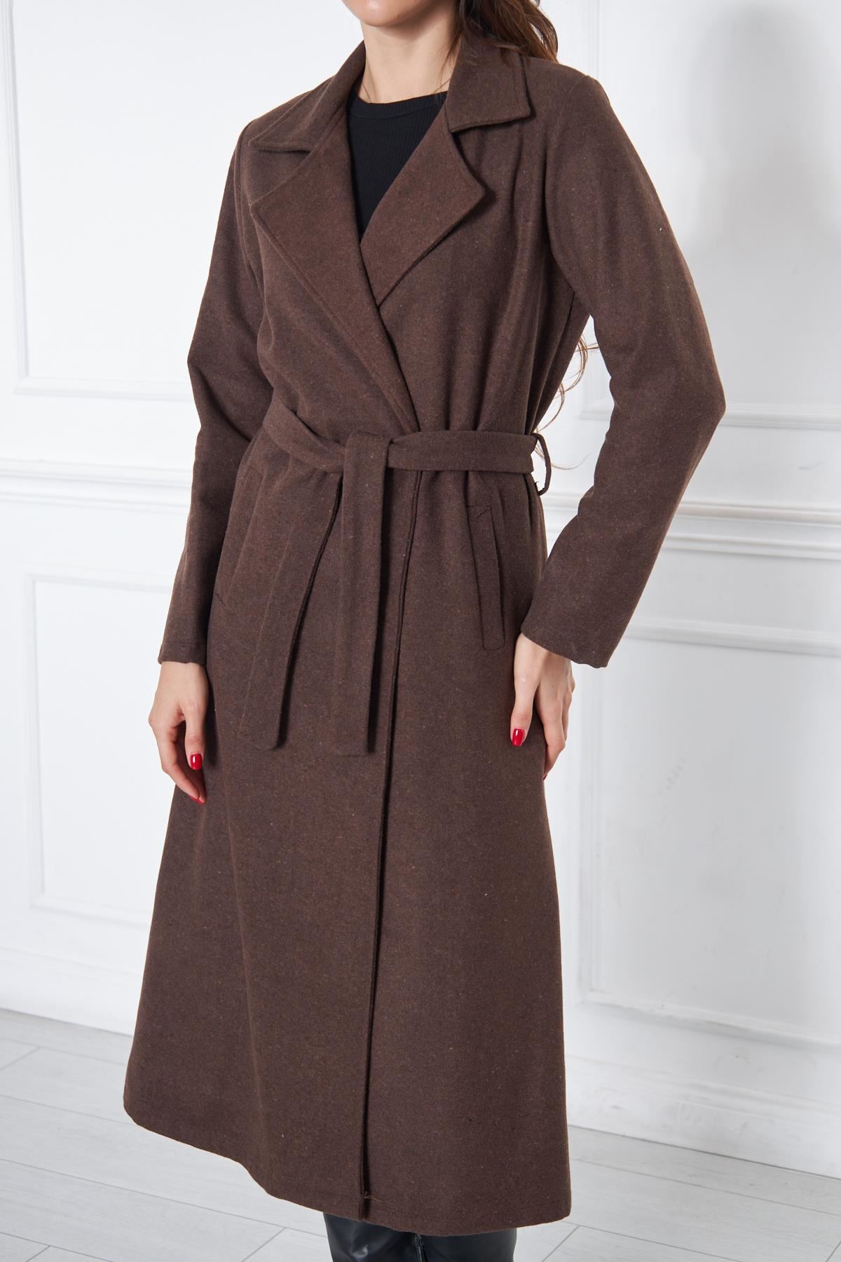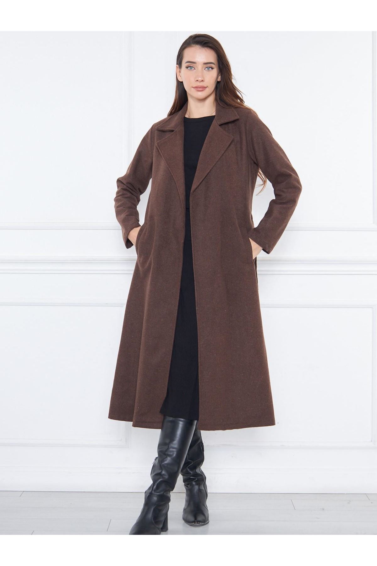 KADIN KAŞE ASTARSIZ KUŞAKLI KABAN KAHVE