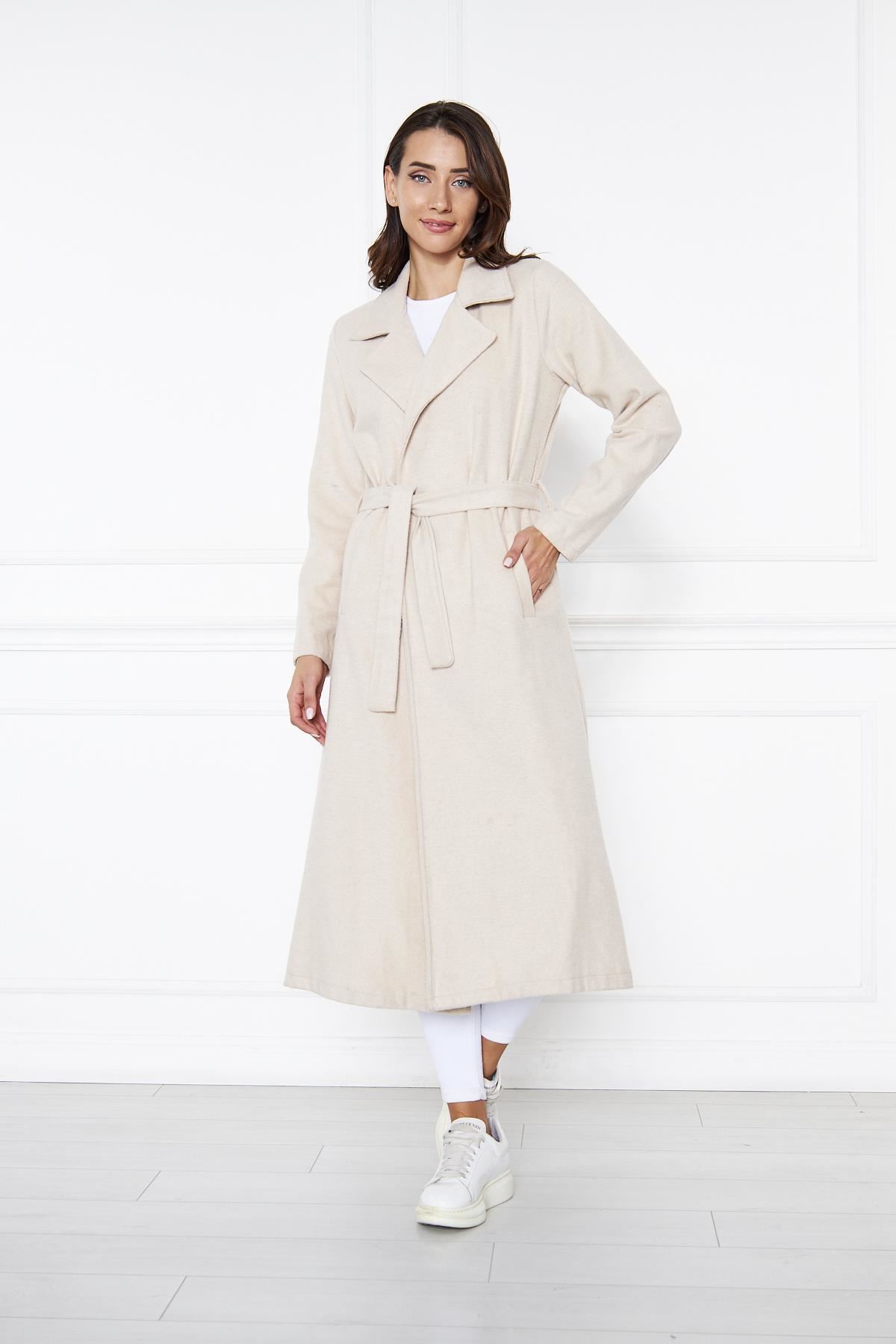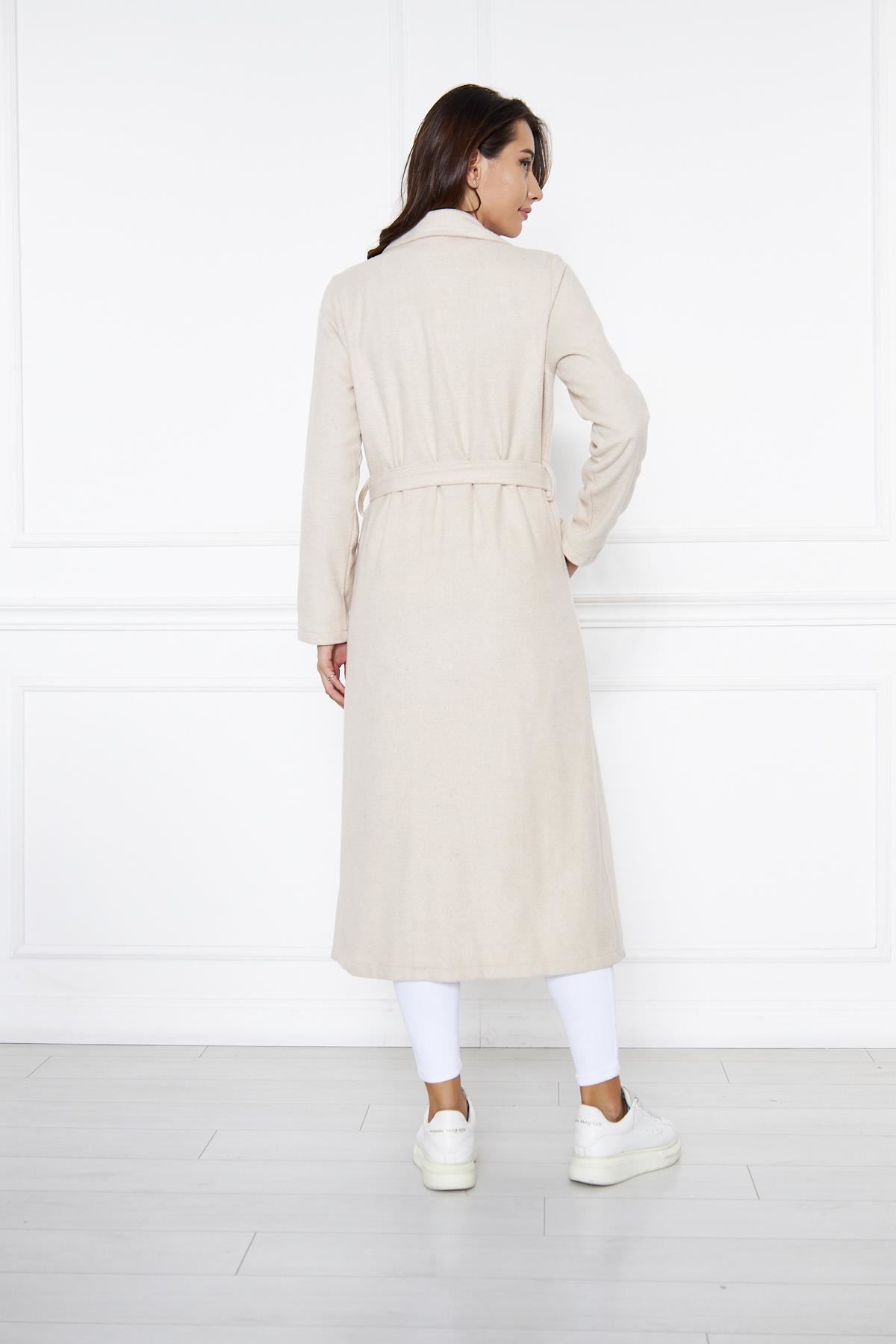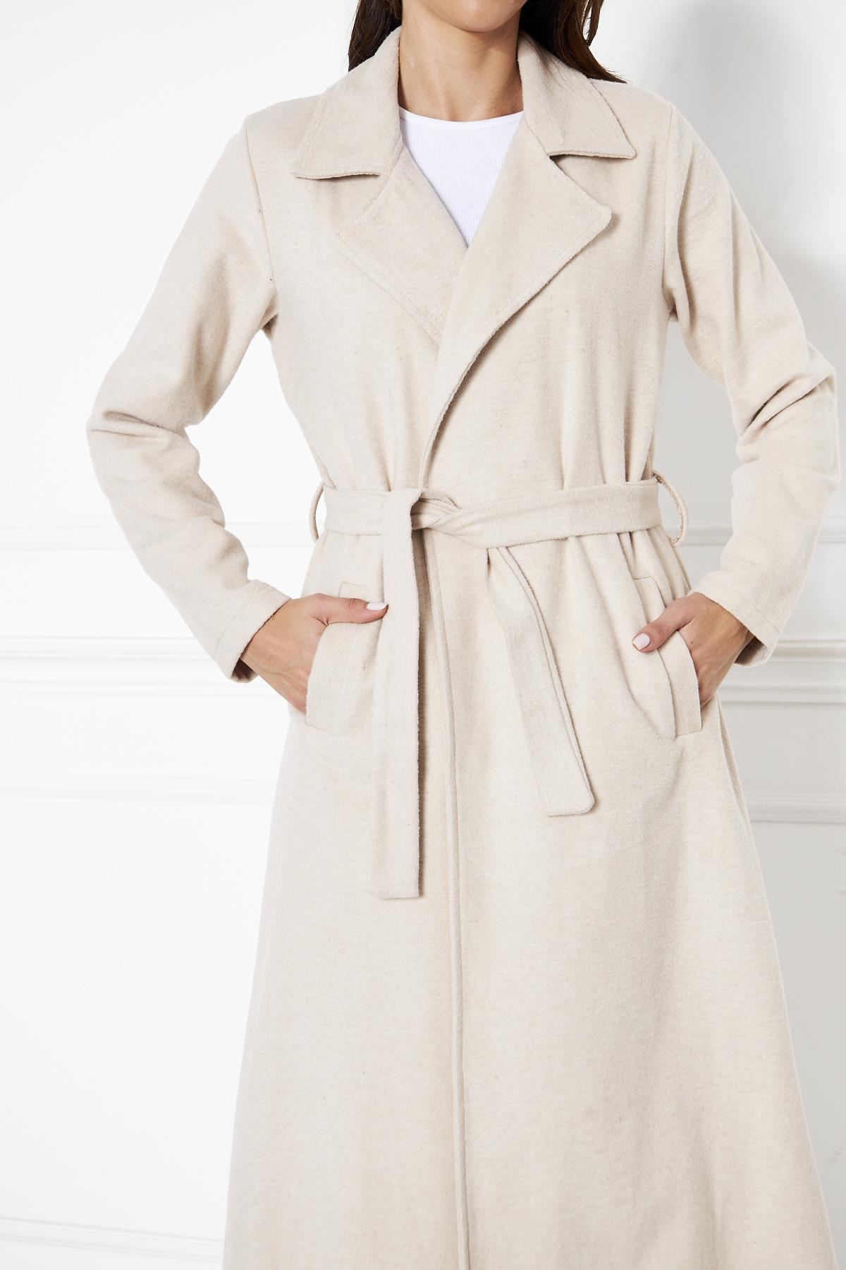 KADIN KAŞE ASTARSIZ KUŞAKLI KABAN KREM