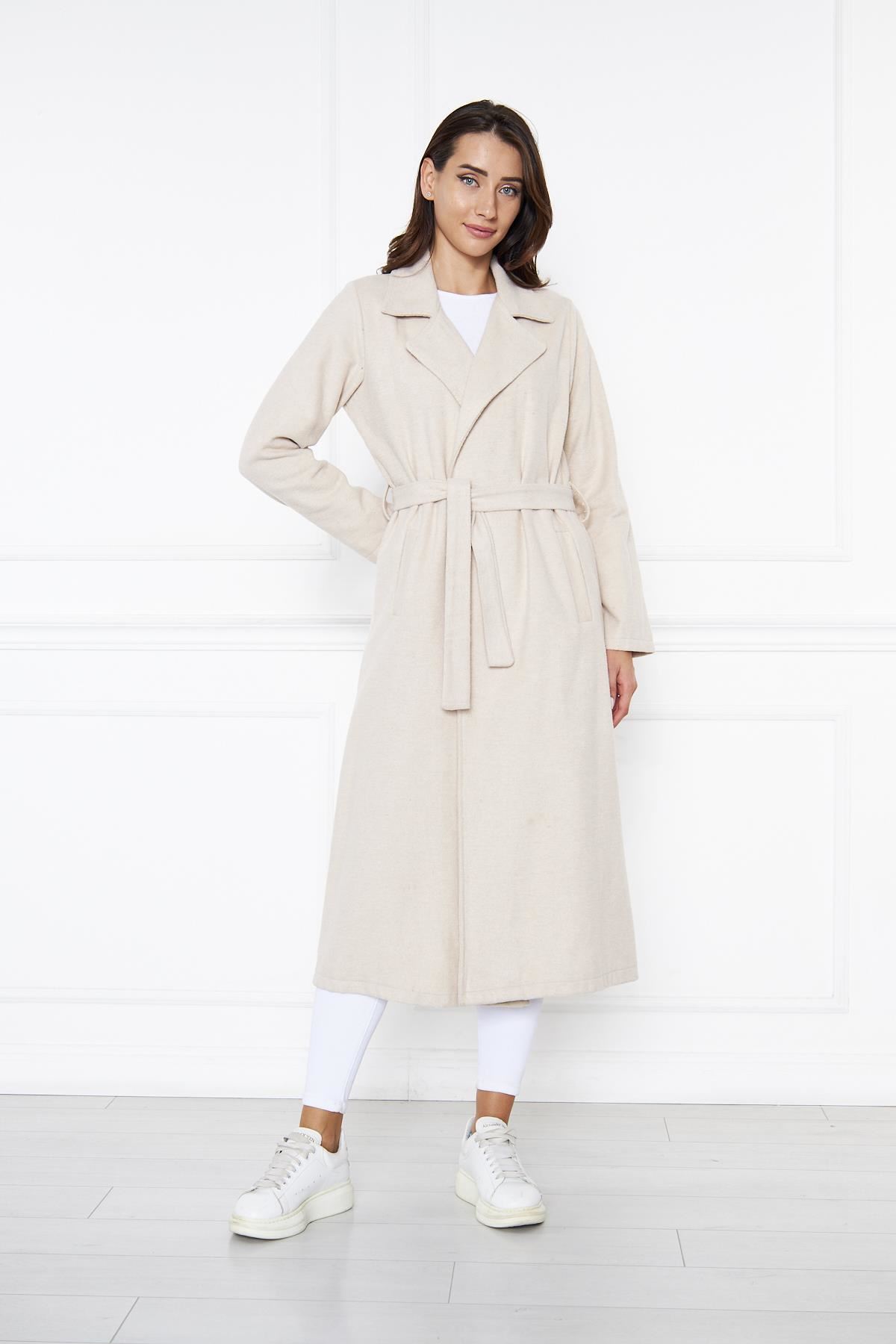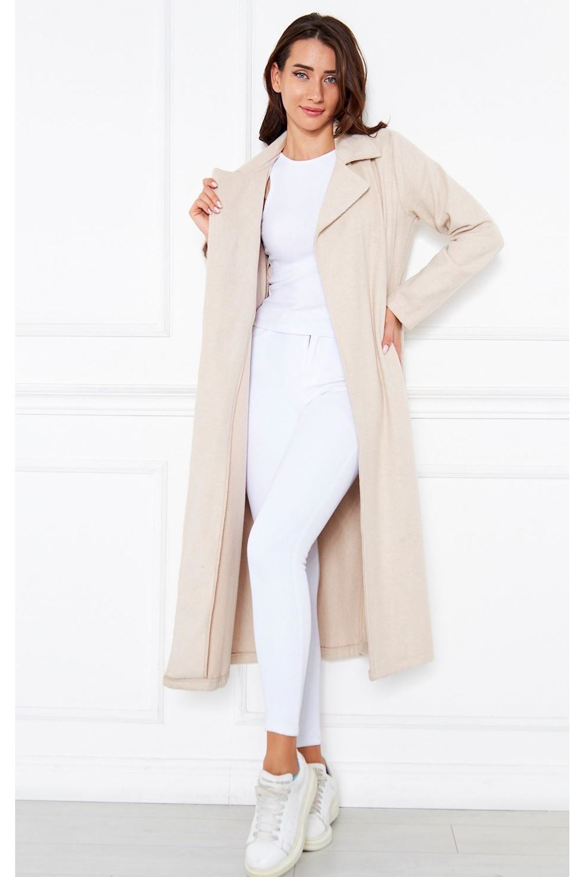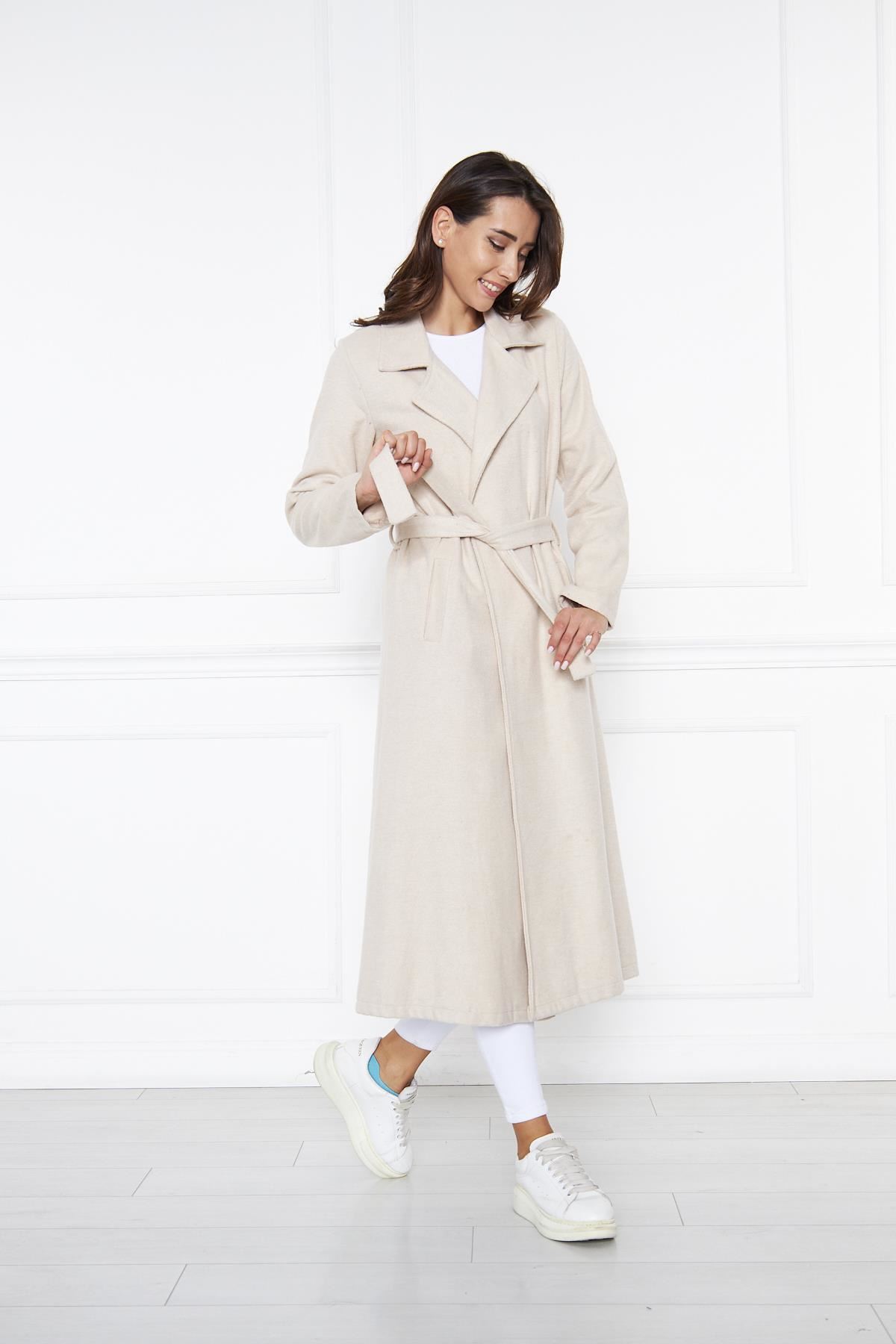 KADIN KAŞE ASTARSIZ KUŞAKLI KABAN KREM