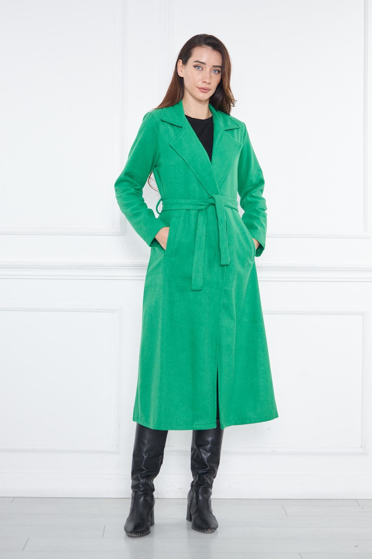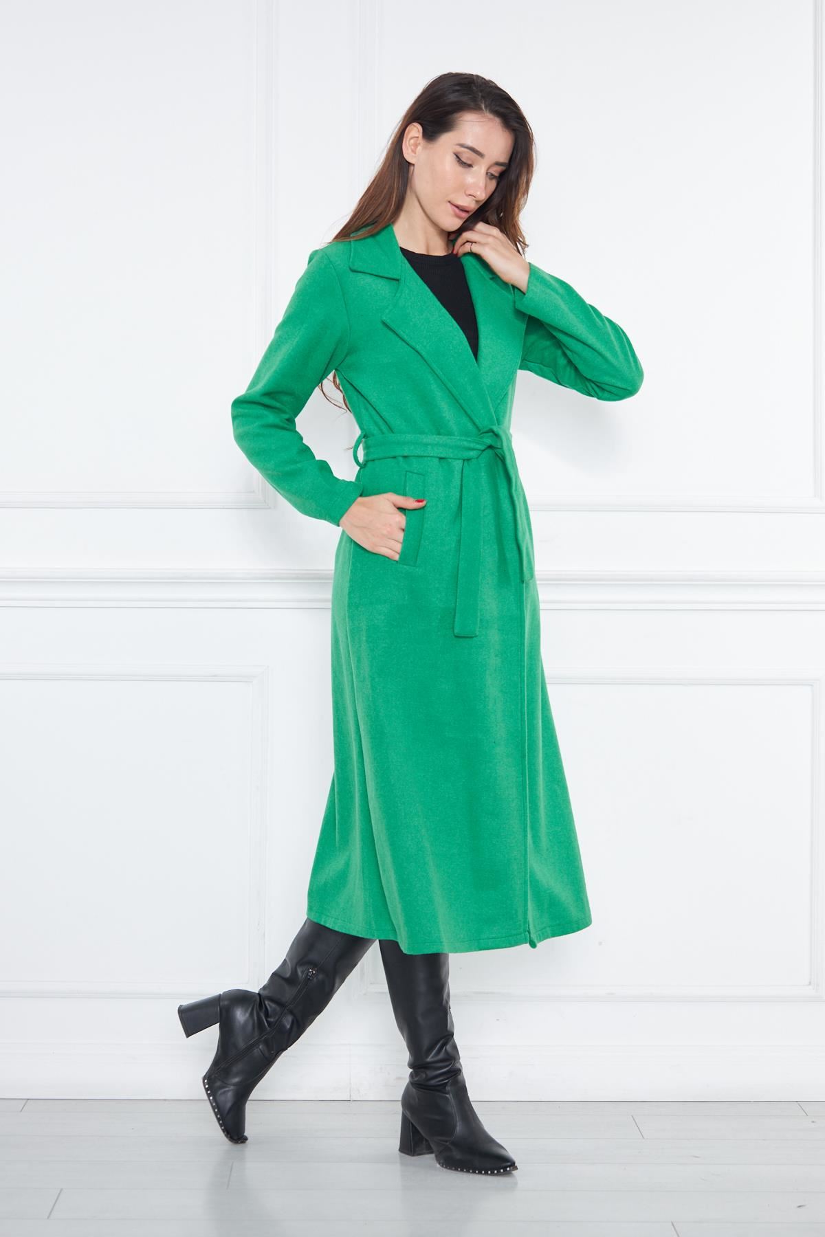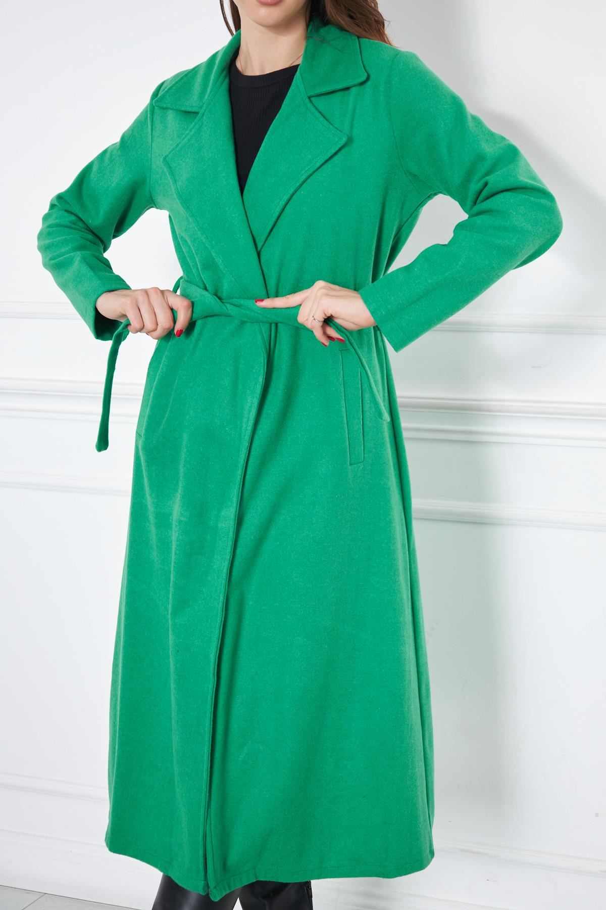 KADIN KAŞE ASTARSIZ KUŞAKLI KABAN YEŞİL